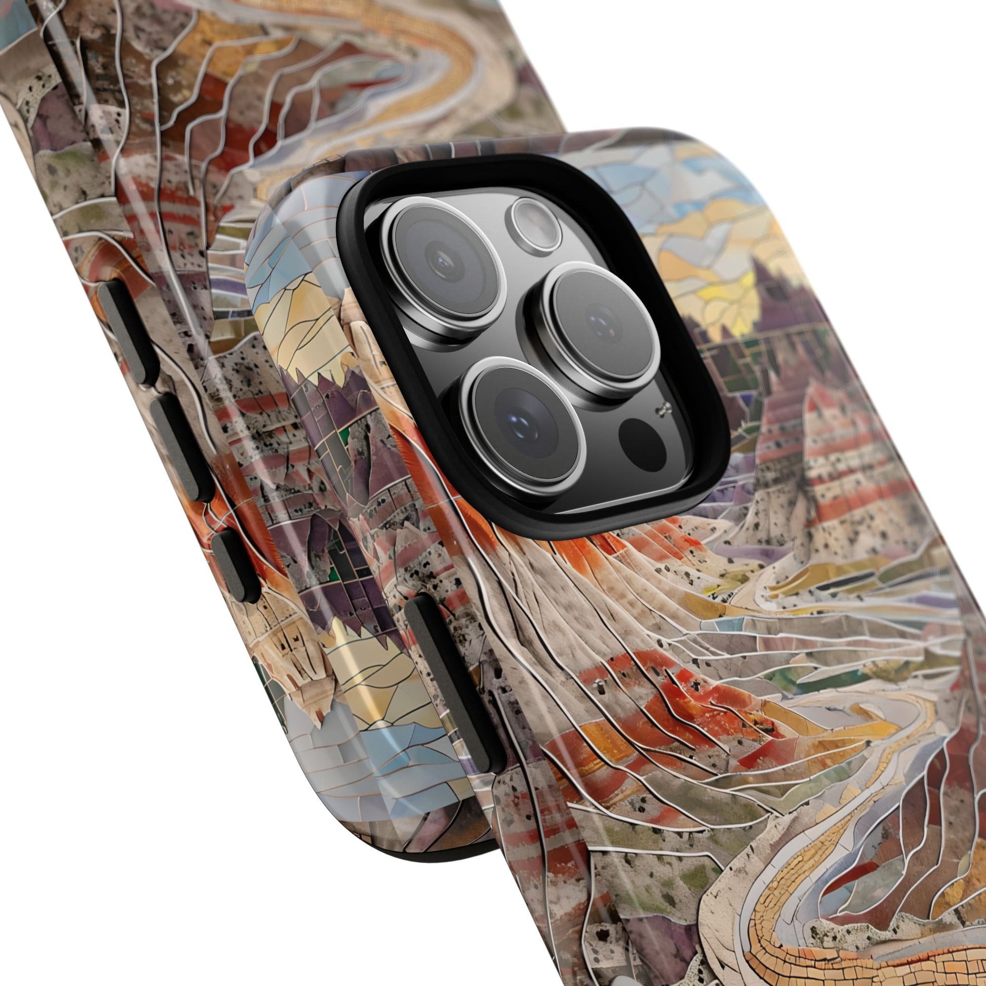 Badlands Mosaic Tough Phone Case - Rugged Rock Formations, Prairie Landscape Aesthetic, Compatible with iPhone, Galaxy, and Google Phones