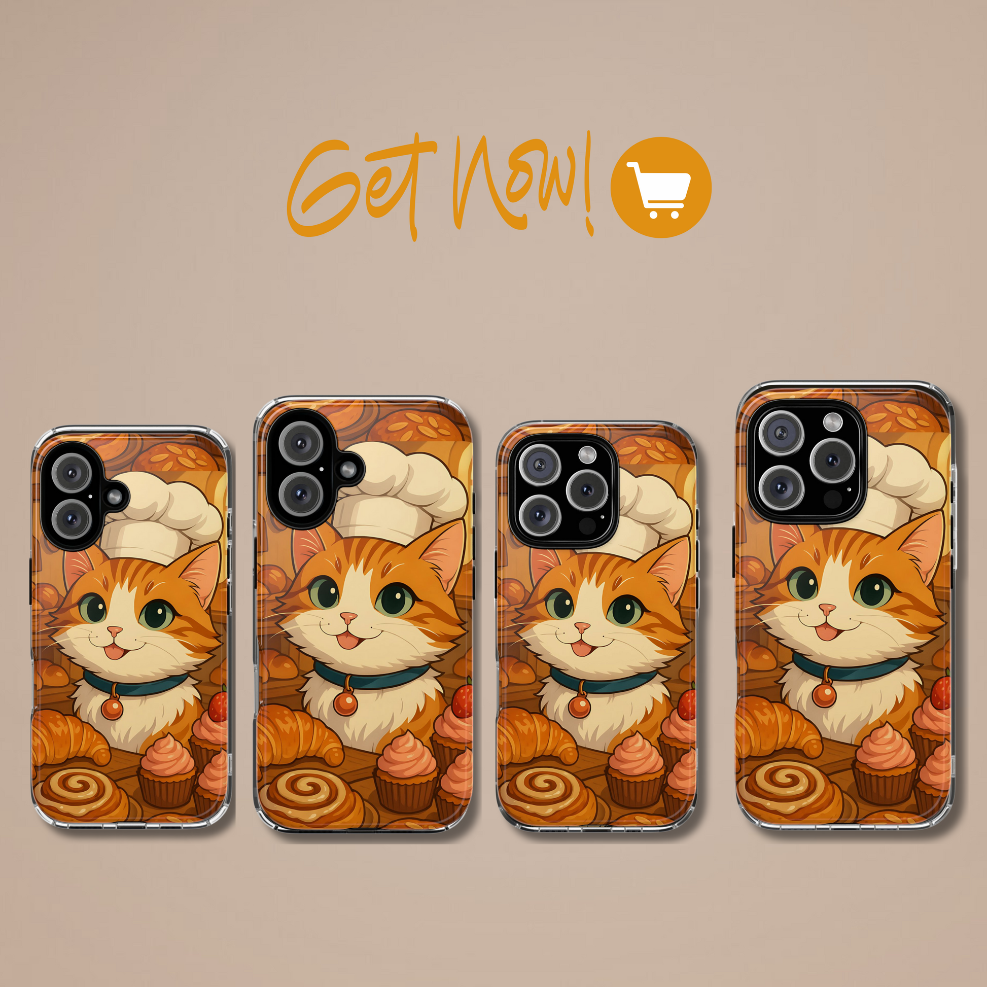 This adorable phone case features a cheerful orange tabby in a baker’s hat surrounded by cupcakes, croissants, and cinnamon rolls, this design is perfect for foodies, café-core fans, and cat lovers alike. Cozy, whimsical, and protective, it’s the sweetest way to keep your phone safe while showing off your love for cats and pastries.
