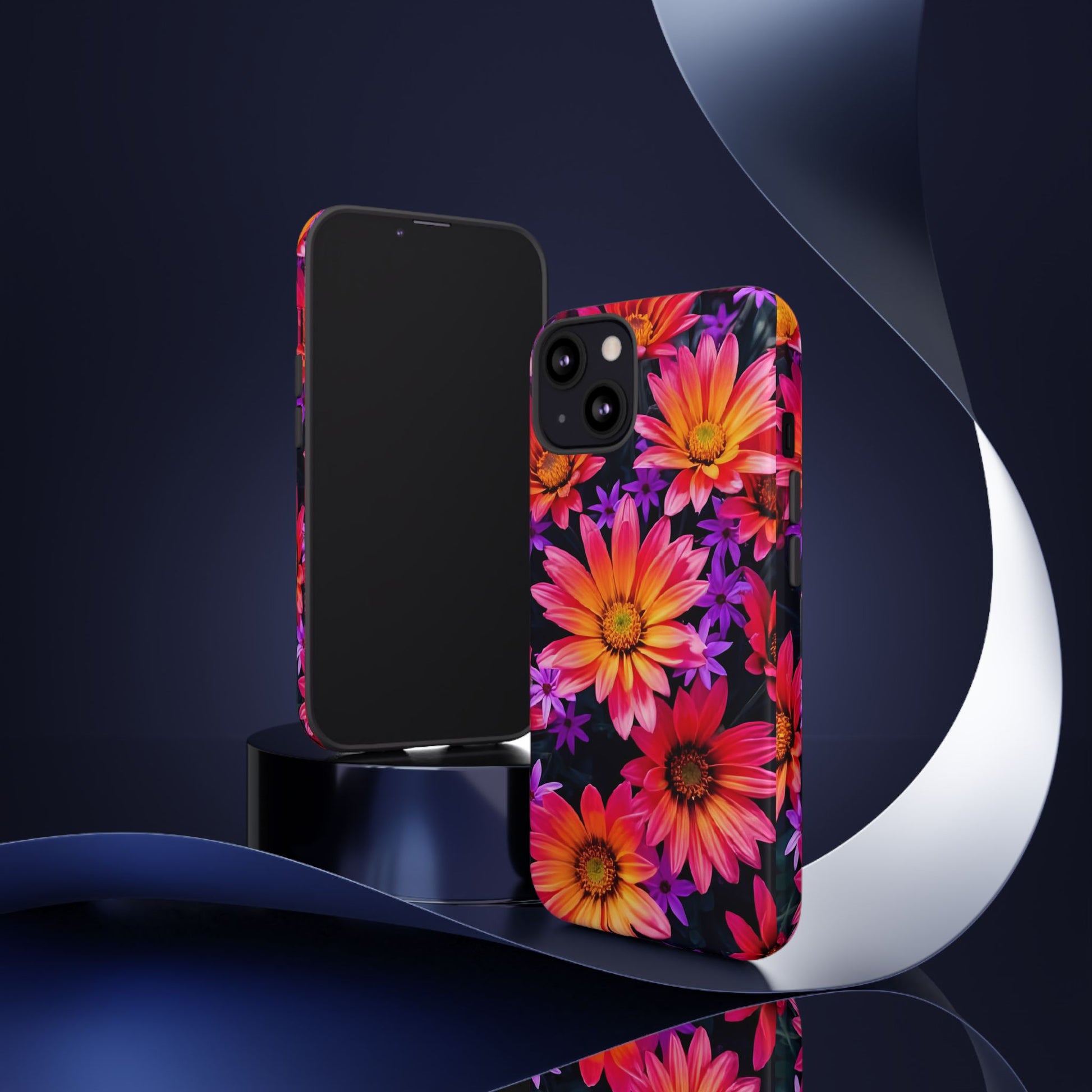 Bold Garden Flower Tough Phone Case - Colorful Floral Print, Bright Botanical Aesthetic, Compatible with iPhone, Galaxy, and Google Phones