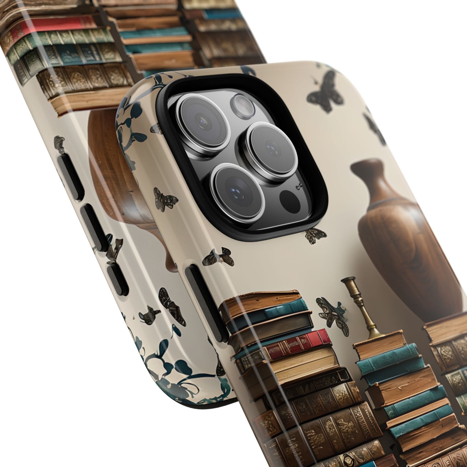 Step into a gothic fairytale with this Dark Academia Bookish Phone Case. Featuring towering stacks of antique books, black butterflies, moody florals, and a candlelit vibe, this design captures the heart of cozy witch and dark romance aesthetics. It’s the perfect accessory for those who love hauntingly beautiful libraries, dramatic love stories, and magical vibes.