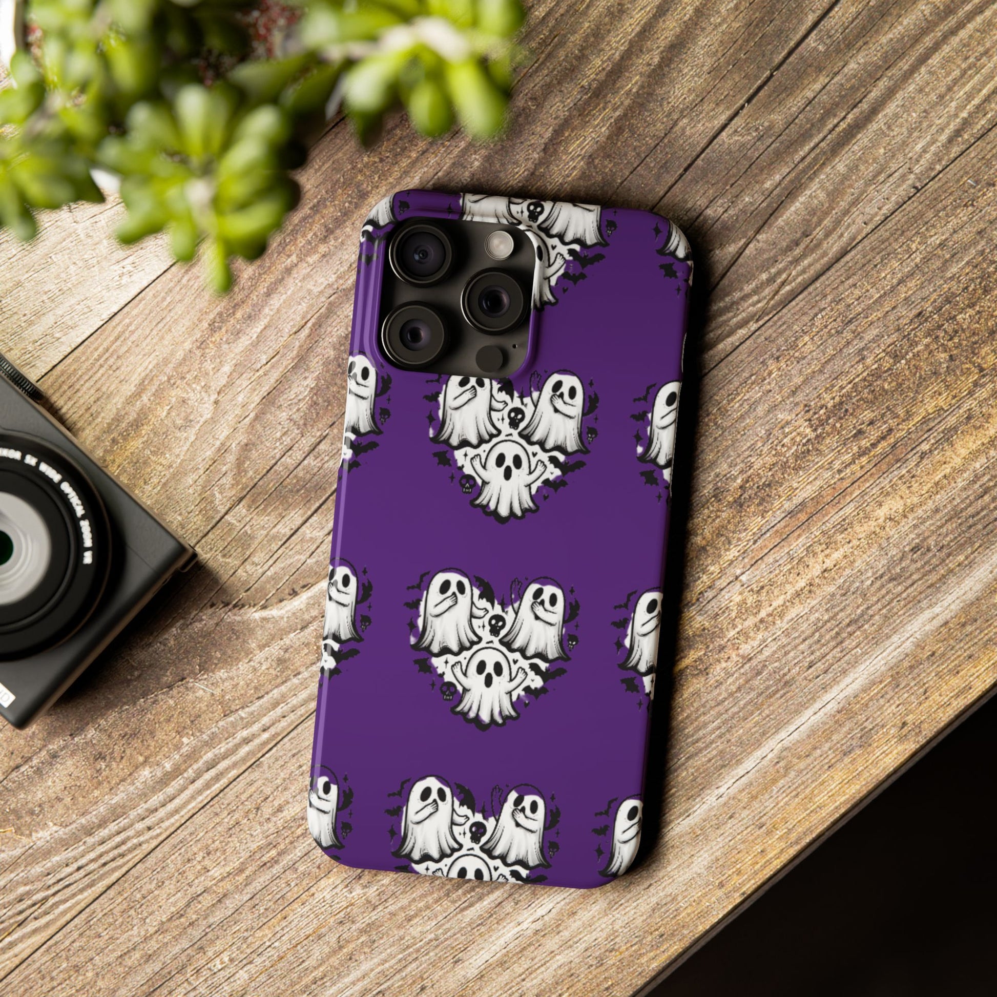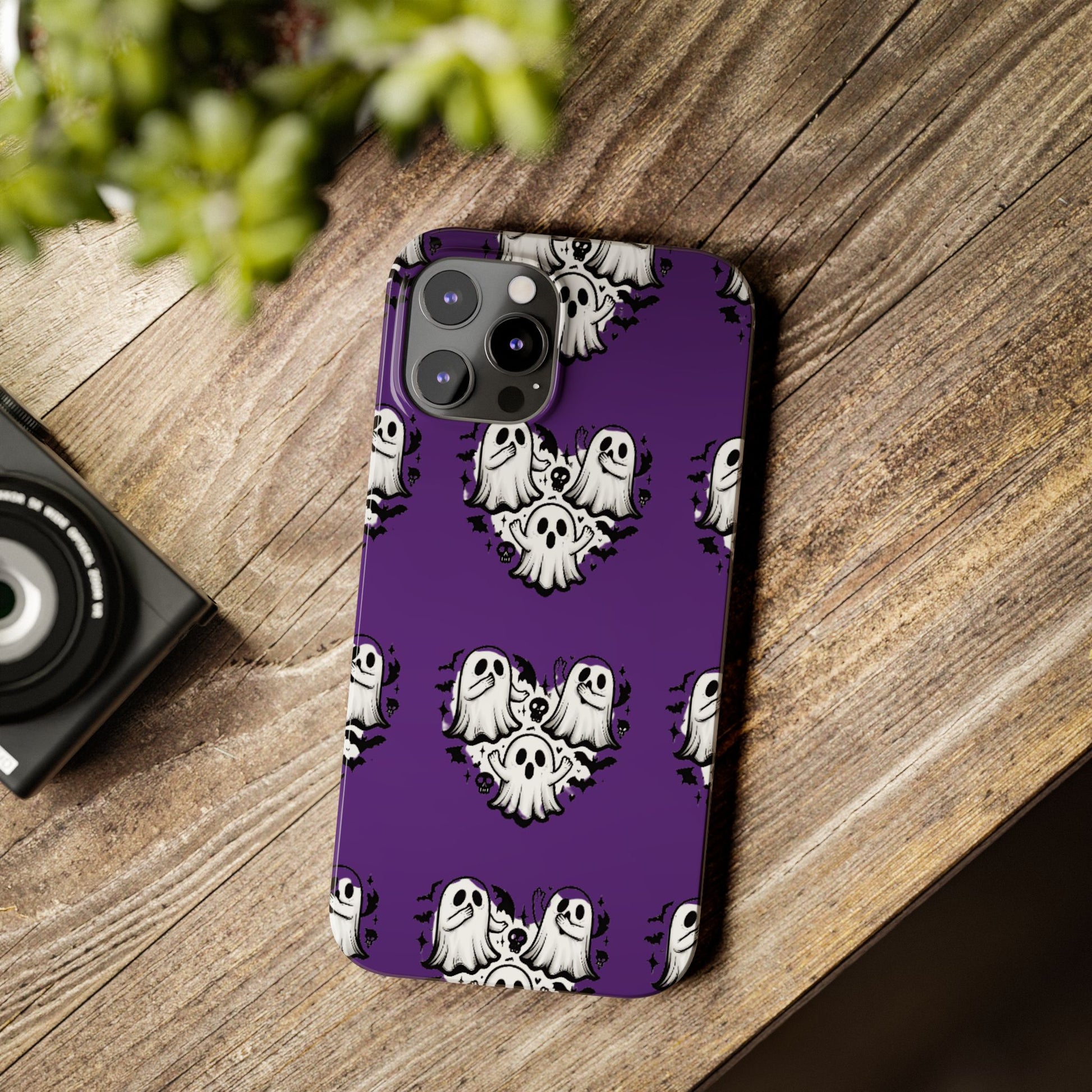 Cute Ghost Heart Slim Phone Case, Creepy Cute Spooky Heart Print, Goth Coquette Aesthetic Spooky Accessories, Halloween Gift Case