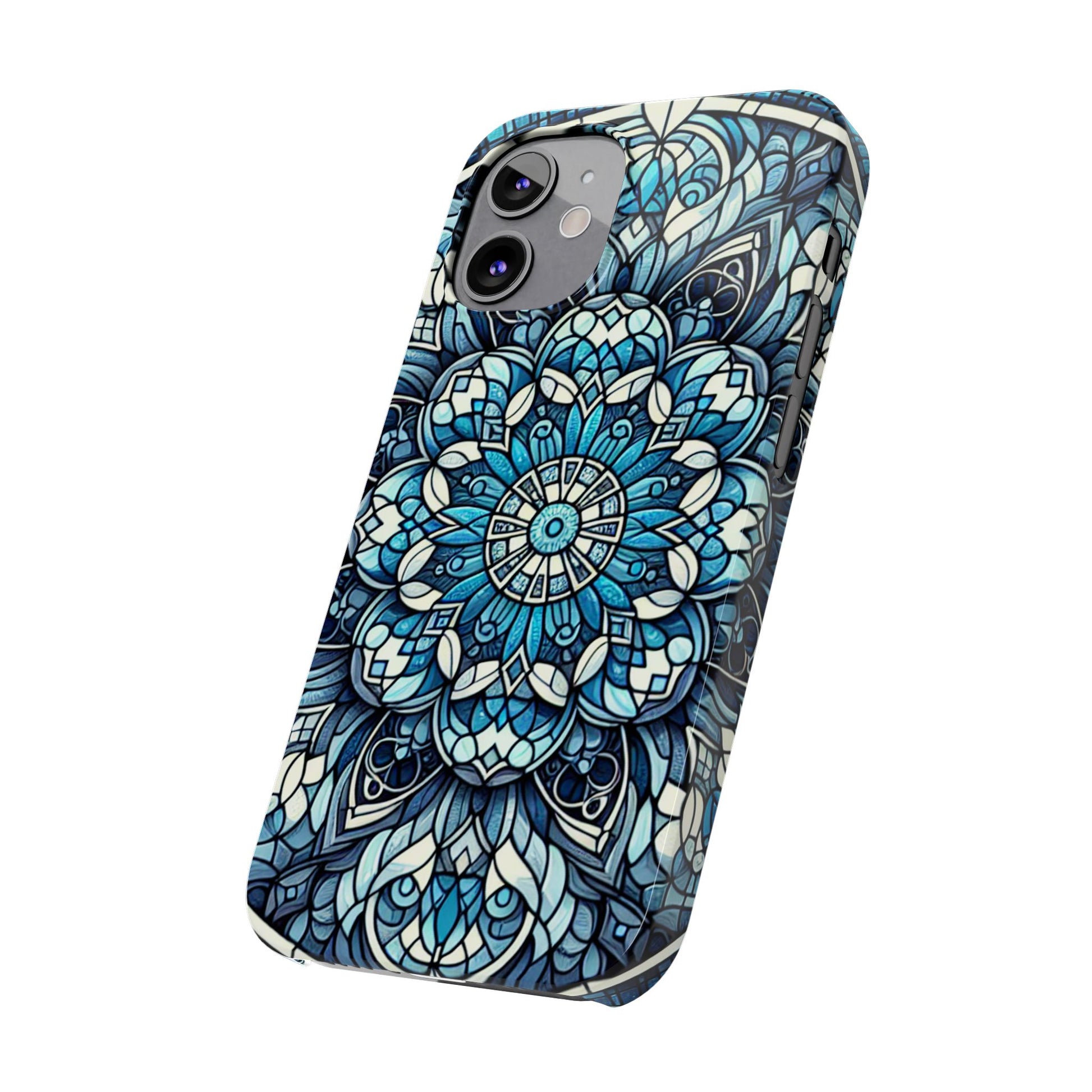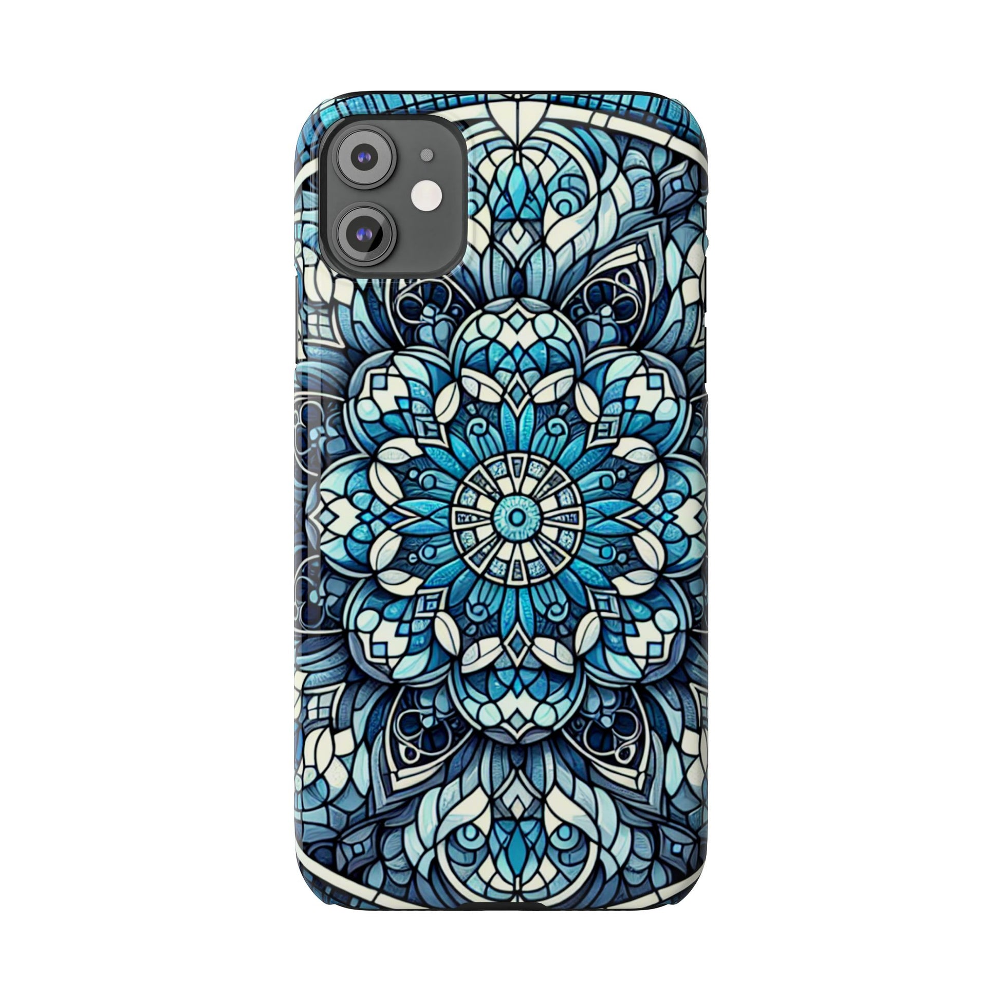 This slim phone case features a mesmerizing blue stained glass mandala design, radiating calm, creativity, and symmetry. With tones of aqua, cobalt, and icy white, it transforms your phone into a piece of functional artāperfect for those who crave beauty in the everyday.