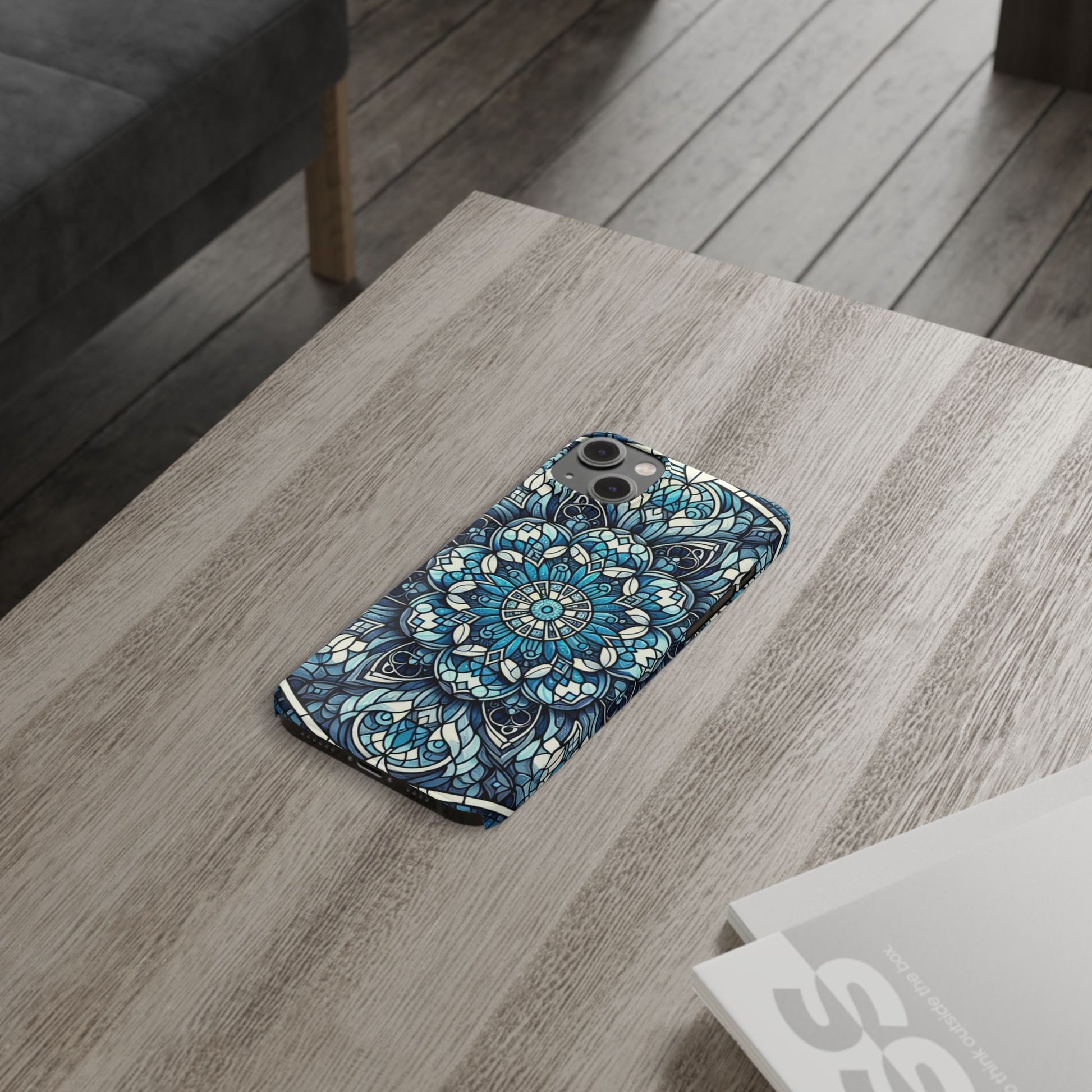 Decorative Slim Phone Case - Blue Mandala Design, Gift for Her, Phone Accessories, Boho Style, Unique Cell Phone Cover, Trendy Tech