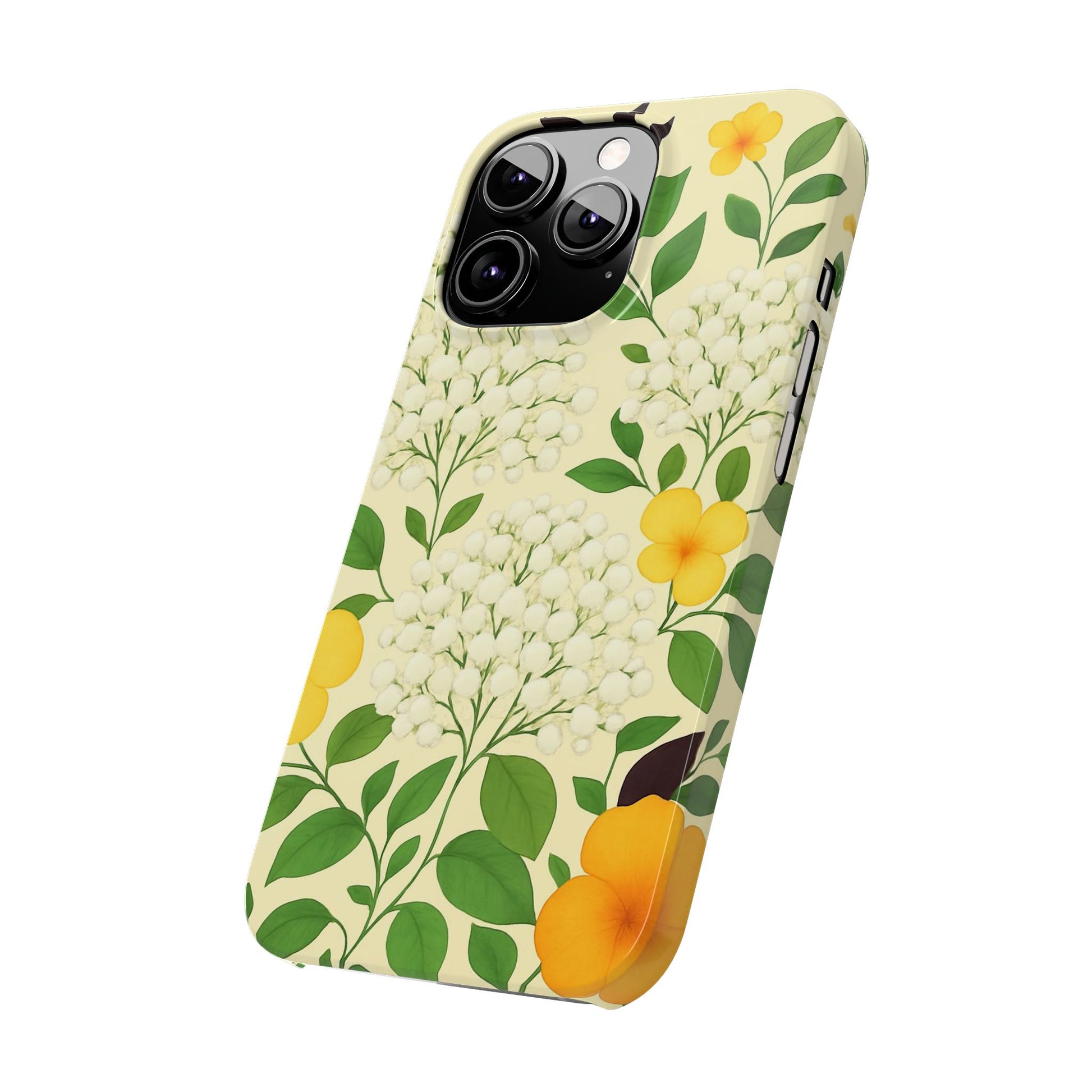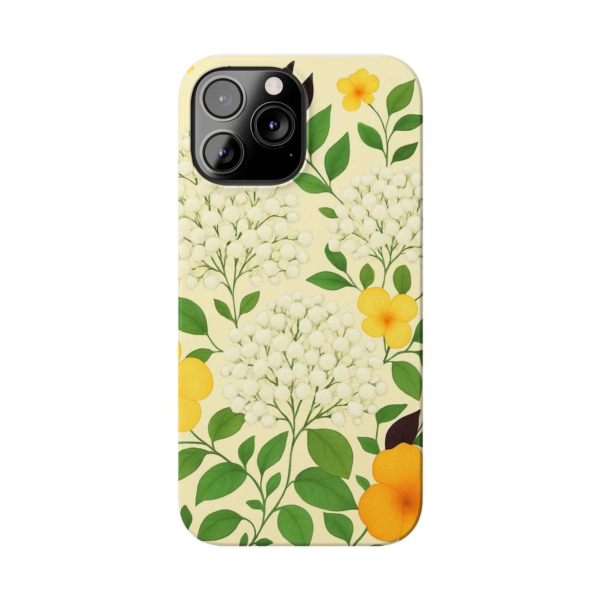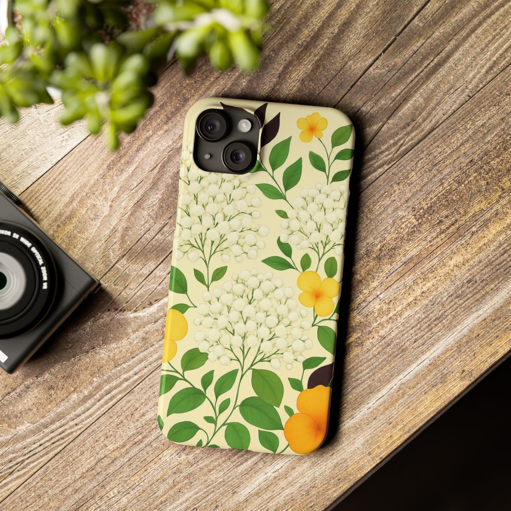 Delicate Floral Print Phone Case, Autumn Botanical Slim Phone Case, Aesthetic Flower Phone Cover Compatible with iPhone, Galaxy, Google