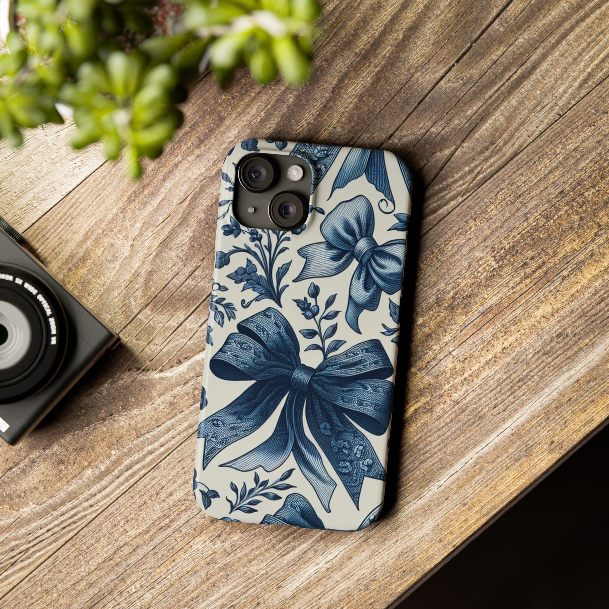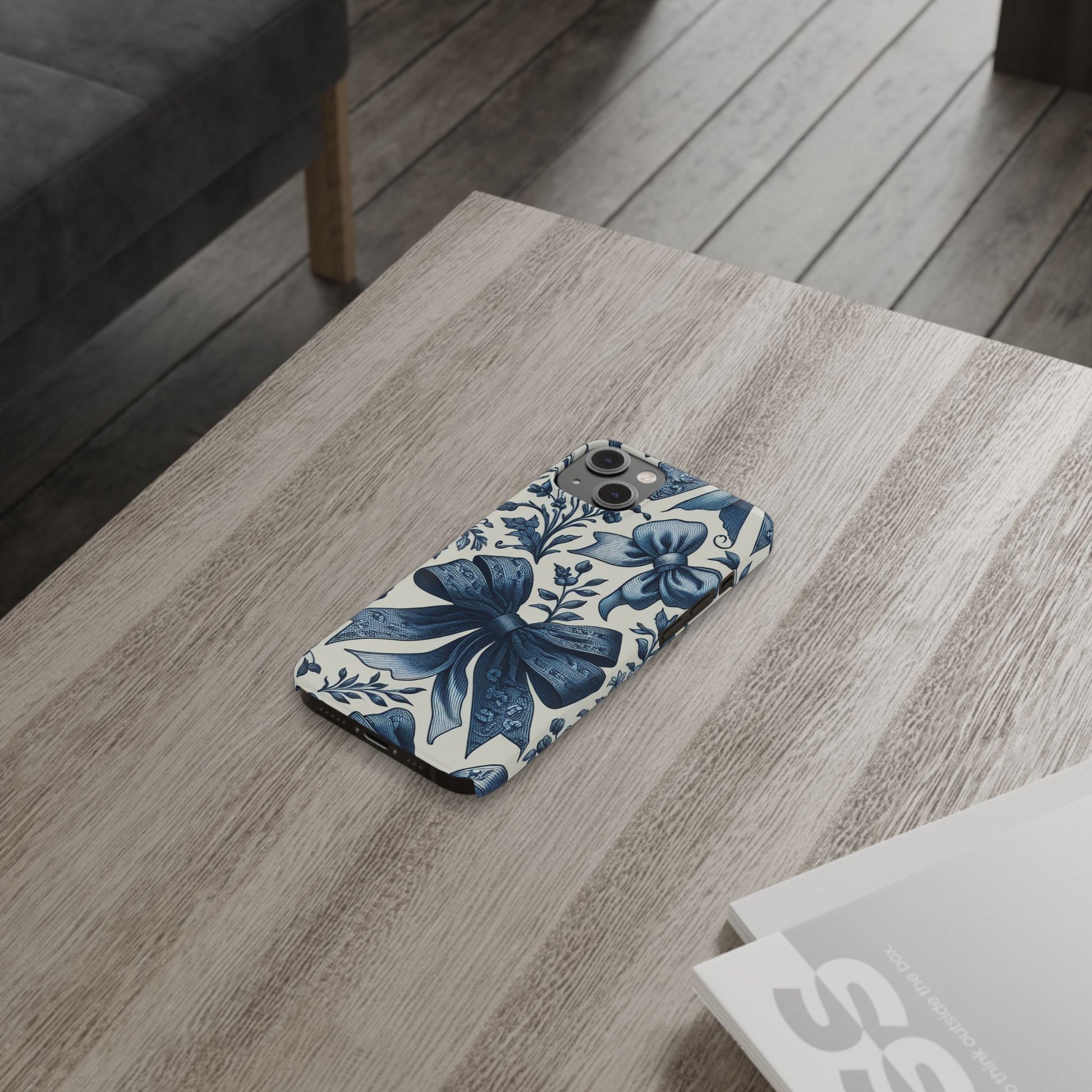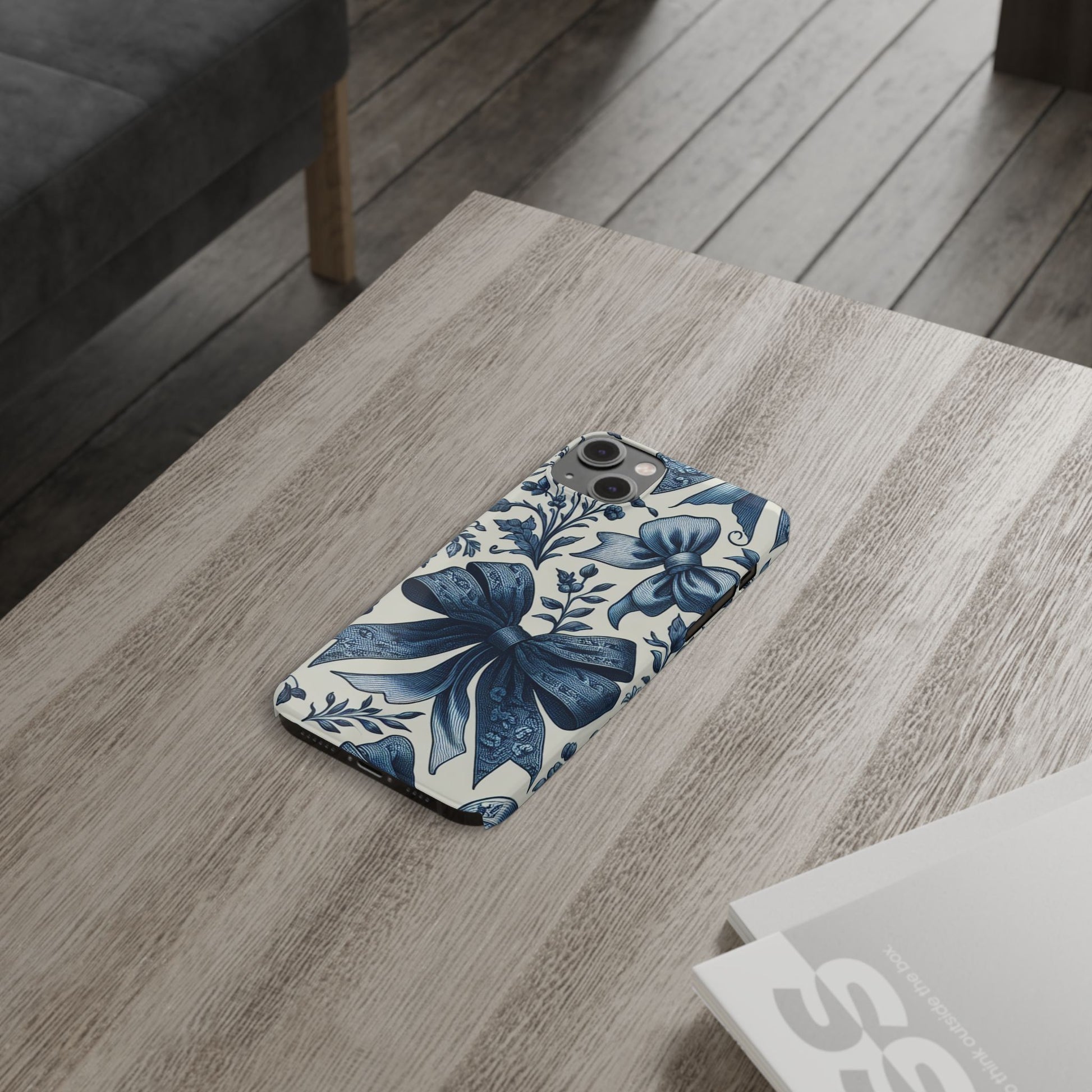 Elegant Floral Bow Slim Phone Case, Blue Flower Phone Cover, Gift for Her, Stylish Tech Accessory, Wedding Gift, Floral Design