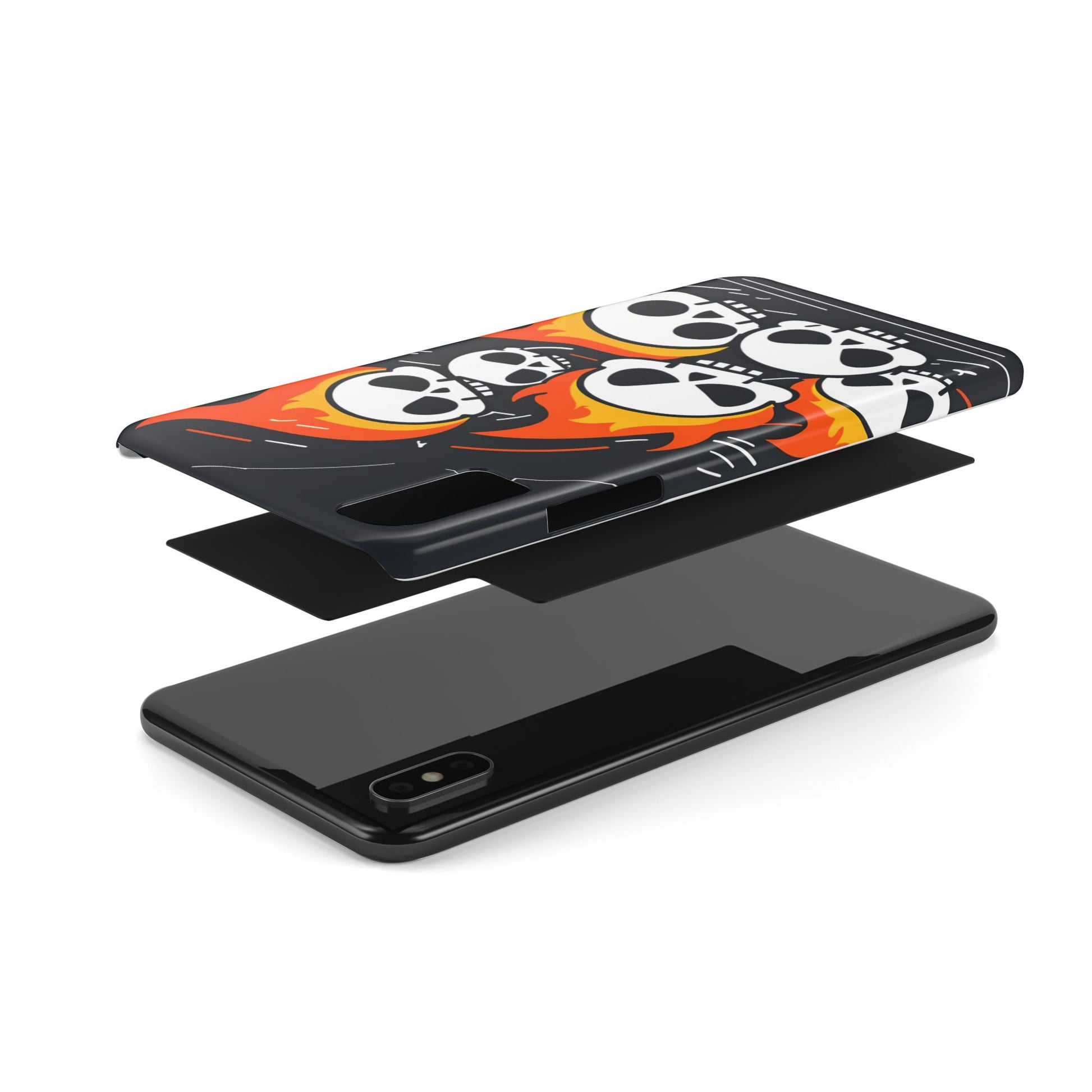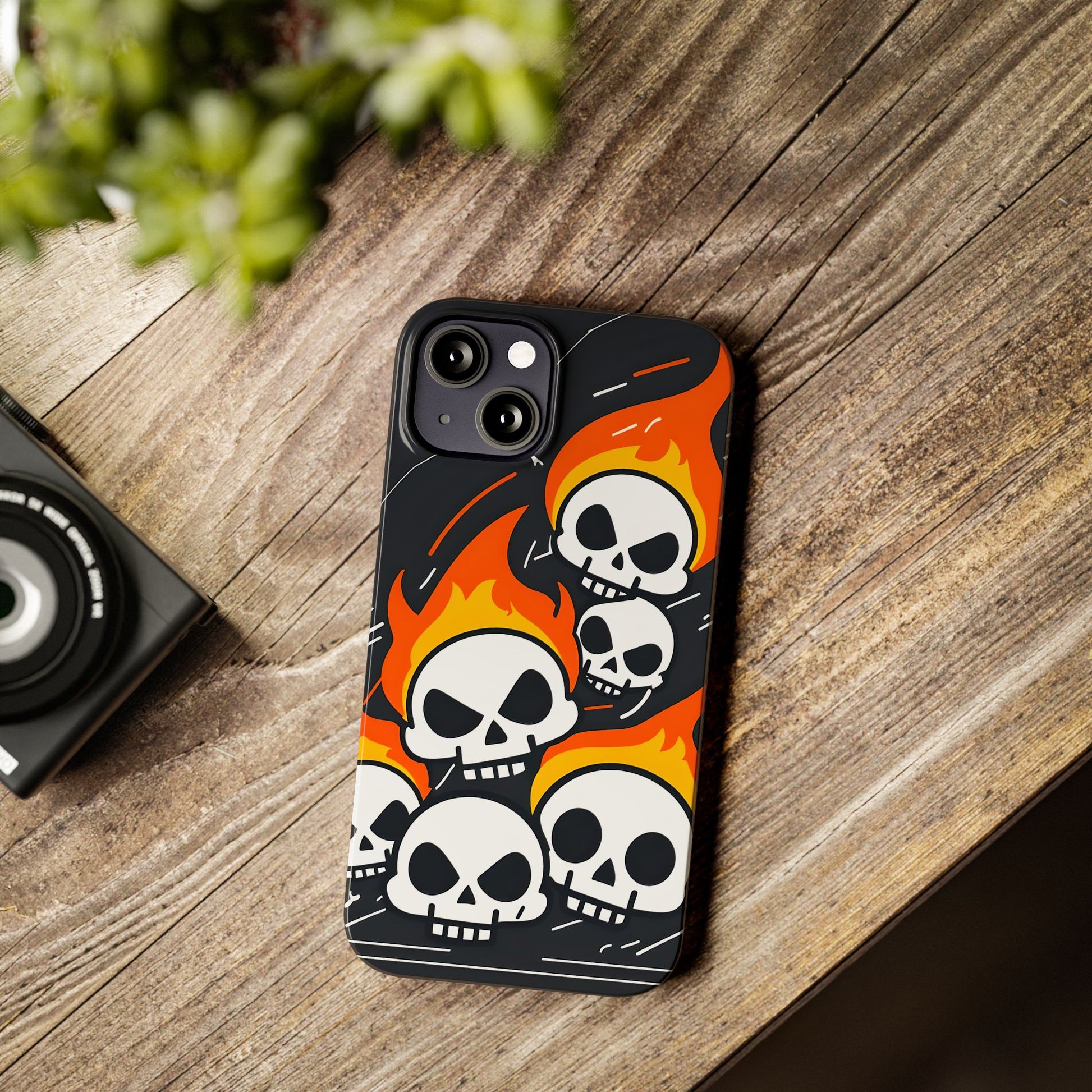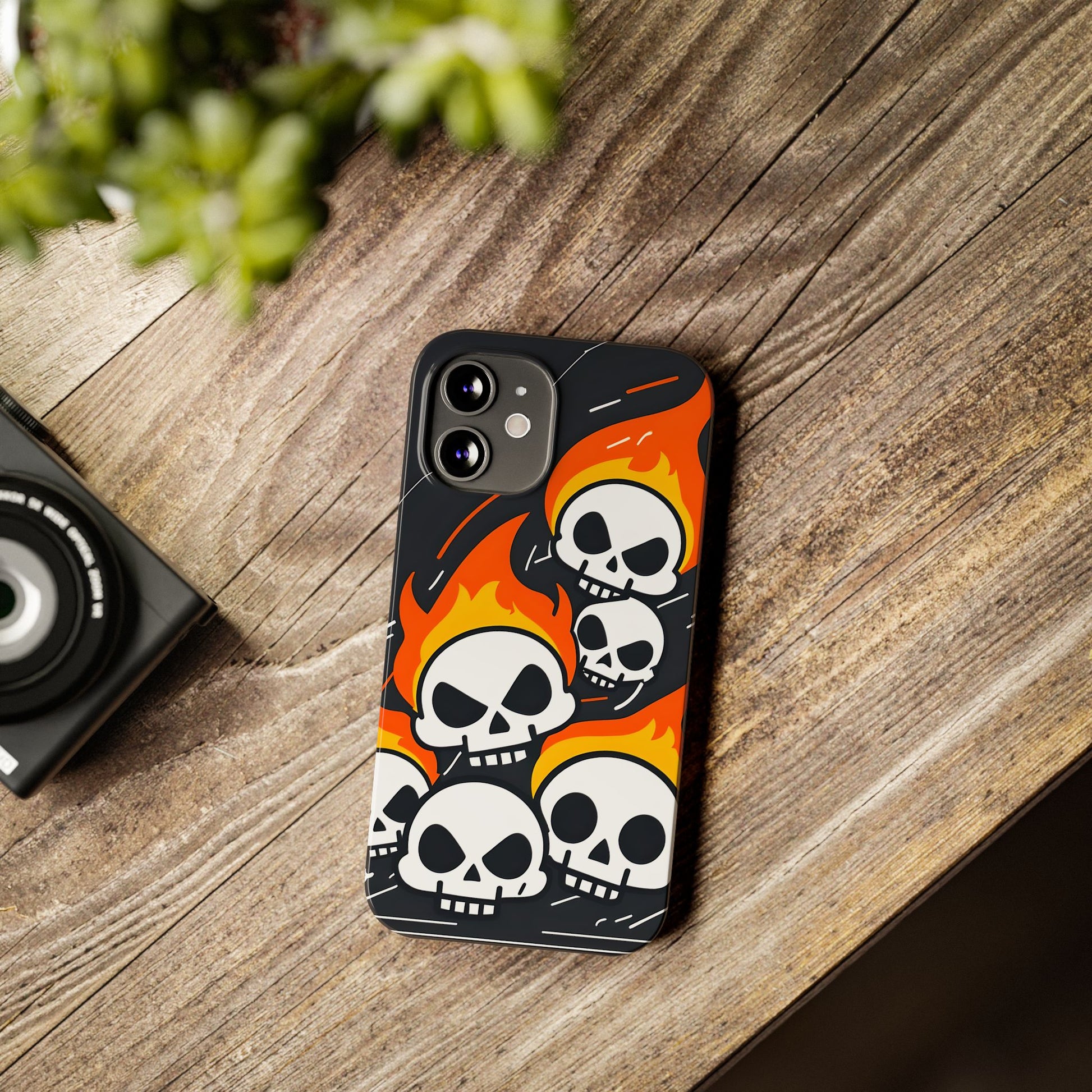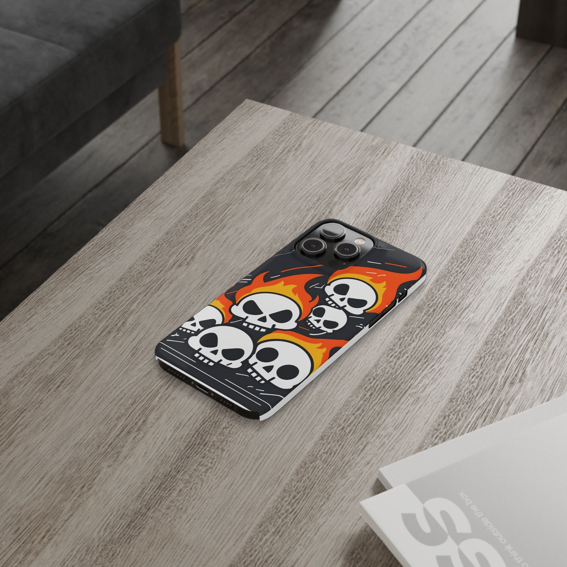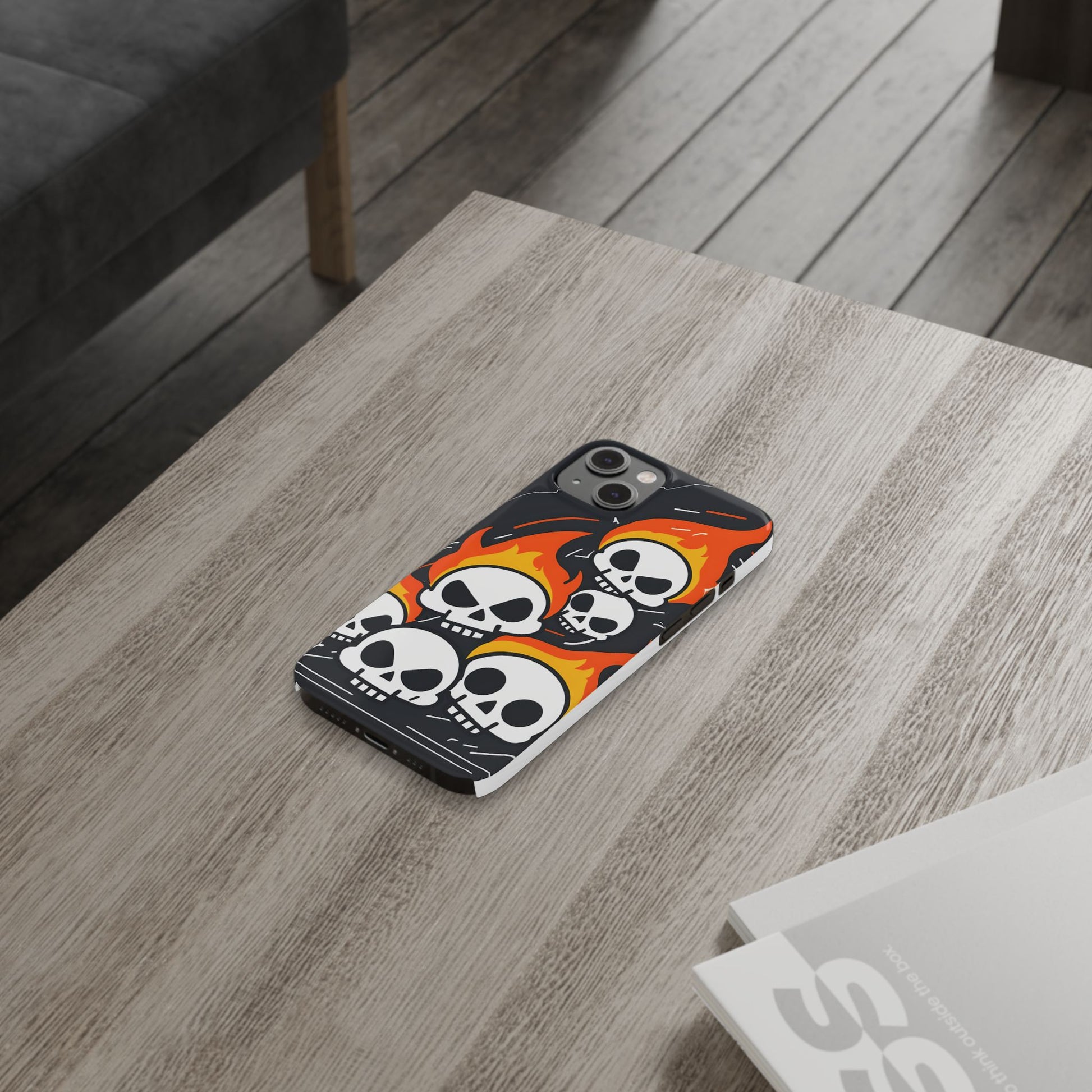 Flaming Skulls Slim Phone Case, Y2K Alt Halloween Aesthetic, Creepy Cute Cartoon Style, Stylish Music Lovers, Perfect Gift for Halloween