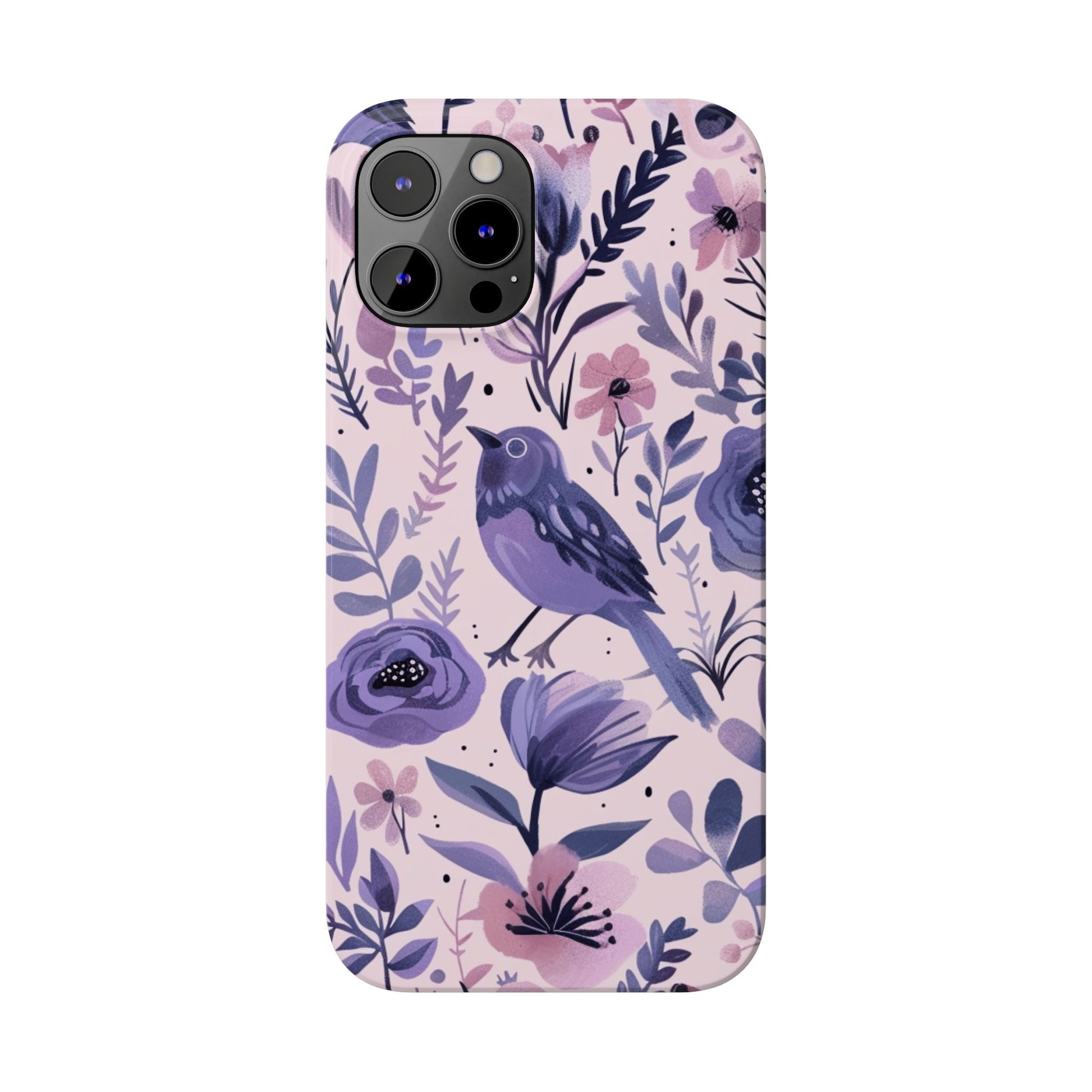 Floral Bird Slim Phone Case, Elegant Phone Cover, Cute Gift for Bird Lovers, Spring Vibes, Nature-Inspired