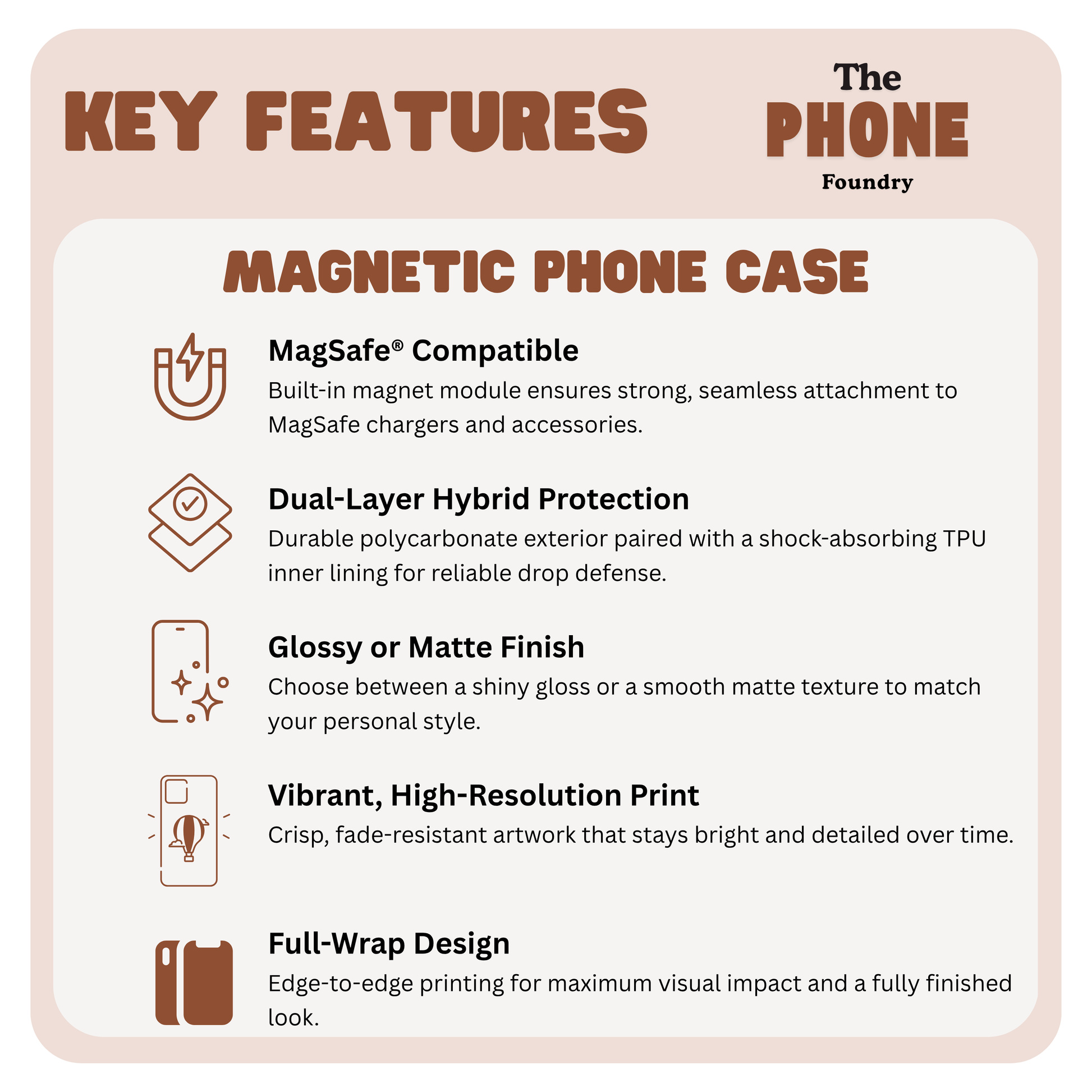 - Custom magnetic phone case made with 100% polycarbonate (outer shell) and black cushioned TPU liner
