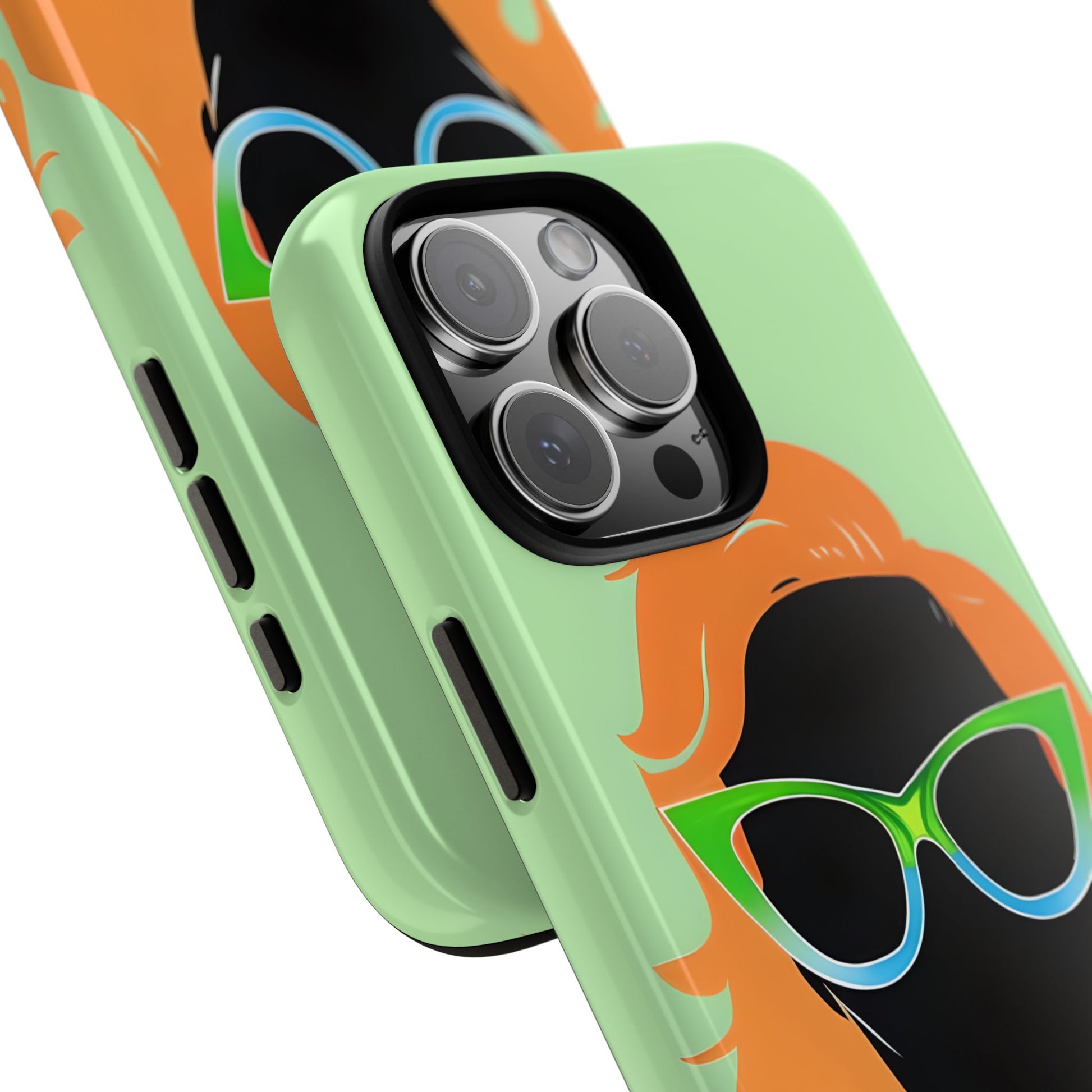 Looking for a bold St. Patrick's Day phone case that still feels modern and wearable all year? This ginger woman tough phone case features a striking minimalist portrait with flowing red hair and green sunglasses on a soft green background, blending Irish-inspired color with confident, fashion-forward style.