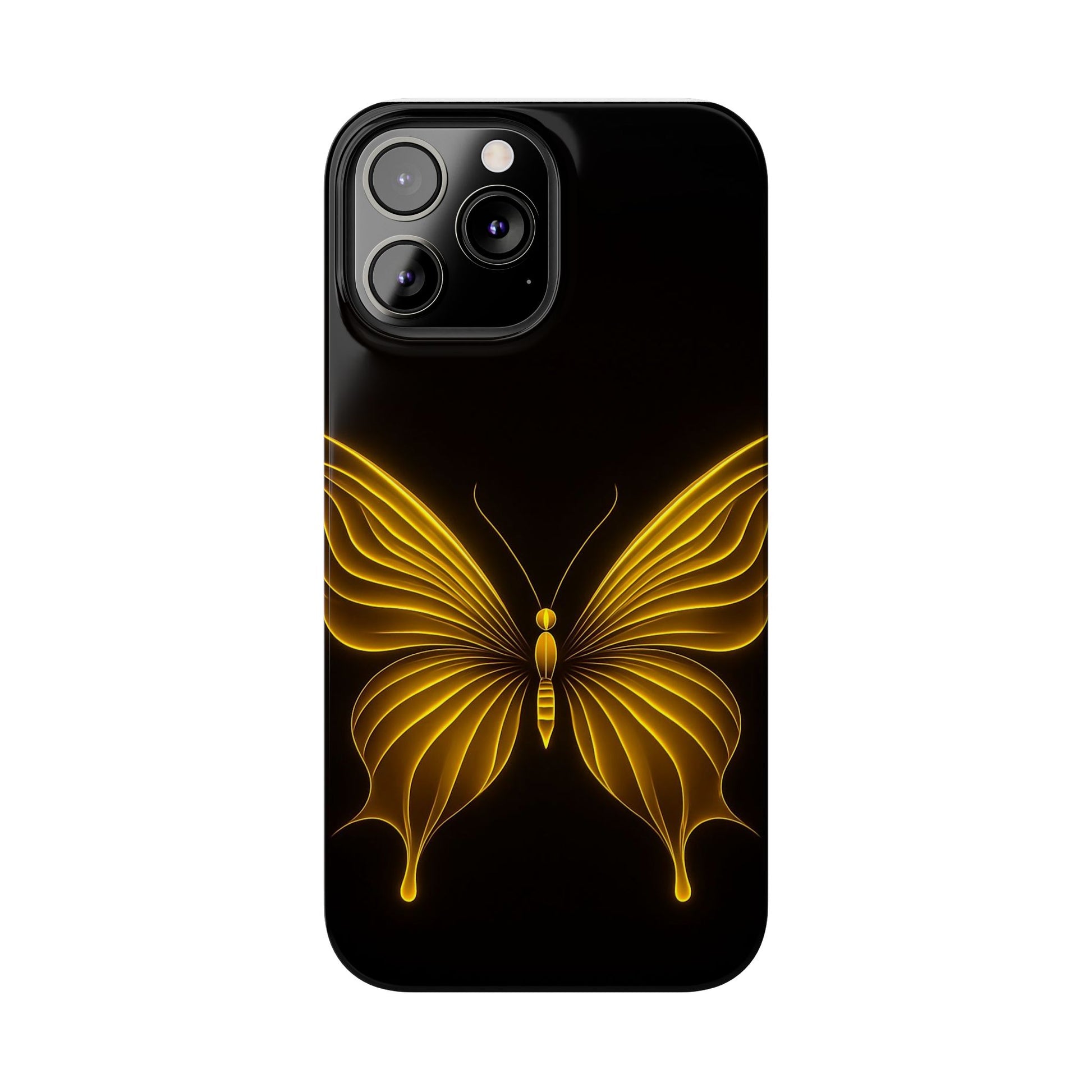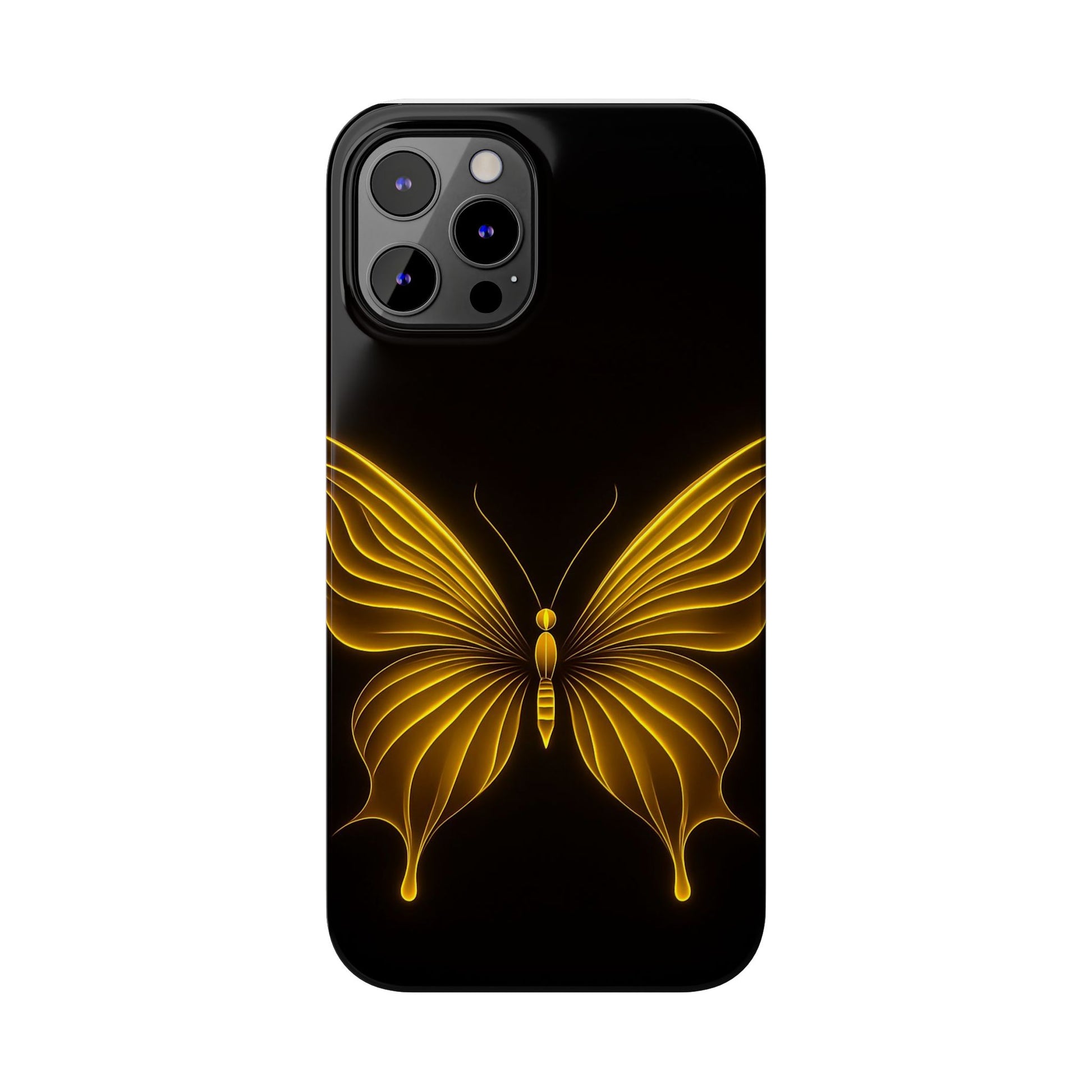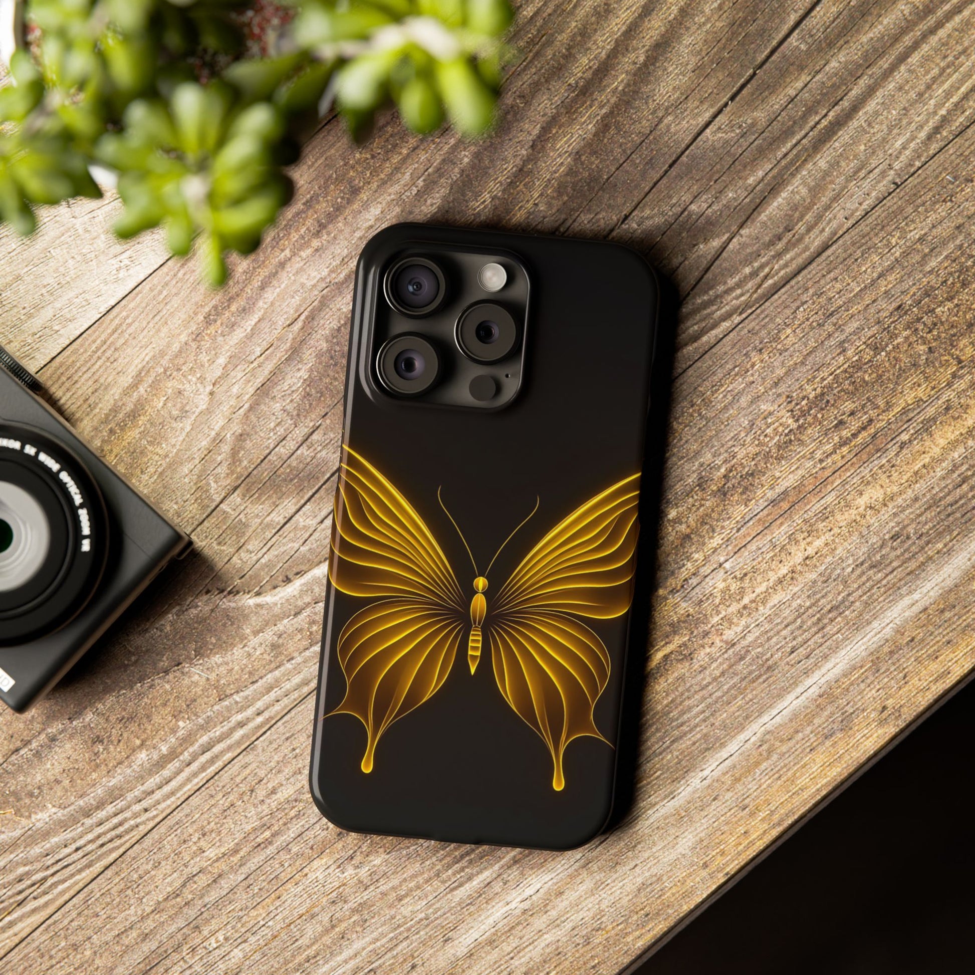 Golden Butterfly Phone Case, Elegant Insect Art, Black Aesthetic Slim Phone Case Compatible with iPhone, Galaxy, Google