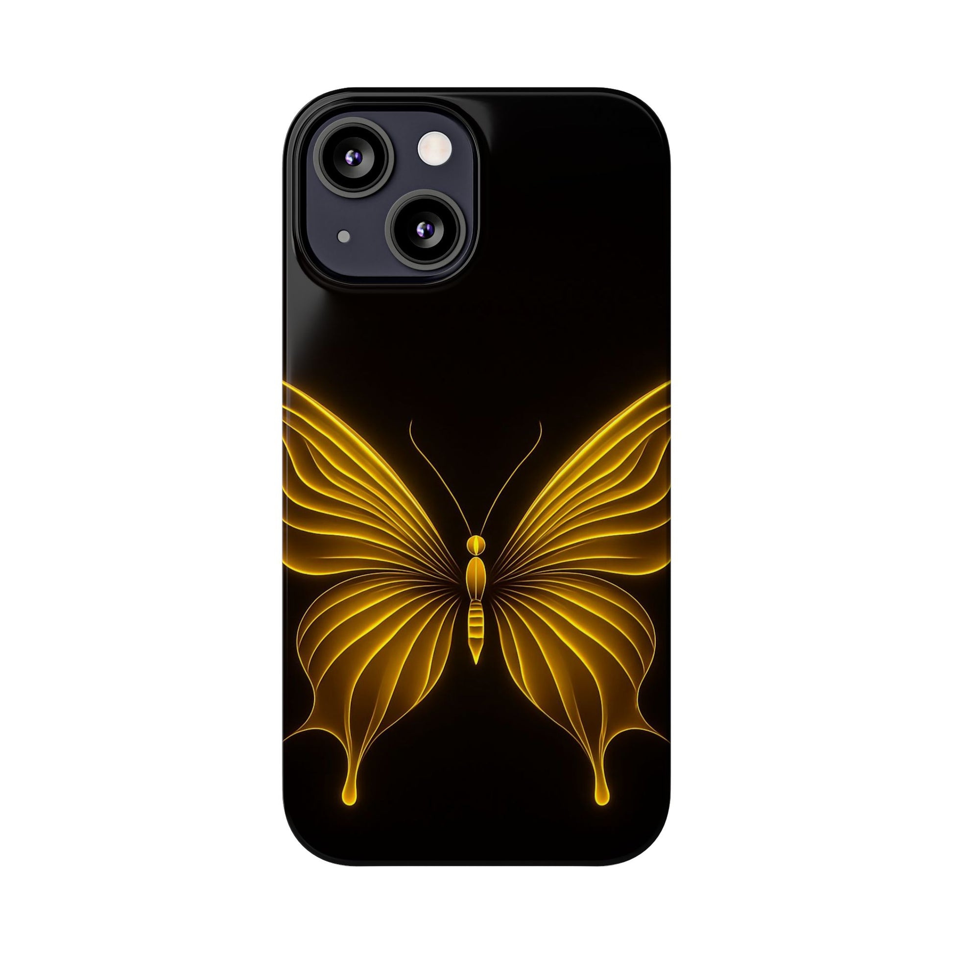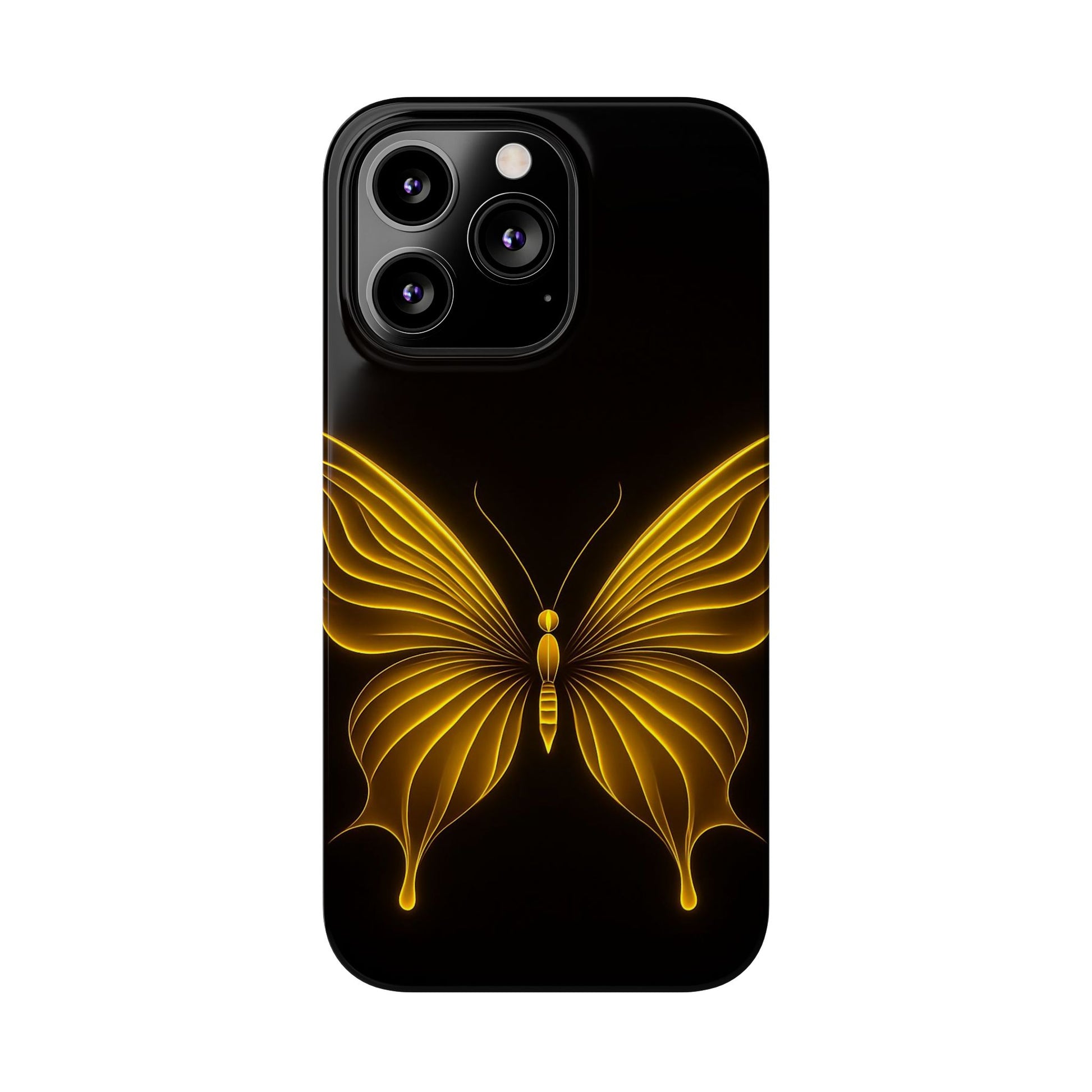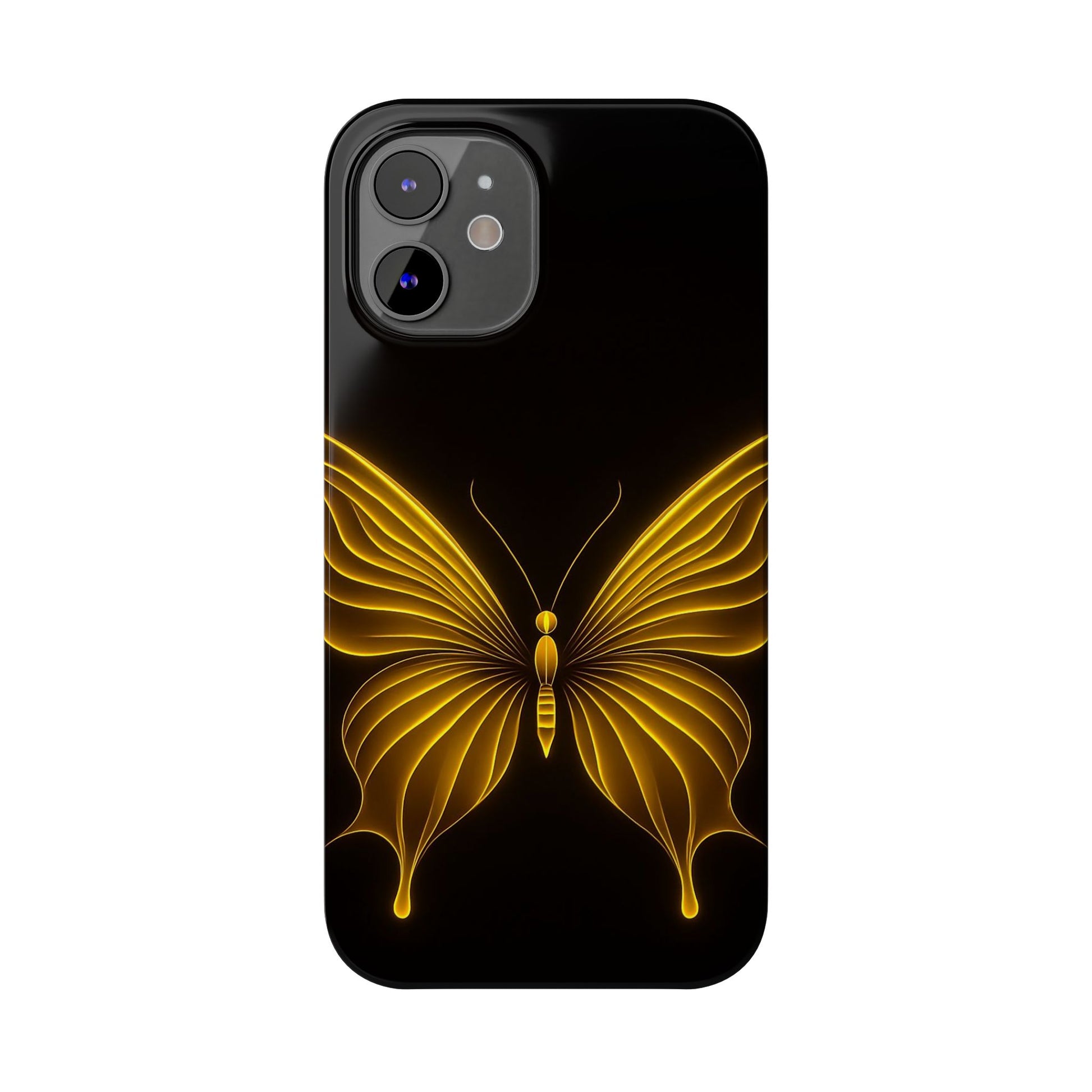 Golden Butterfly Phone Case, Elegant Insect Art, Black Aesthetic Slim Phone Case Compatible with iPhone, Galaxy, Google