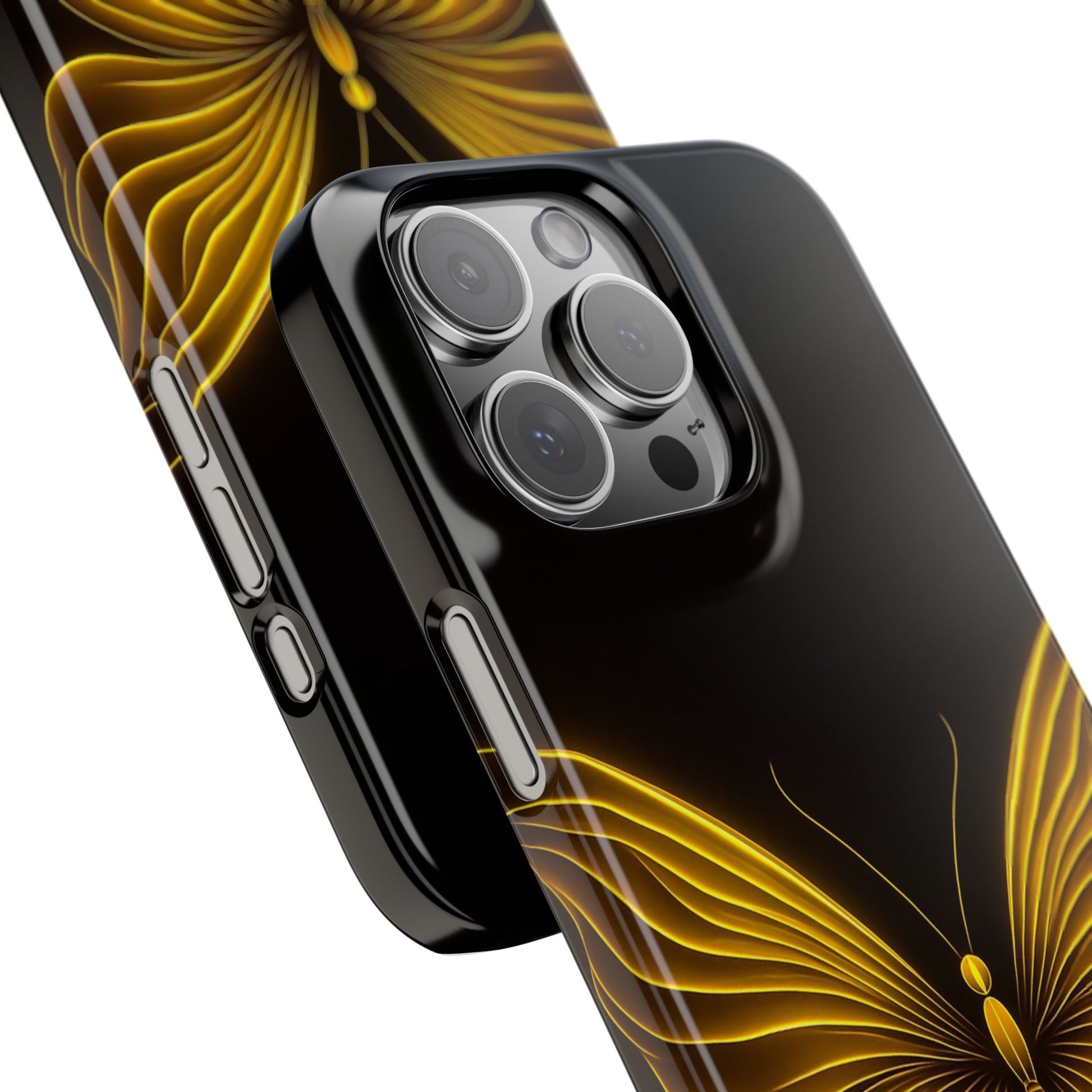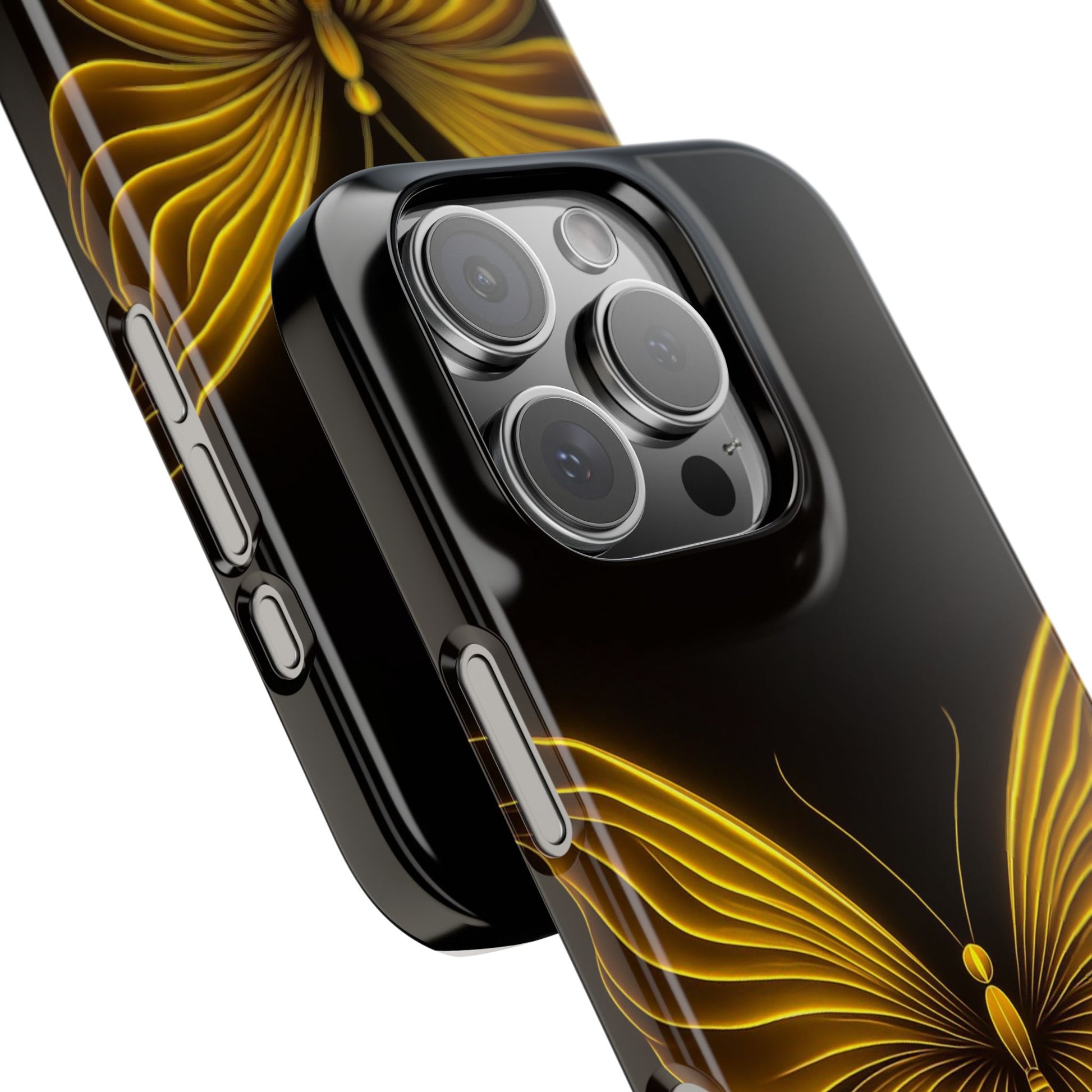 Shine bright with this golden butterfly phone case, where radiant wings glow against a sleek black background. Designed for durability and drama, this tough case transforms your phone into a statement accessory that captures both elegance and strength. Perfect for anyone who loves bold, artful designs with a touch of luxury.