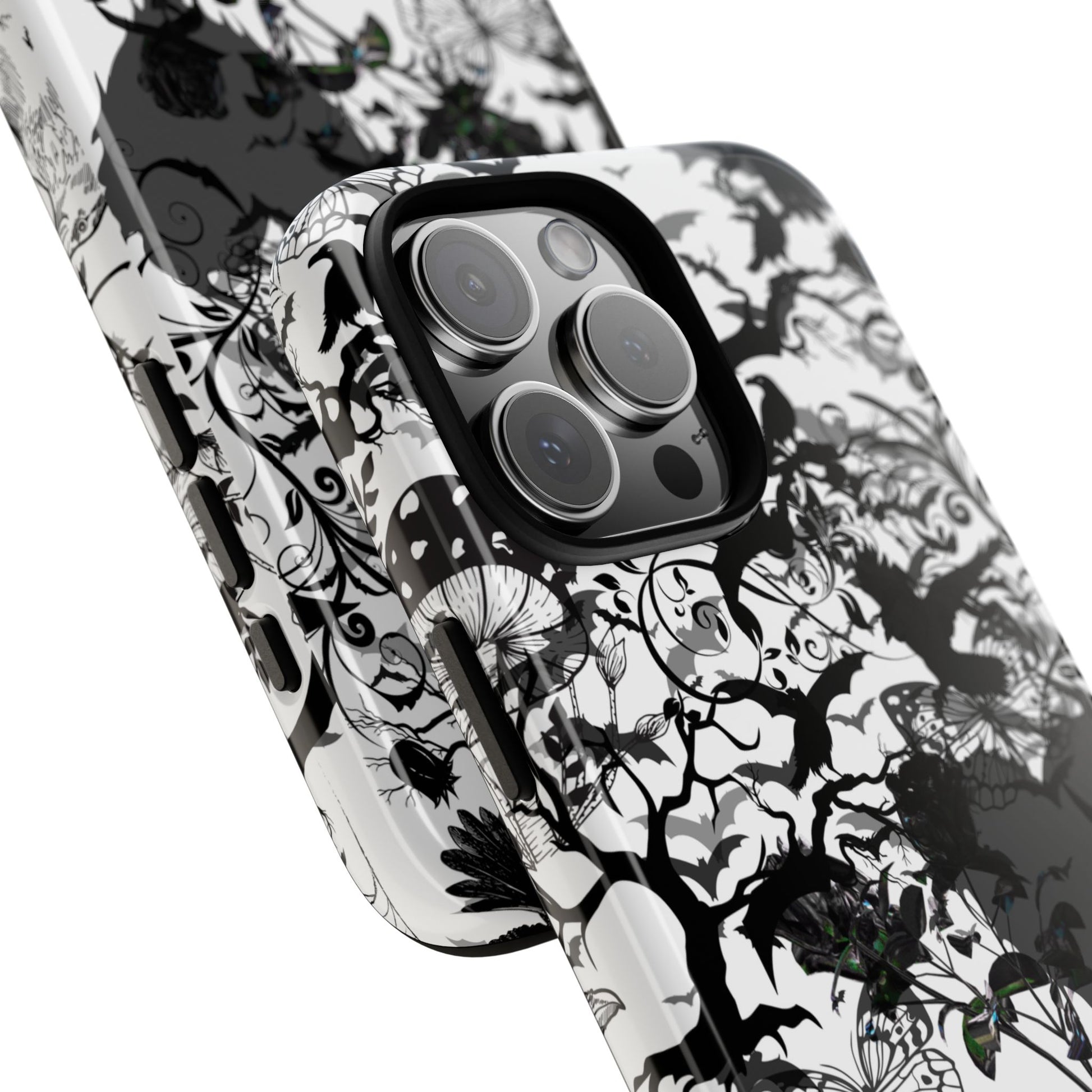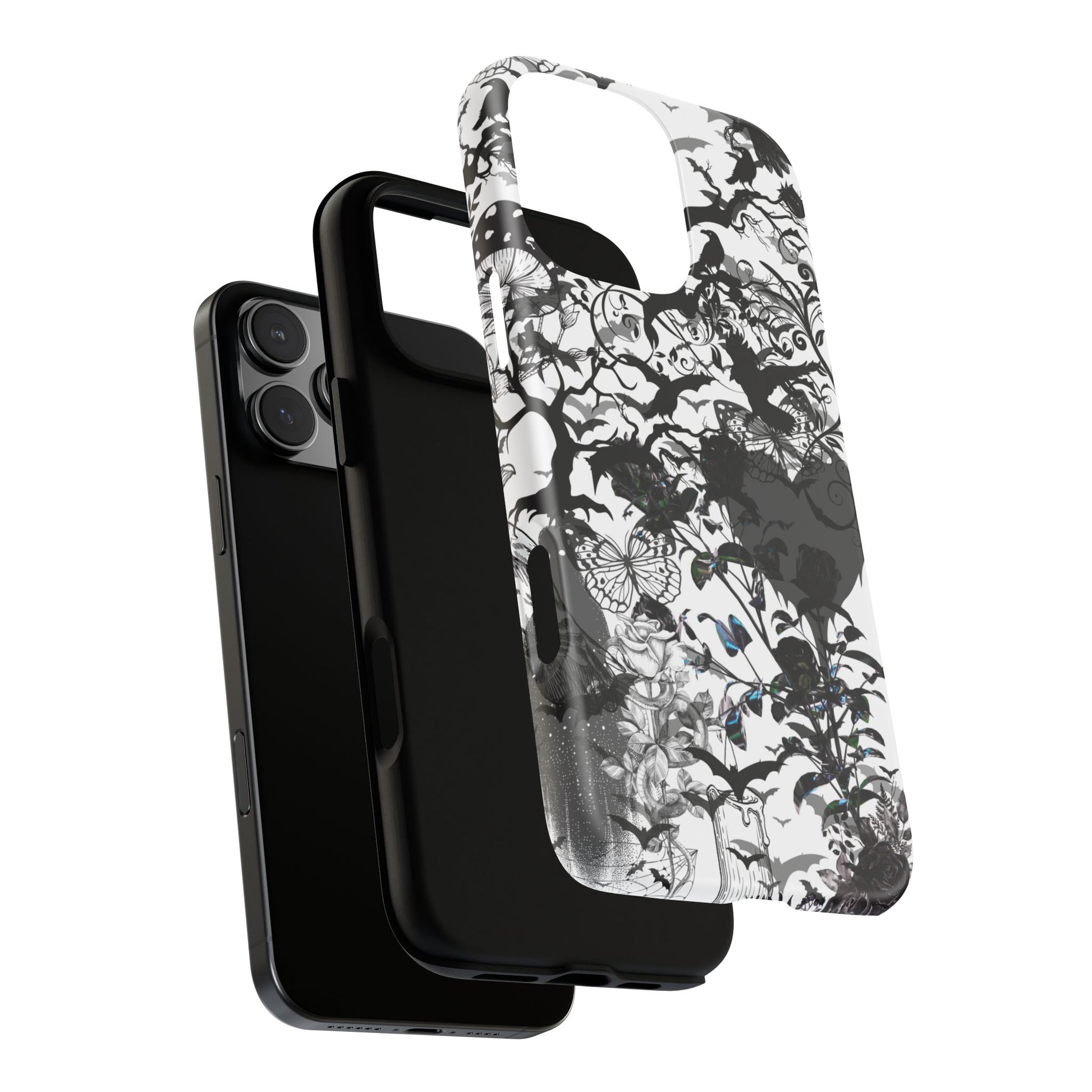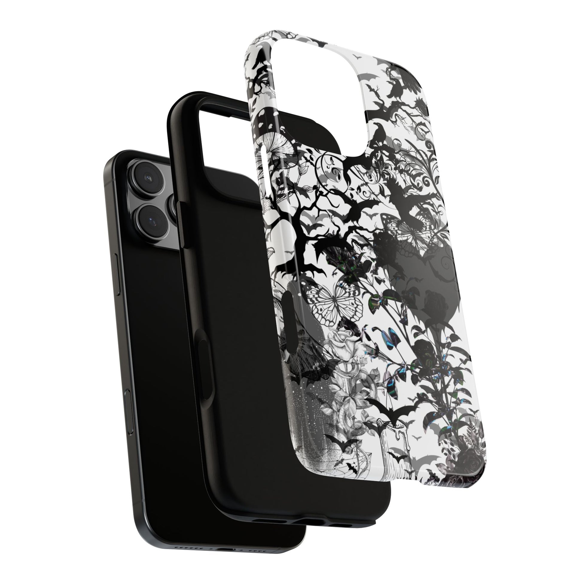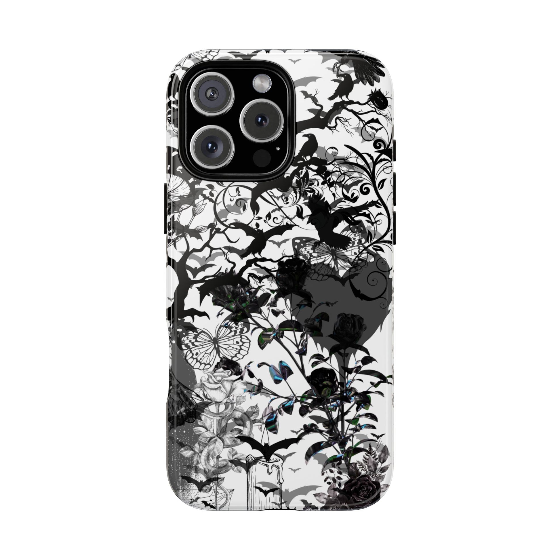 Gothic Fairycore Phone Case, Bats Raven Butterfly & Dark Floral Design Phone Cover for iPhone, Samsung, Pixel, Witchy Spooky Goth Aesthetic