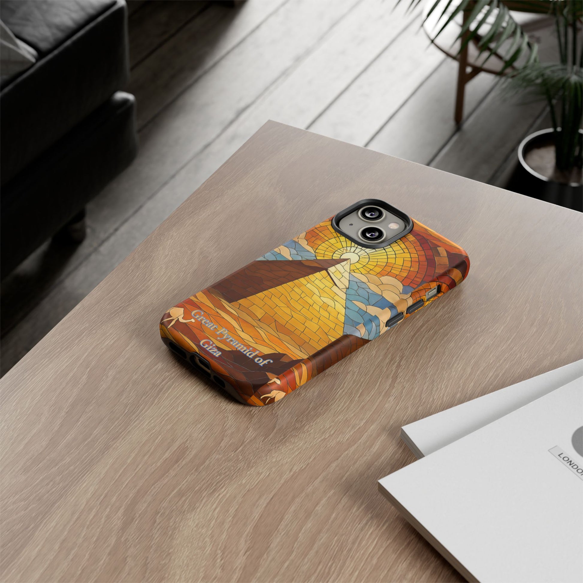 Ancient wonder meets everyday style. Carry the awe of the Great Pyramid of Giza in your pocket—this legendary landmark, glowing under a stained glass style sun, is now reimagined as a stunning tough case design for history lovers, travelers, backpackers, and vintage aesthetics fans alike.