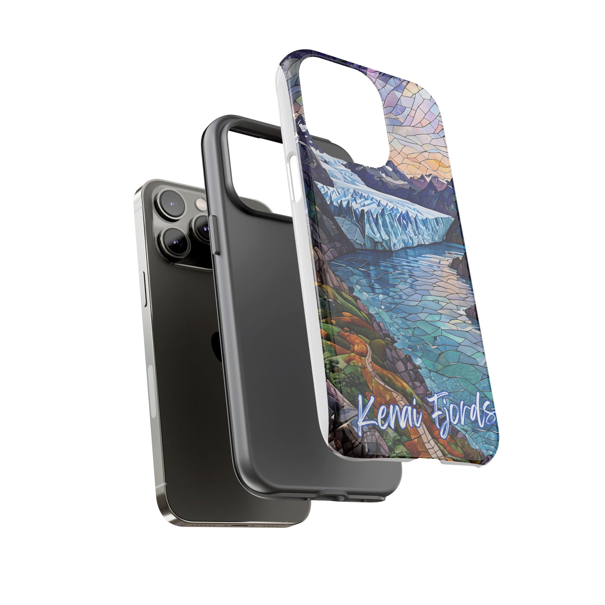 Bring the breathtaking beauty of Kenai Fjords National Park in Alaska to your everyday carry. This custom phone case features a vivid mosaic-style landscape of red rock mountains and canyon scape, all inspired by the iconic scenery of one of California's national treasures. Collect all our National Park phone cases. The stained-glass mosaic effect gives the design an artistic, handcrafted feel while preserving the spirit of nature.