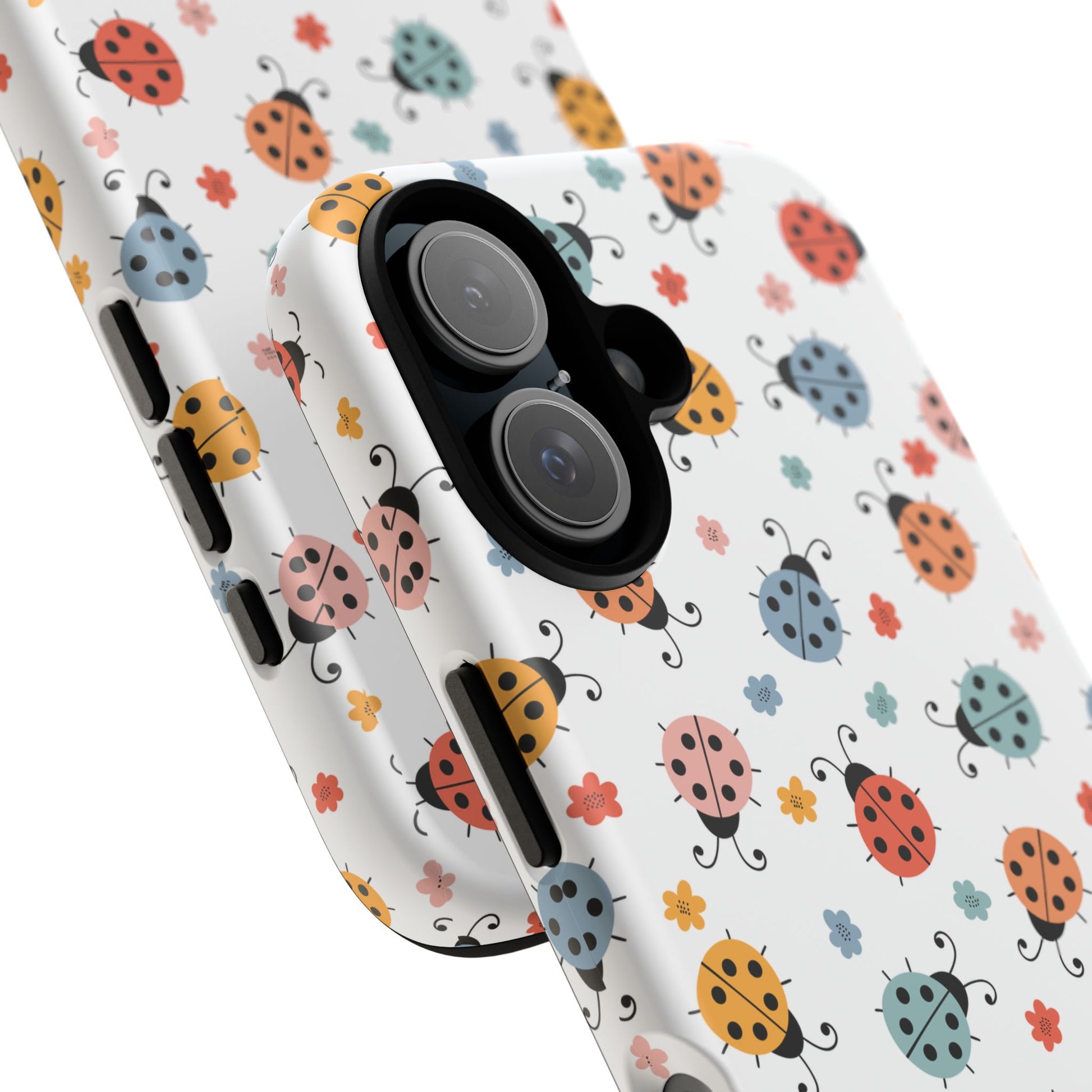 This tough phone case features an adorable scatter of colorful ladybugs, red, yellow, pink, and blue dancing alongside tiny flowers on a crisp white background. Perfect for bug lovers, gardeners, and whimsical souls, it blends a cheerful, nature-inspired design with durable protection to keep your phone safe in style.