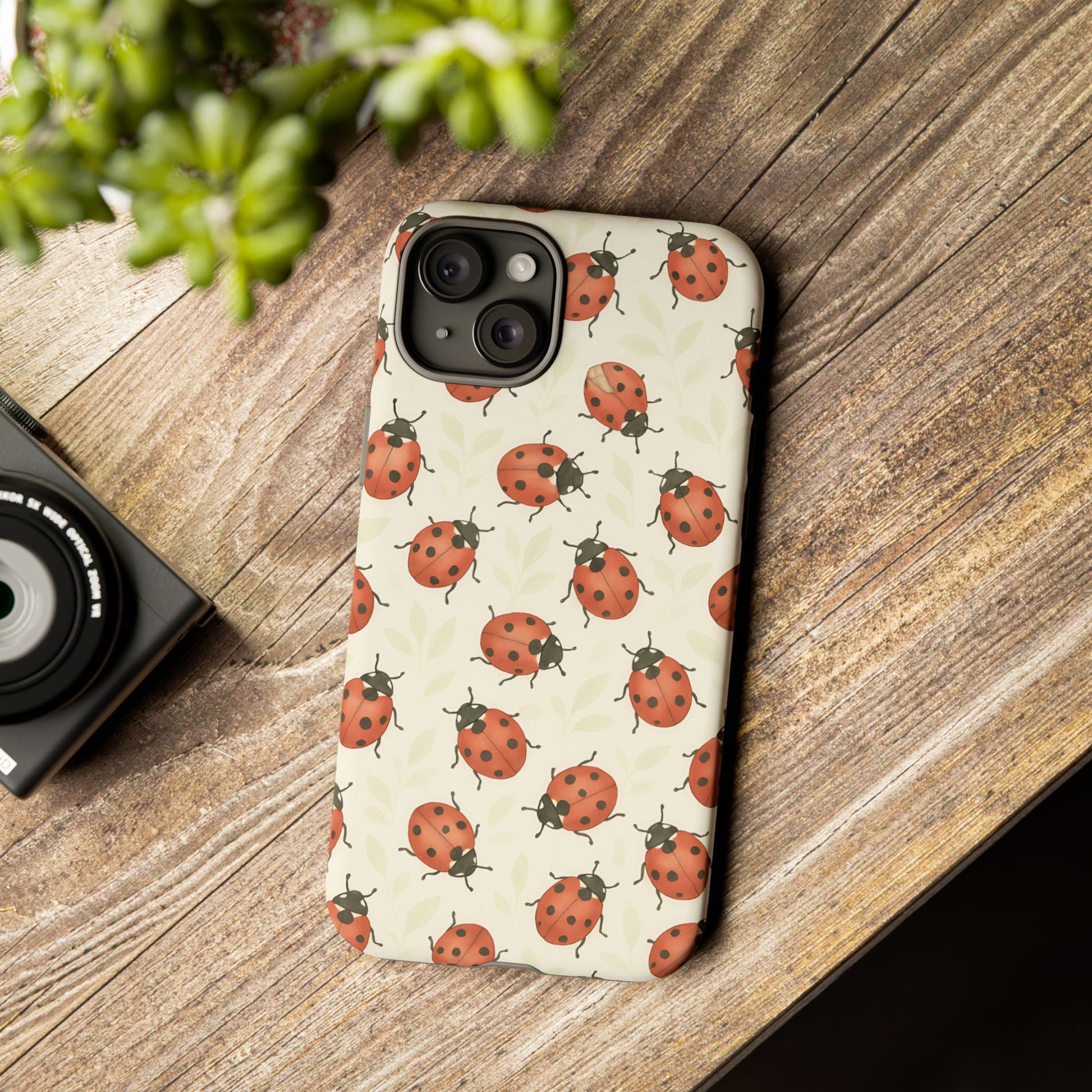 Ladybug Tough Phone Case - Cute Insect Aesthetic, Nature-Inspired Pattern Art, Compatible with iPhone, Galaxy, and Google Phones
