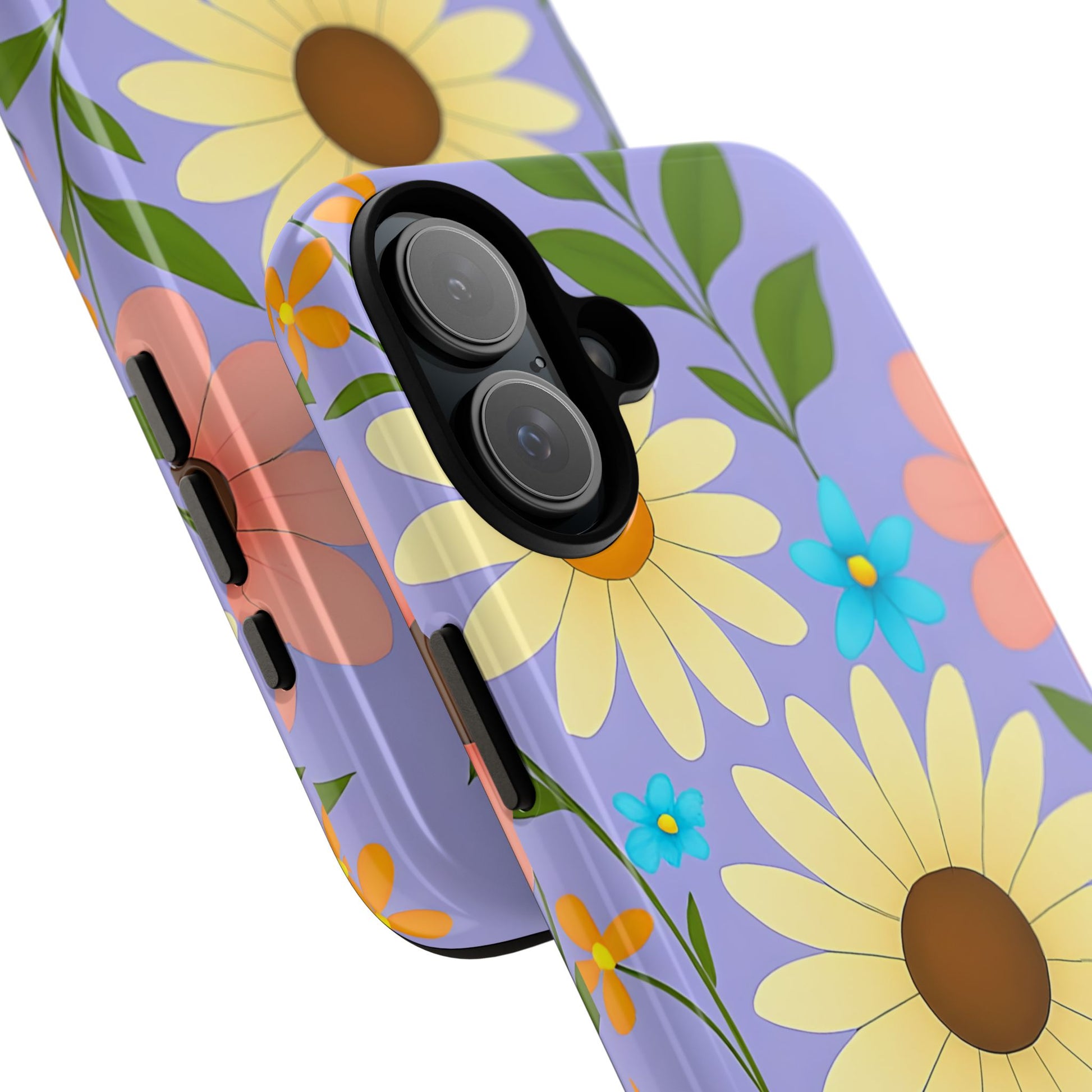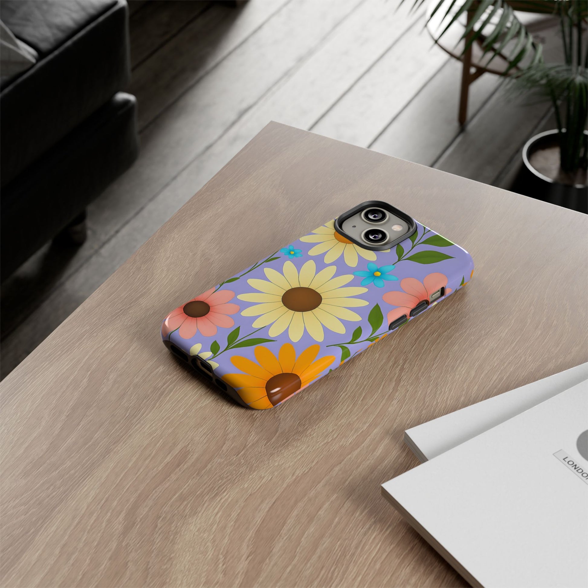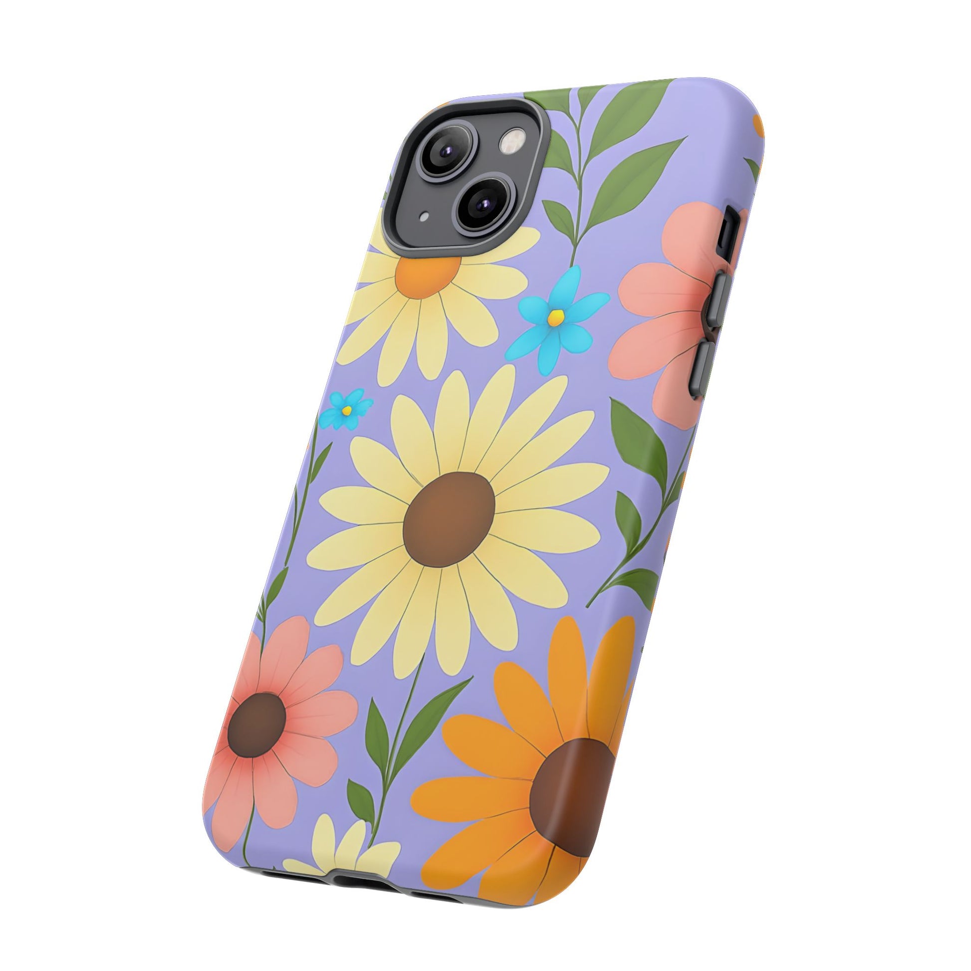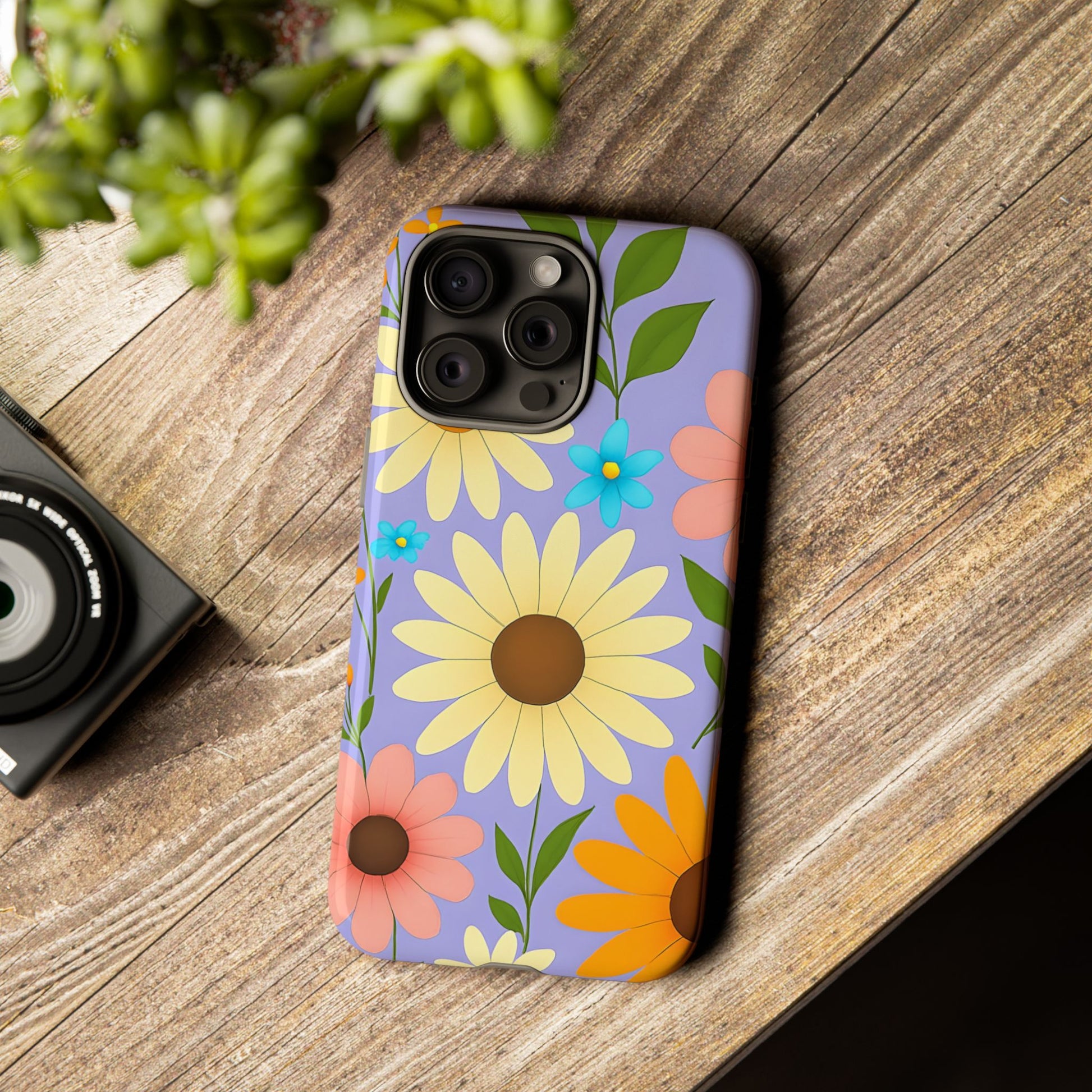 Minimal Daisy Flower Tough Phone Case - Retro Coquette Floral Print, Cute Soft Aesthetic, Compatible with iPhone, Galaxy, and Google Phones