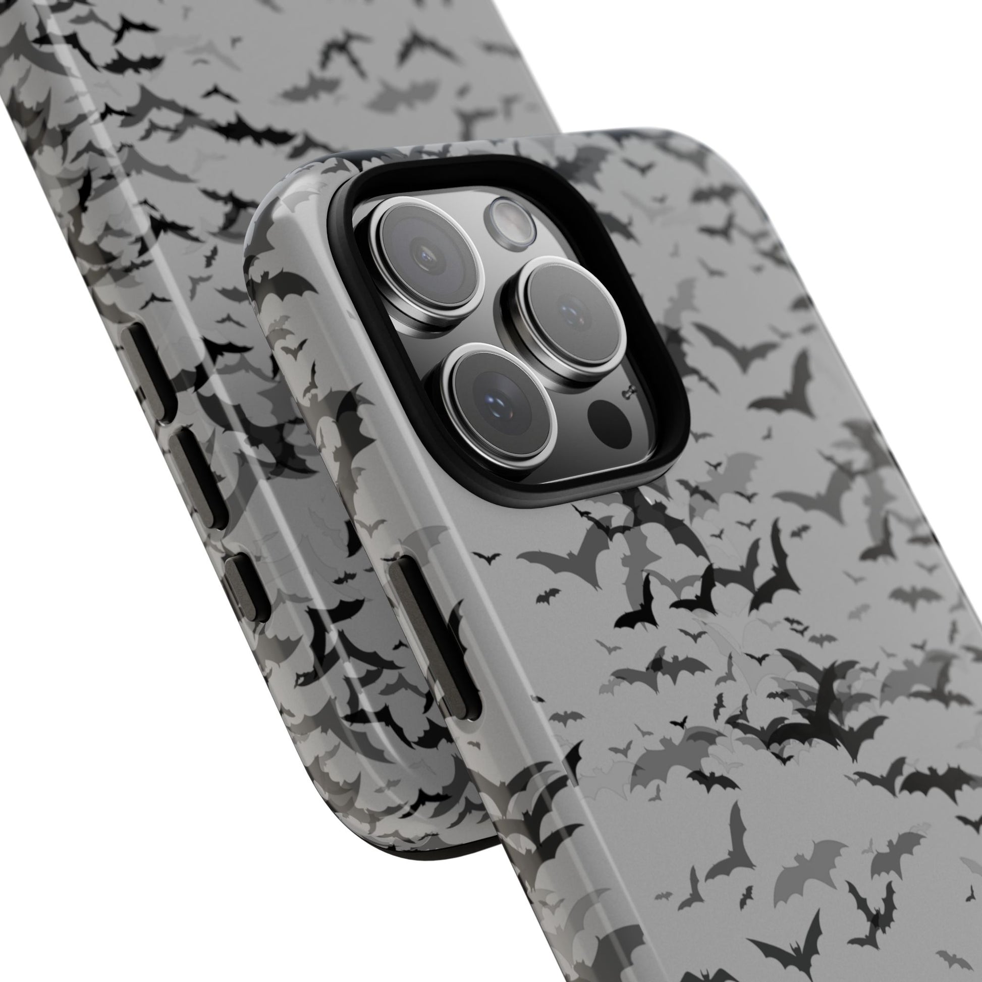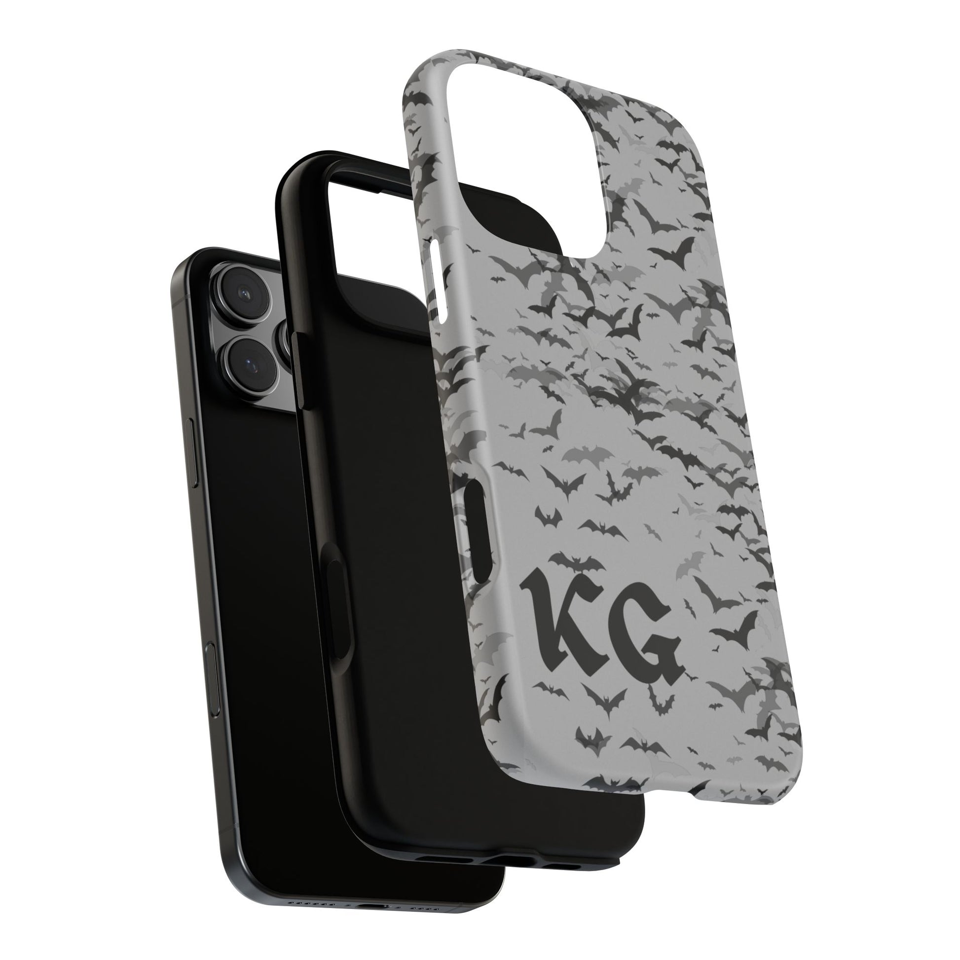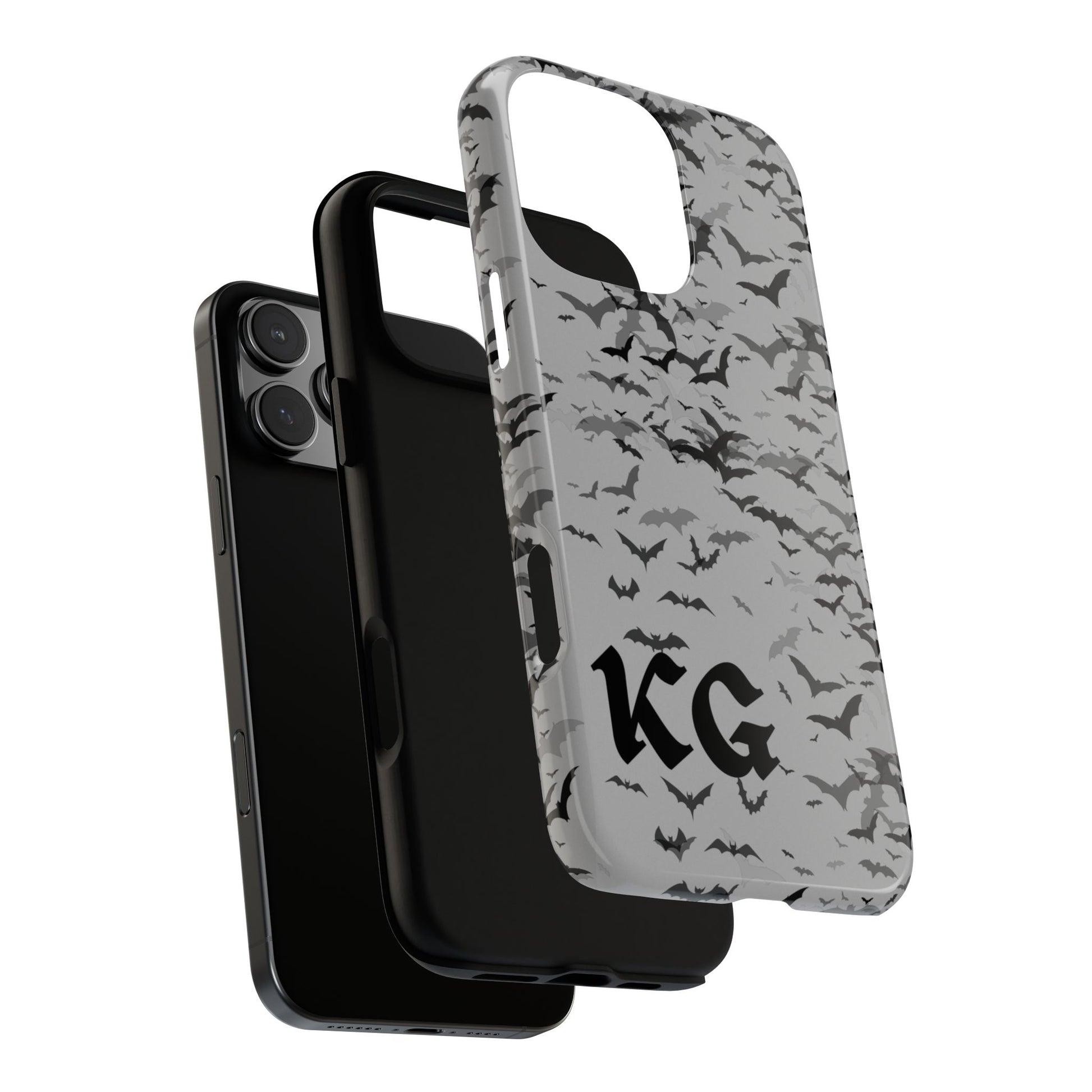 Embrace dark magic and haunting beauty with this personalized gothic phone case. Featuring a dramatic swarm of bats on a smoky gray backdrop, it’s the perfect mix of goth style and spooky charm. Personalized with your initials, a perfect accessory for lovers of spooky season, witchy vibes, and alternative fashion. Dark, dramatic, and uniquely yours.