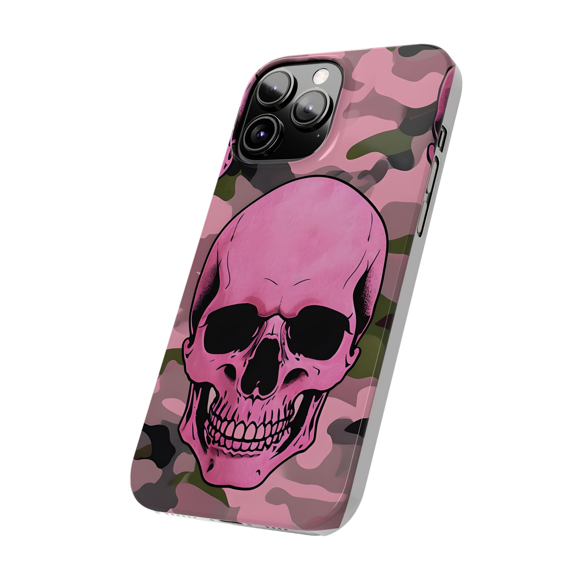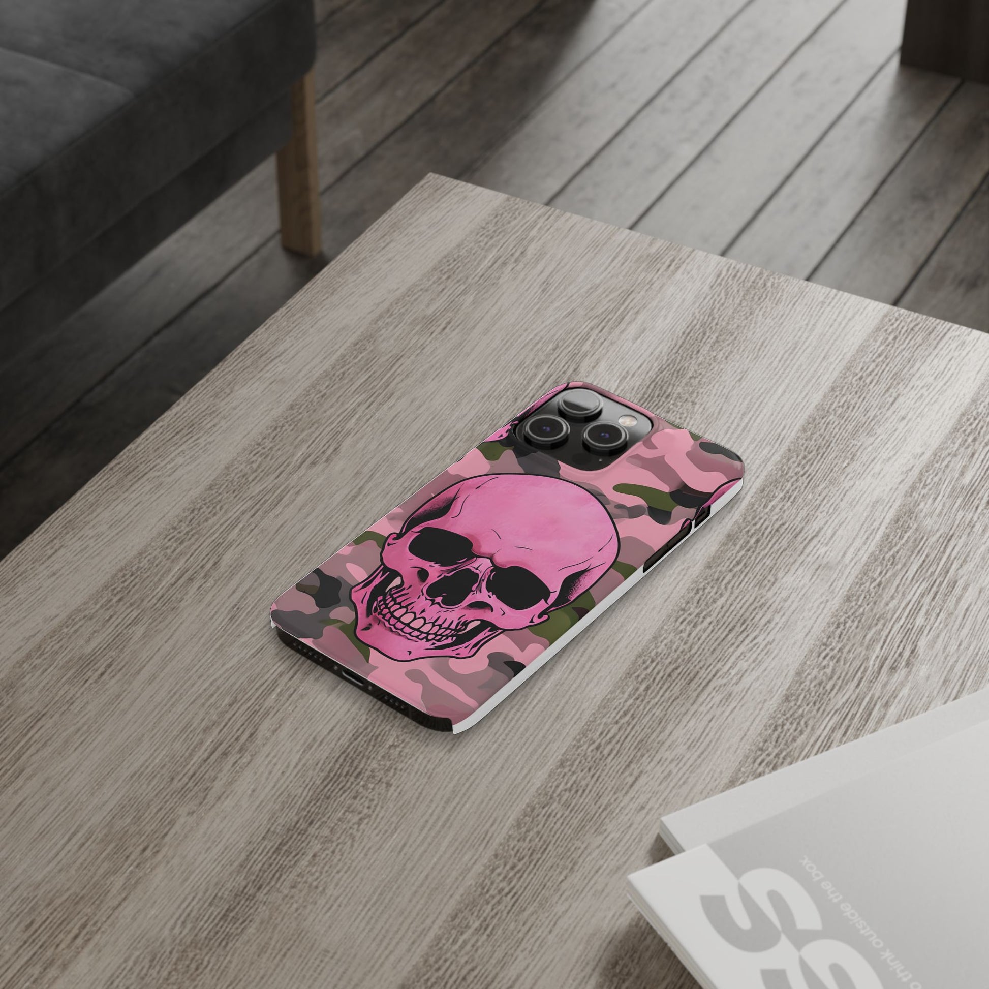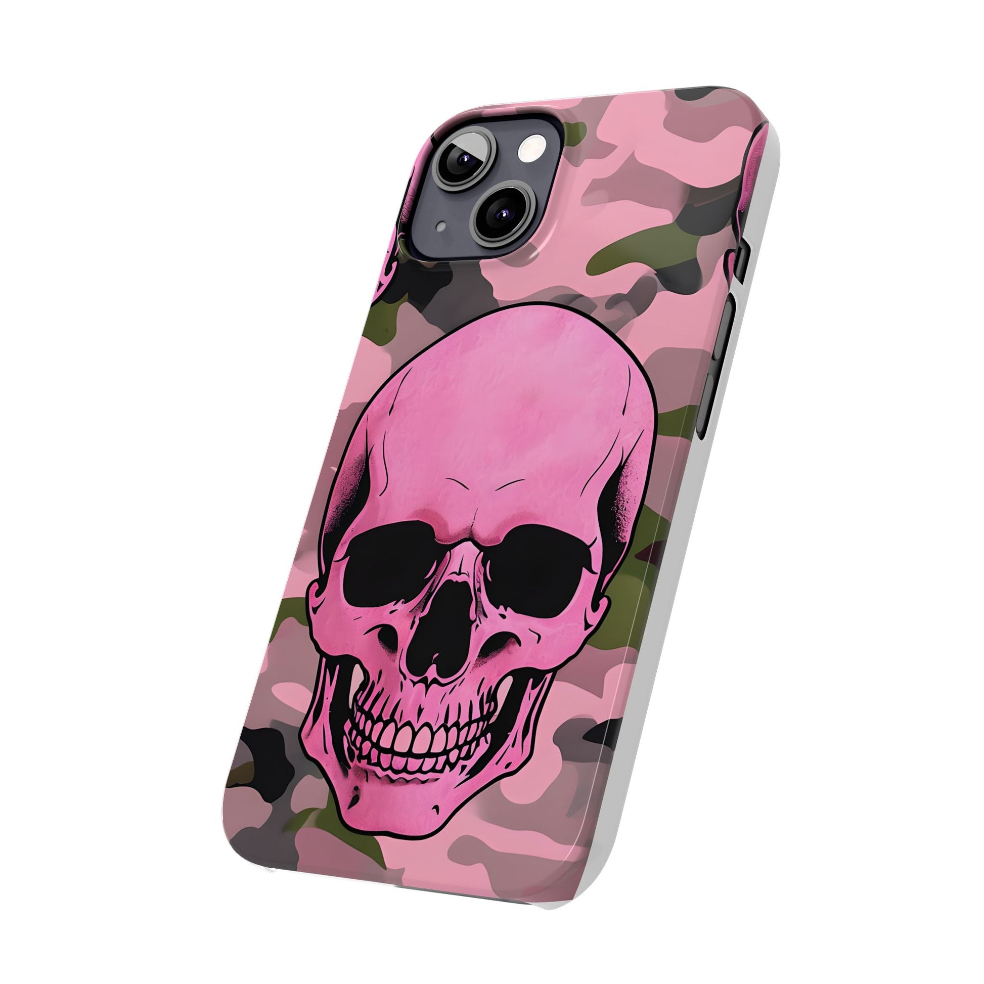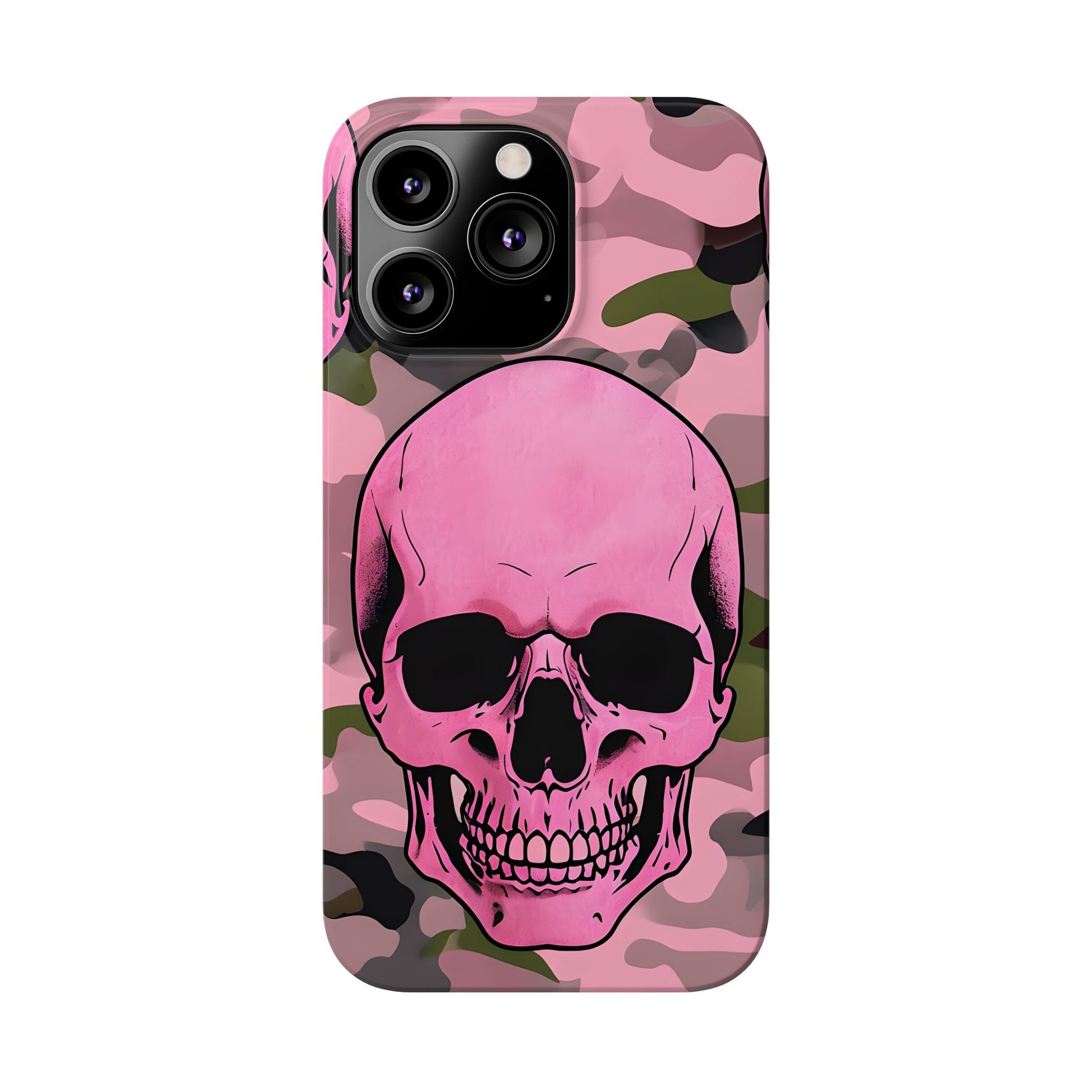 Pink Camo Skull Phone Case, Slim Case for iPhone, Edgy Phone Accessory, Unique Gift for Her, Trendy Tech Lover