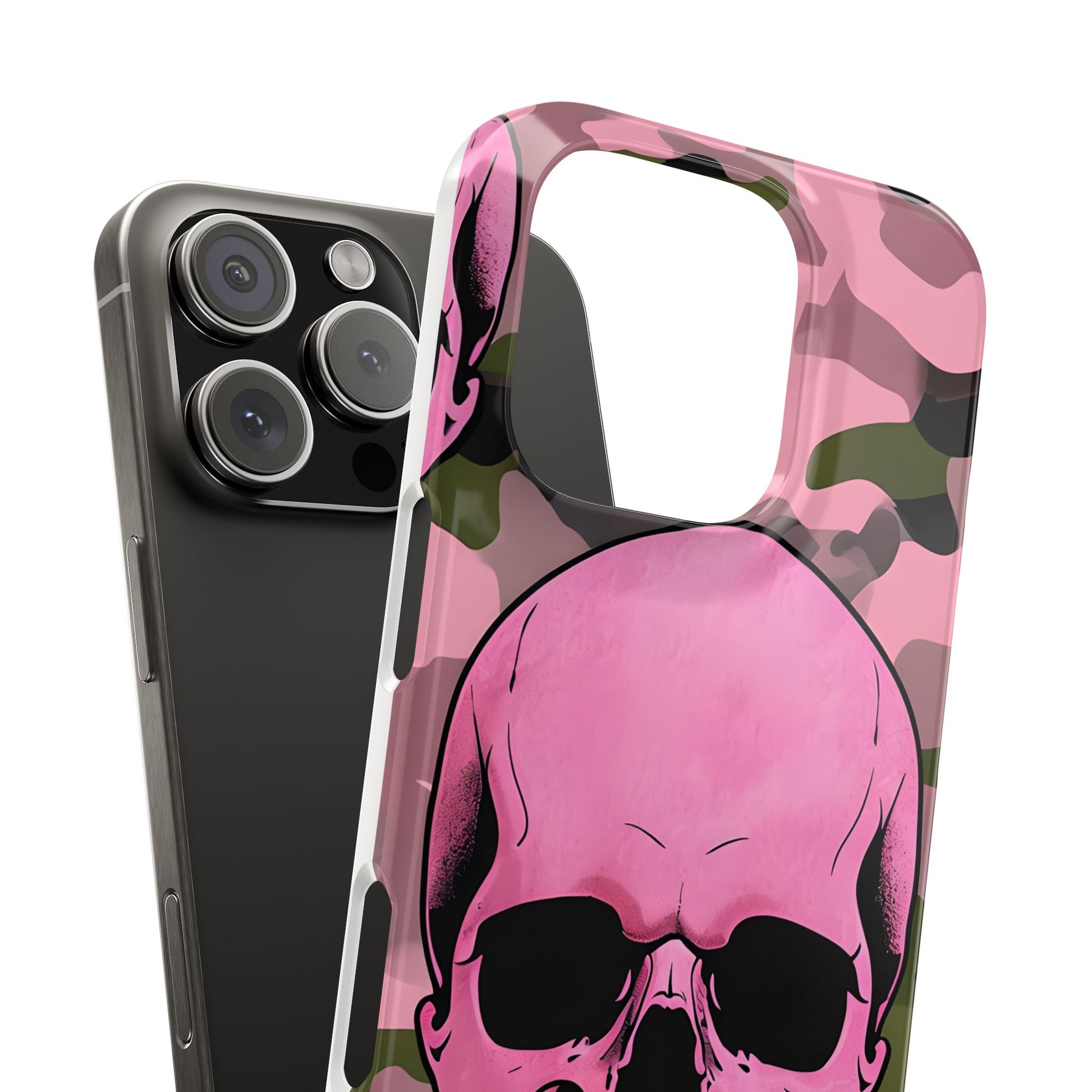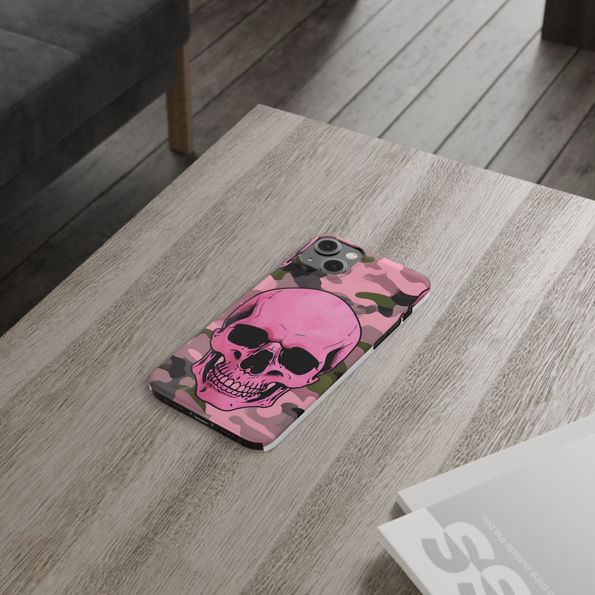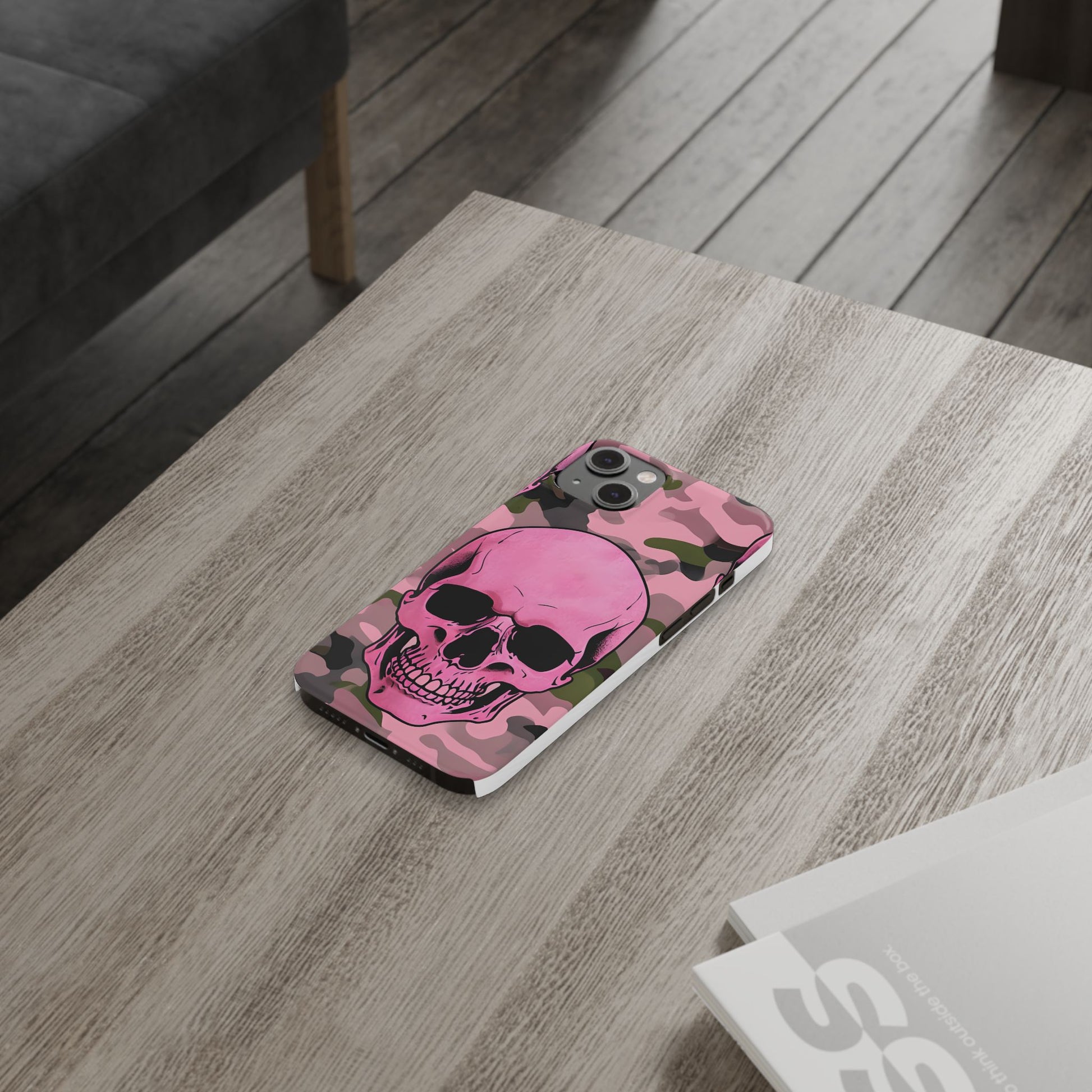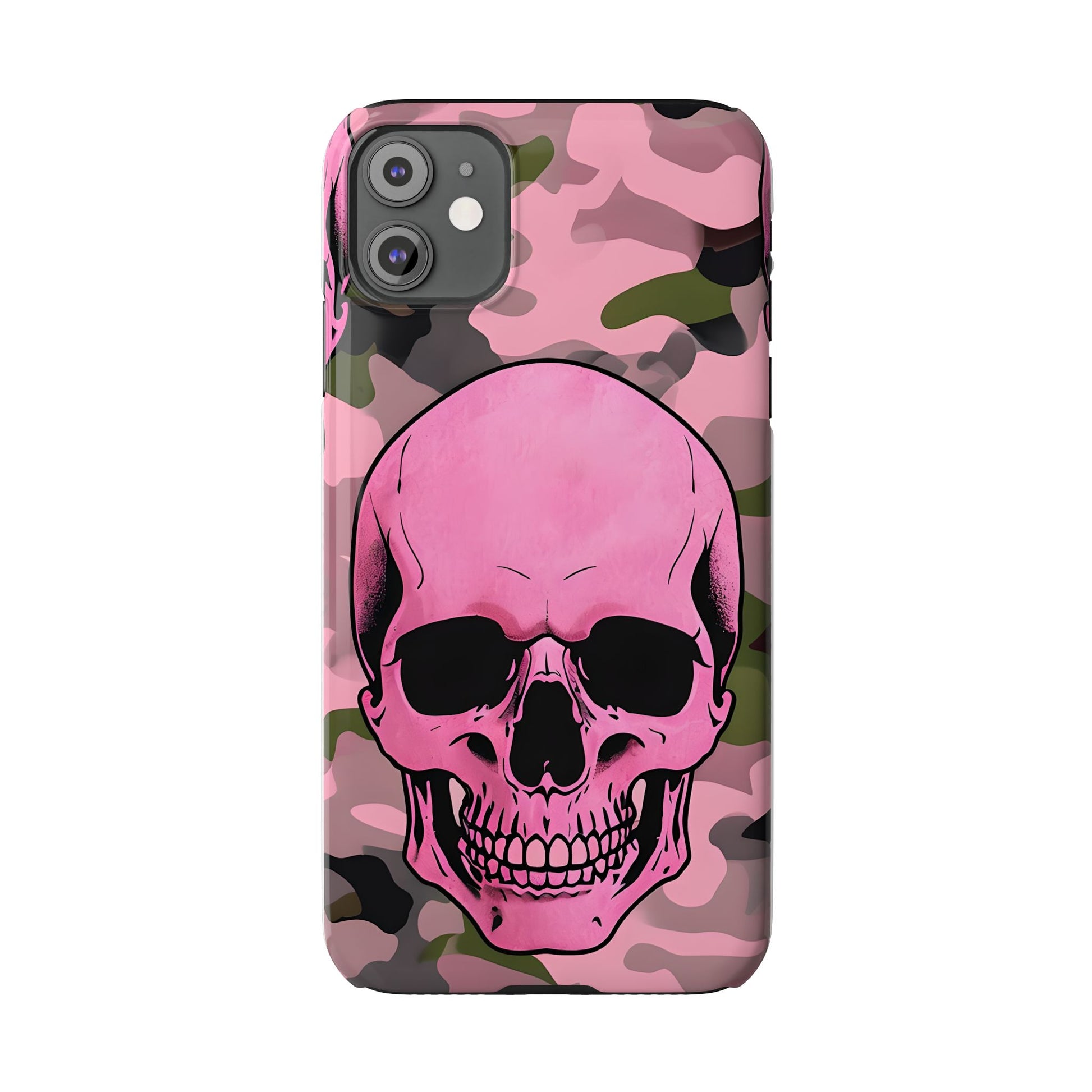 Pink Camo Skull Phone Case, Slim Case for iPhone, Edgy Phone Accessory, Unique Gift for Her, Trendy Tech Lover