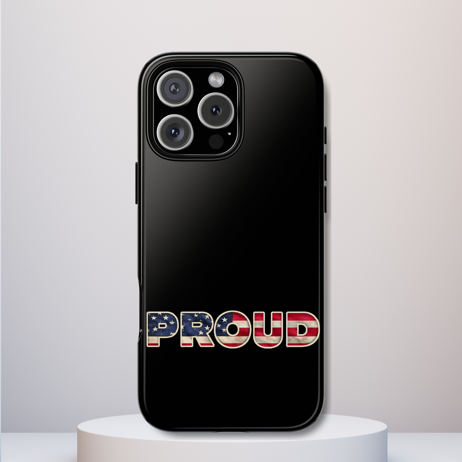 Proud USA Tough Phone Case, Patriotic USA Flag Lettering Cover, Compatible with iPhone 17, 16, 15, 14, 13, Galaxy, Google