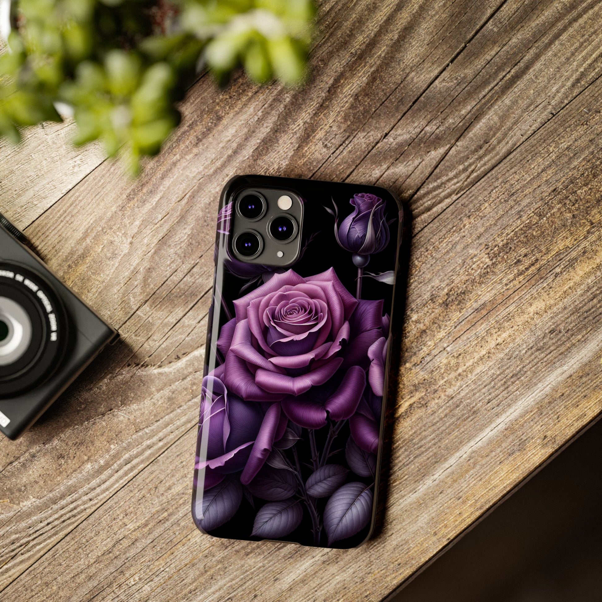 Purple Rose Slim Phone Cases, Floral Phone Cover, Elegant Smartphone Case, Gift for Her, Mother's Day Accessories