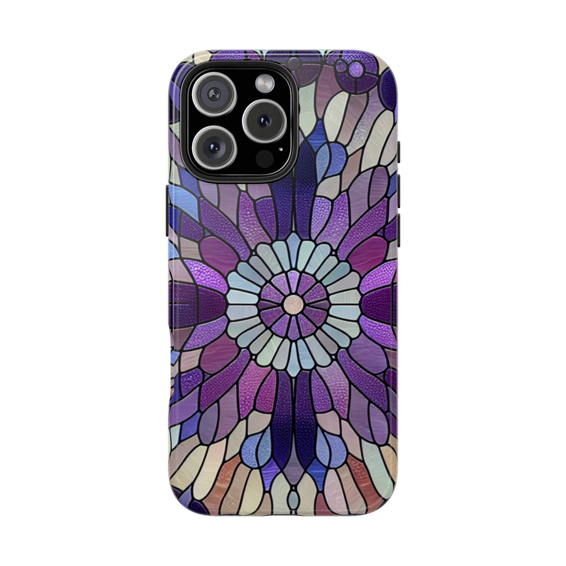 Purple Stained Glass Floral Phone Case Durable & Vibrant, Elegant Tough Cover compatible with iPhone and Samsung Galaxy Purple Mosaic Art