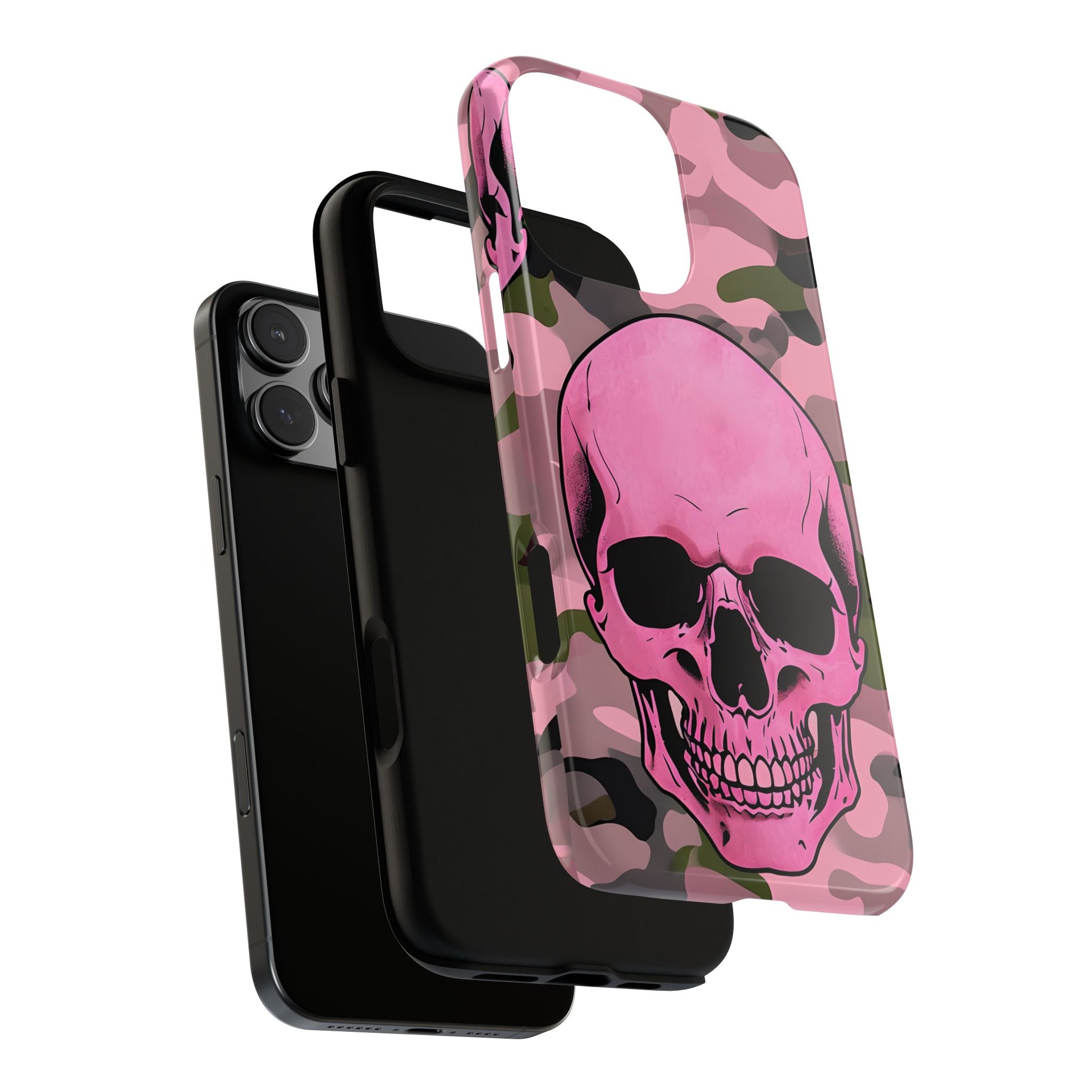 Celebrate love with a spooky twist! This skeleton lover's phone case features a skeleton head framed with a pink camo design. Equal parts fun and eerie, it's the perfect phone case for pastel goths, horror romantics, and anyone who loves goth with a little edge.
