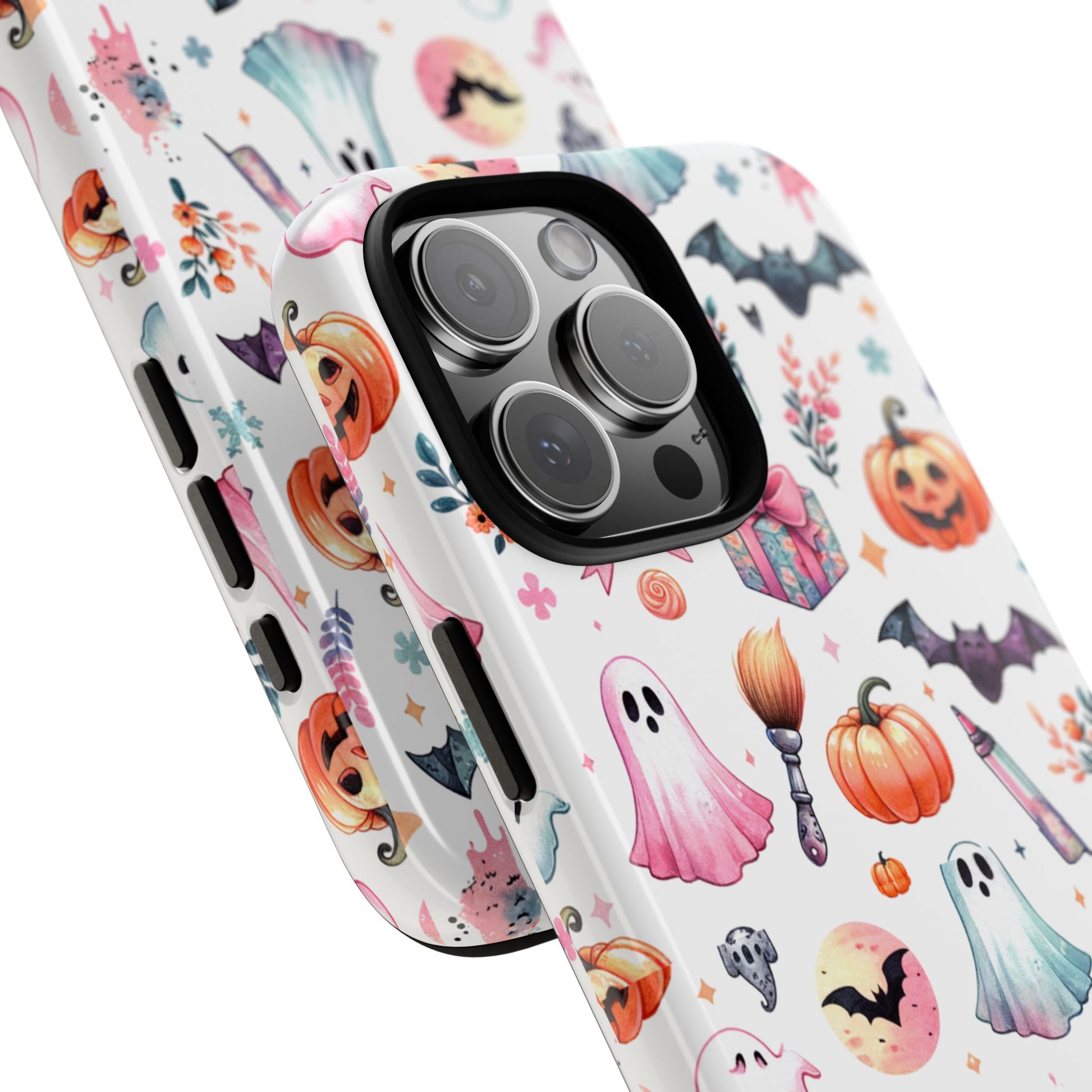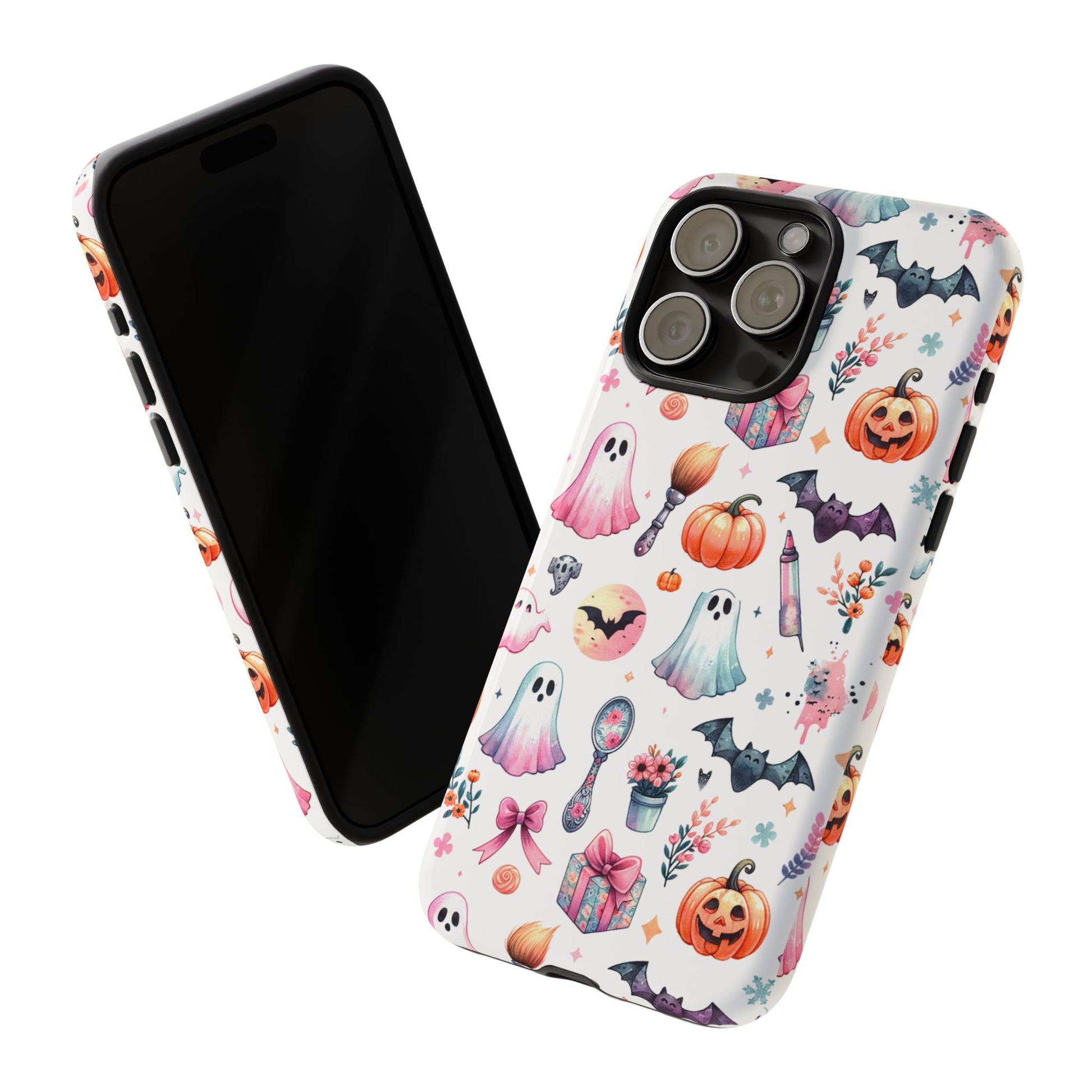 Add a playful twist to spooky season with our Cute Summerween Ghost Phone Case! This design blends Halloween charm with soft pastel tones for the perfect kawaii aesthetic. Featuring adorable watercolor ghosts, bats, pumpkins, bows, florals, and makeup brushes, this case is a must-have for anyone who loves spooky and sweet. Ideal for adults who enjoy celebrating Halloween and want to protect their phone in style.
