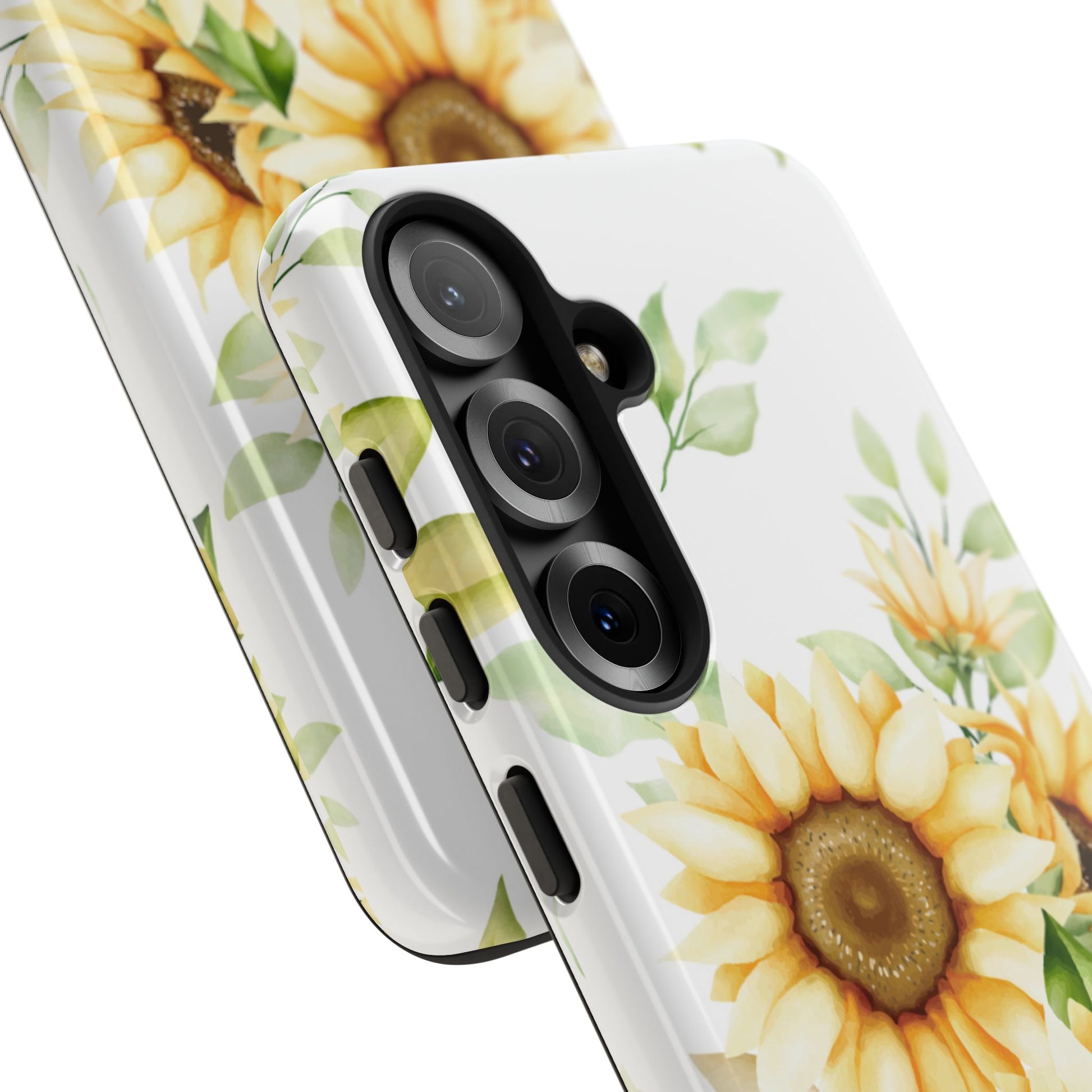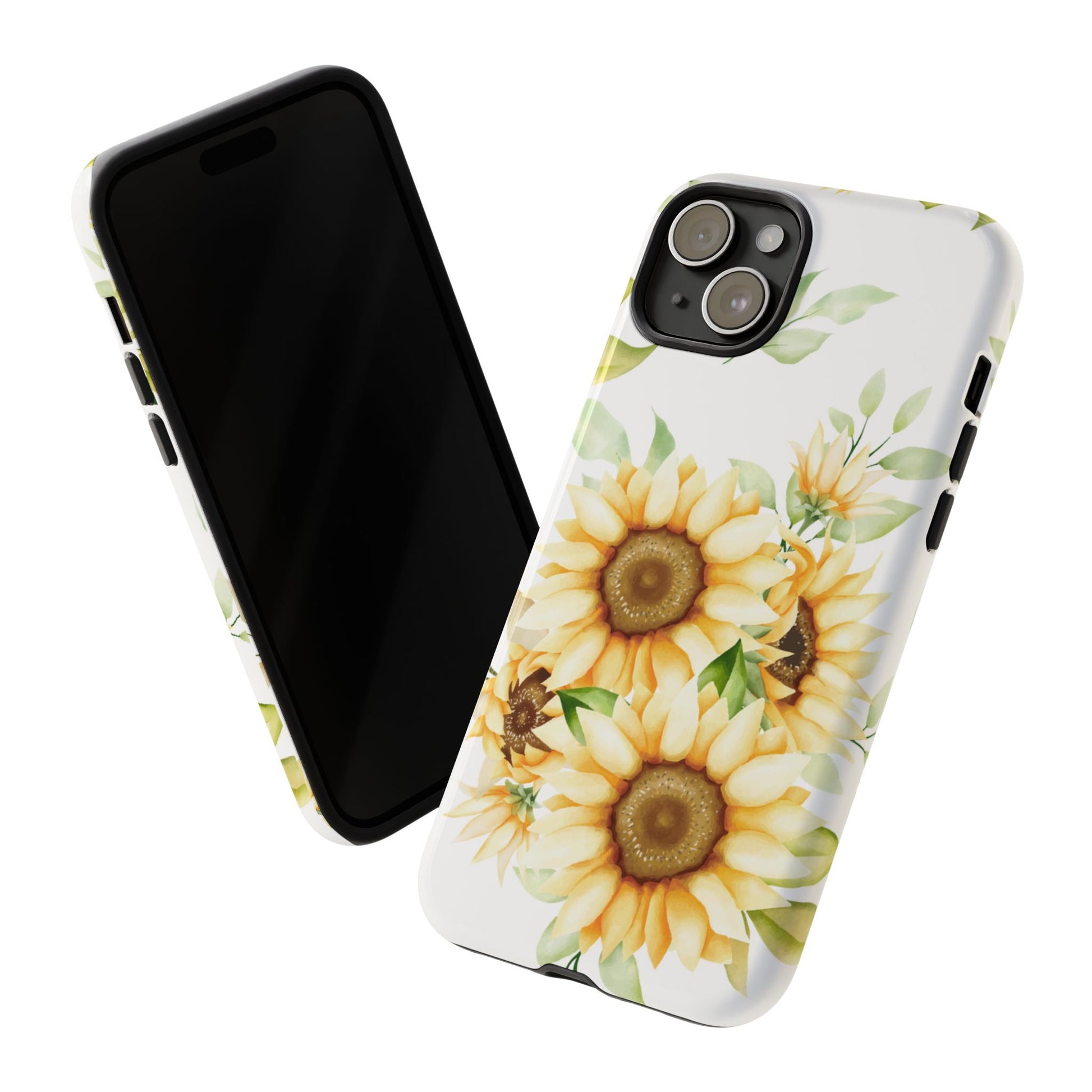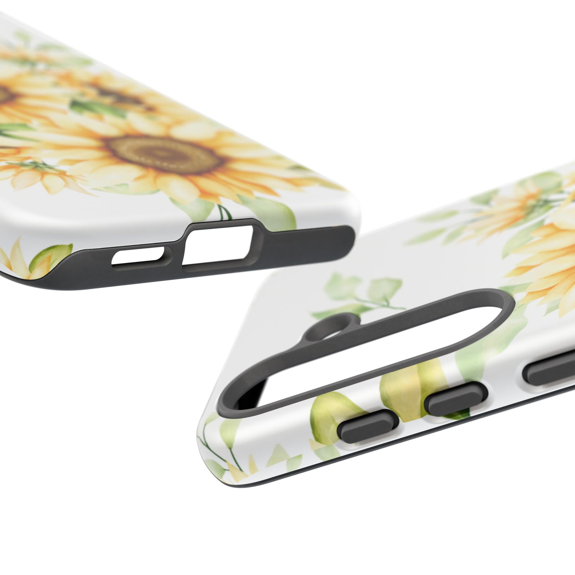 Sunflower Floral Tough Phone Case - Watercolor Botanical Art, Bright Nature Aesthetic, Compatible with iPhone, Galaxy, and Google Phones