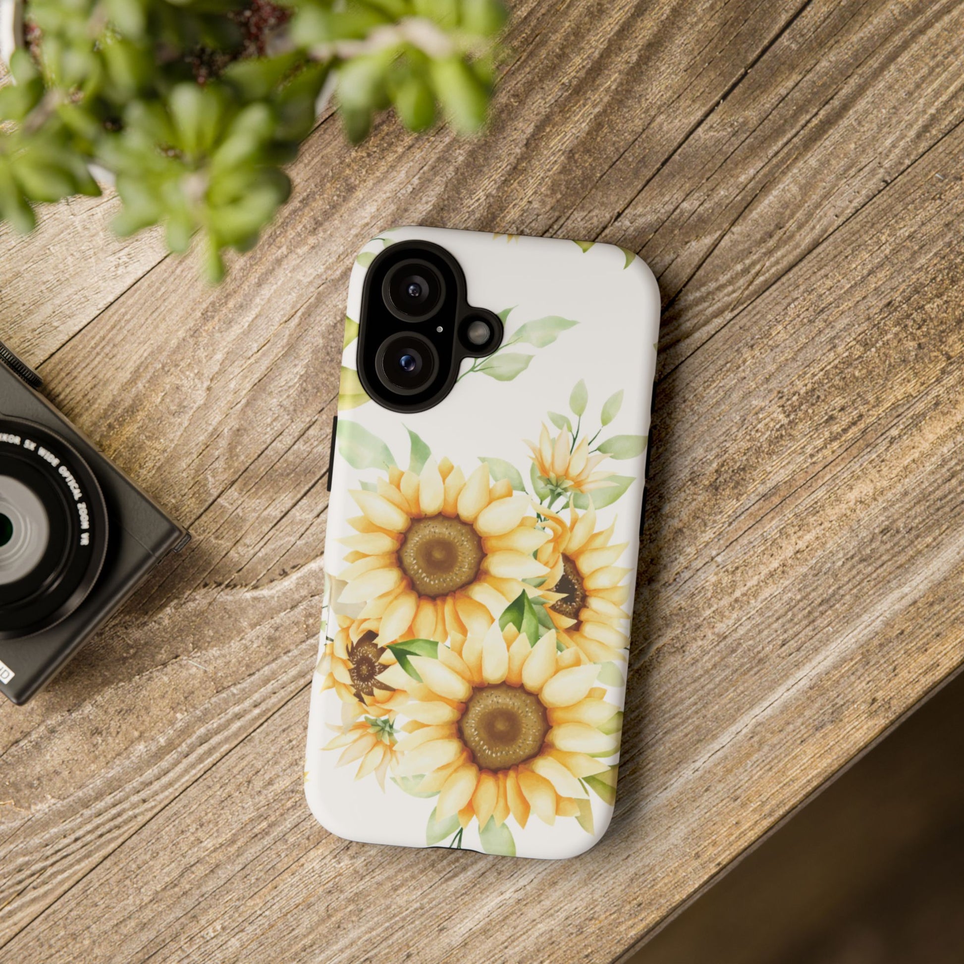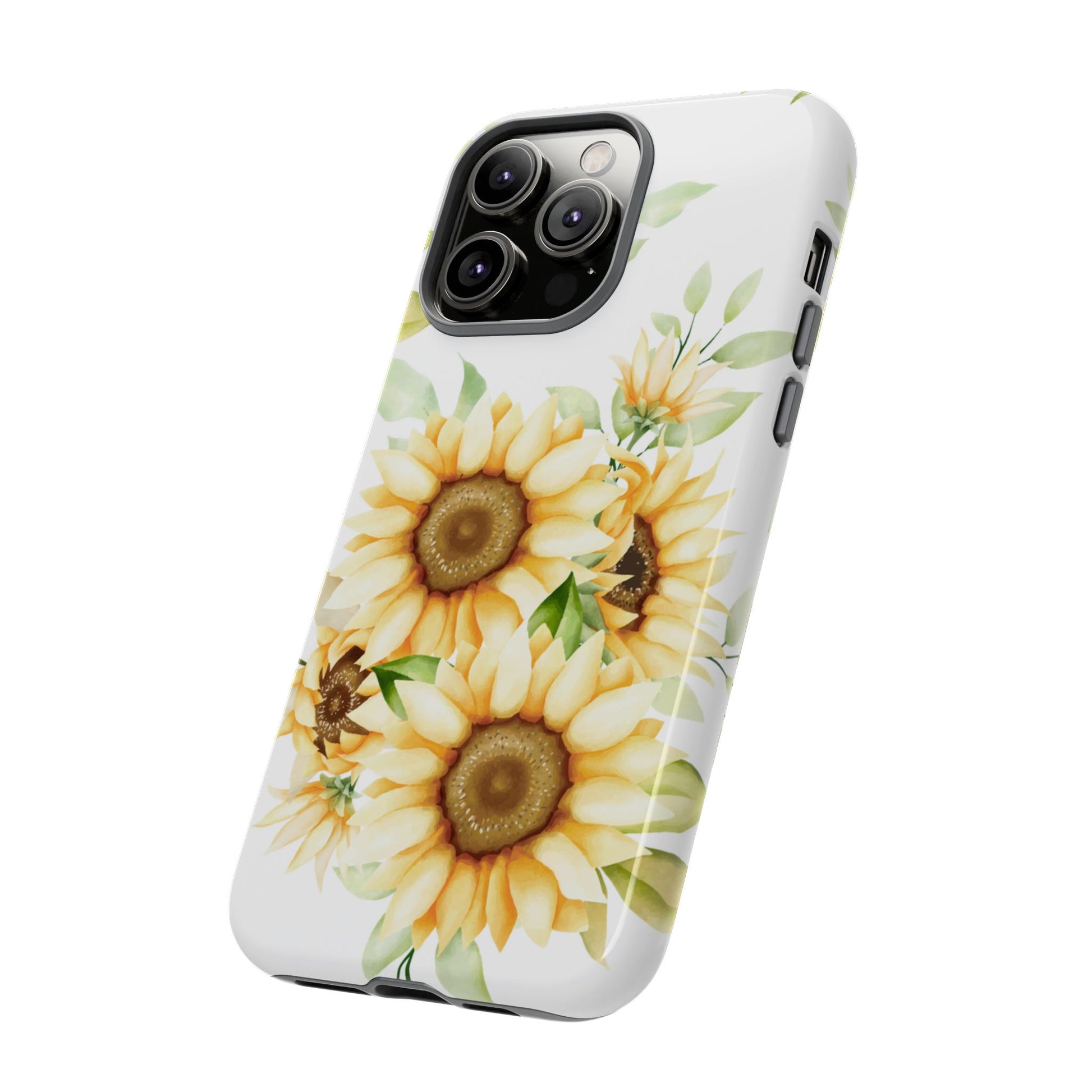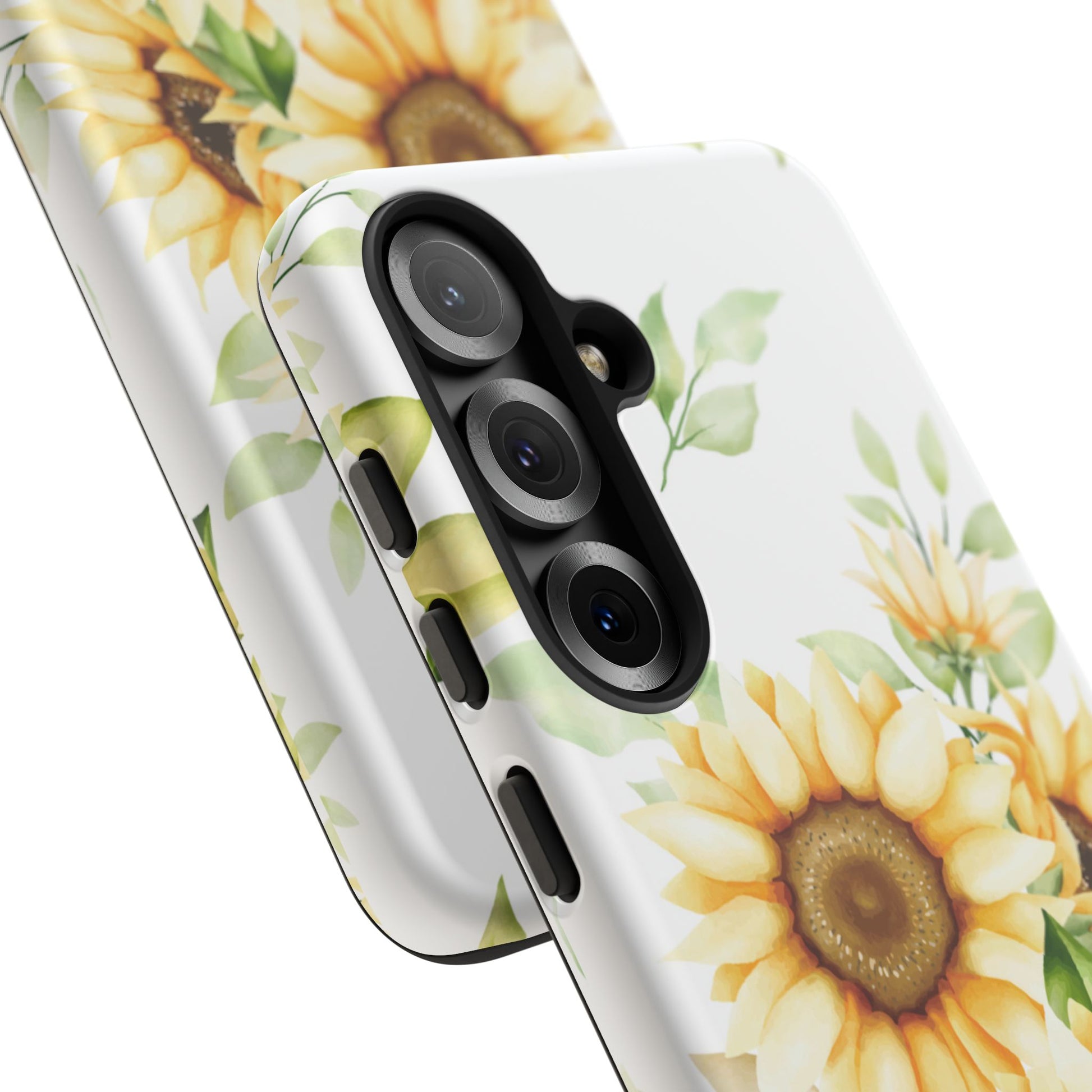 Sunflower Floral Tough Phone Case - Watercolor Botanical Art, Bright Nature Aesthetic, Compatible with iPhone, Galaxy, and Google Phones