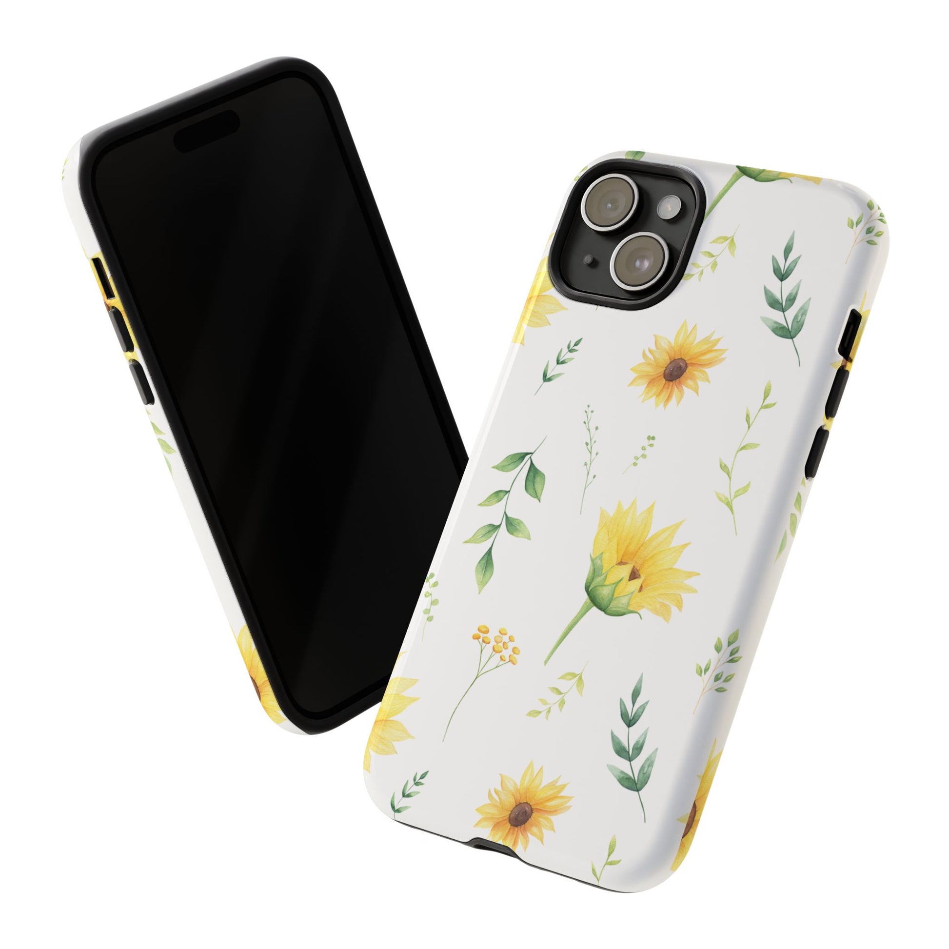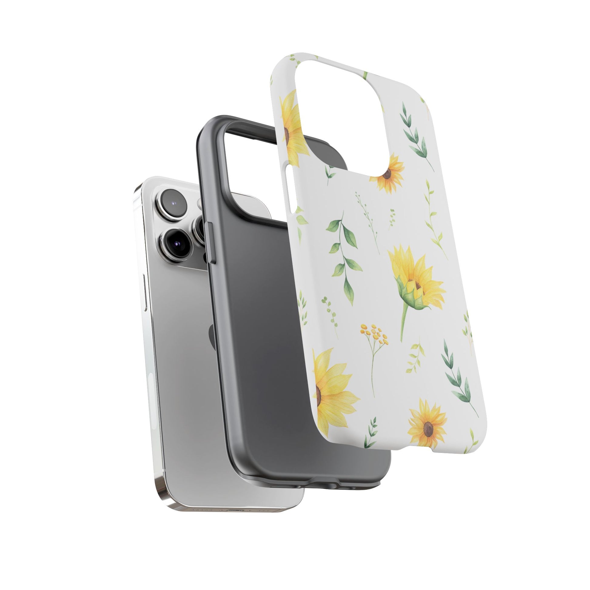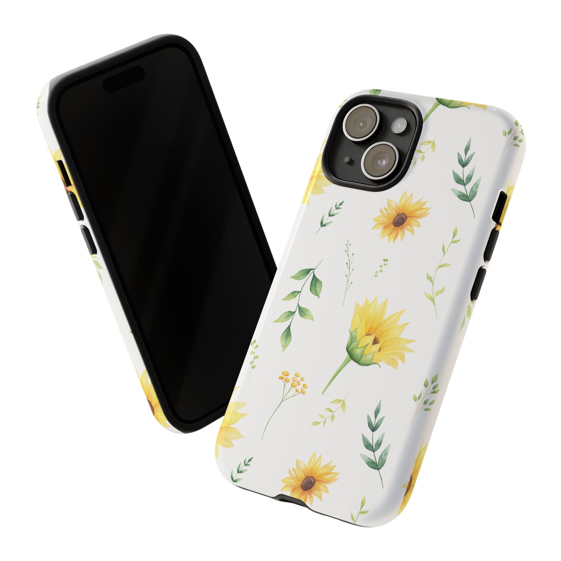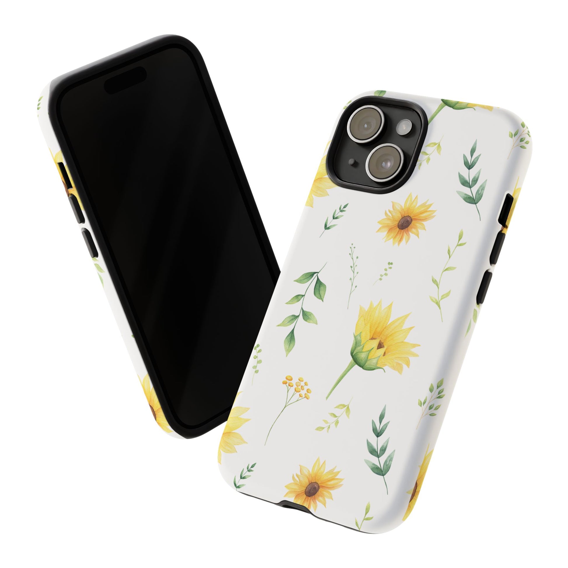 Sunflower Floral Tough Phone Case - Watercolor Botanical Print, Bright Nature Aesthetic, Compatible with iPhone, Galaxy, and Google Phones