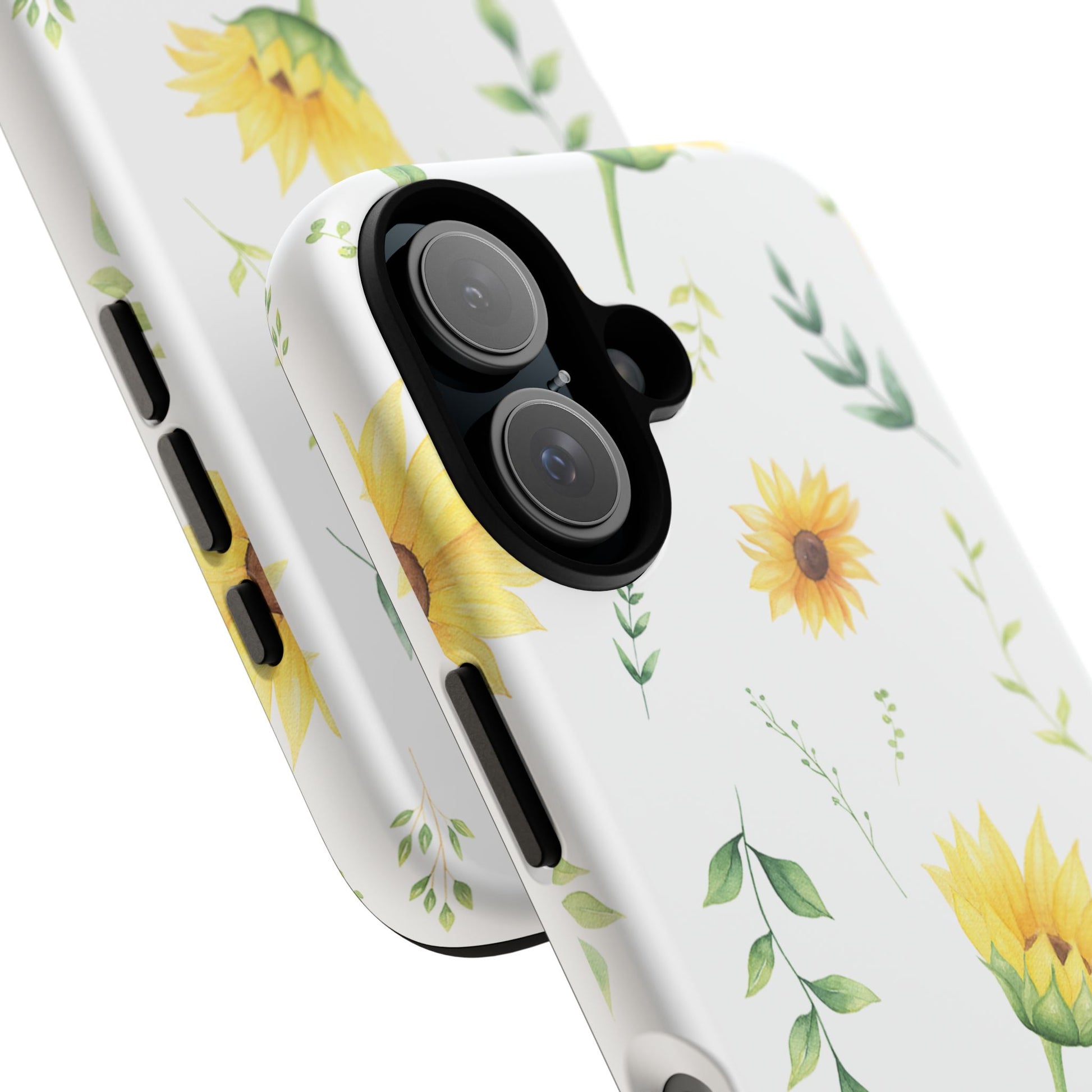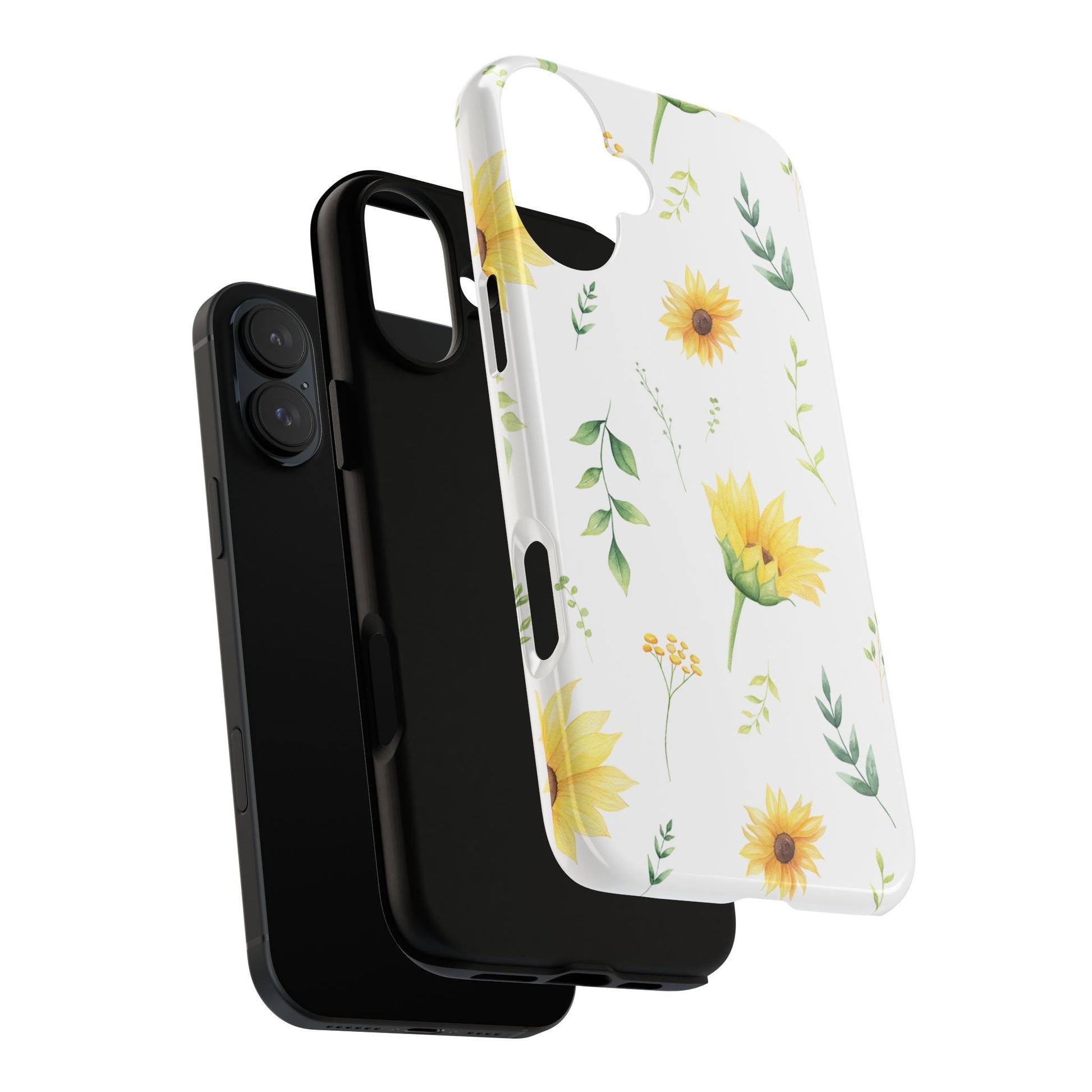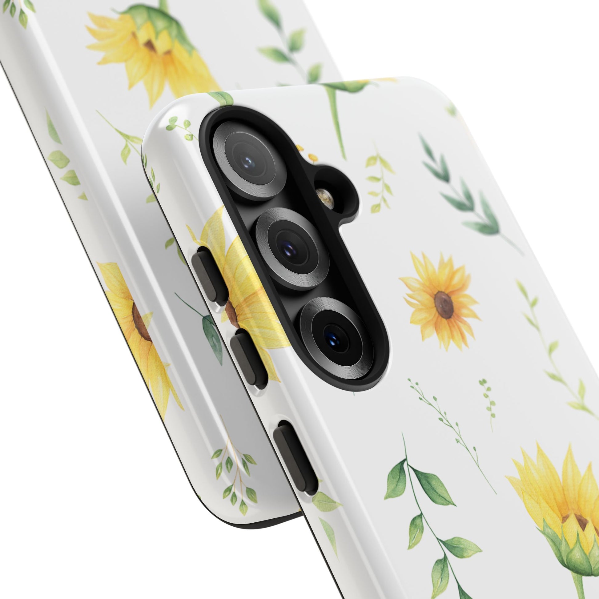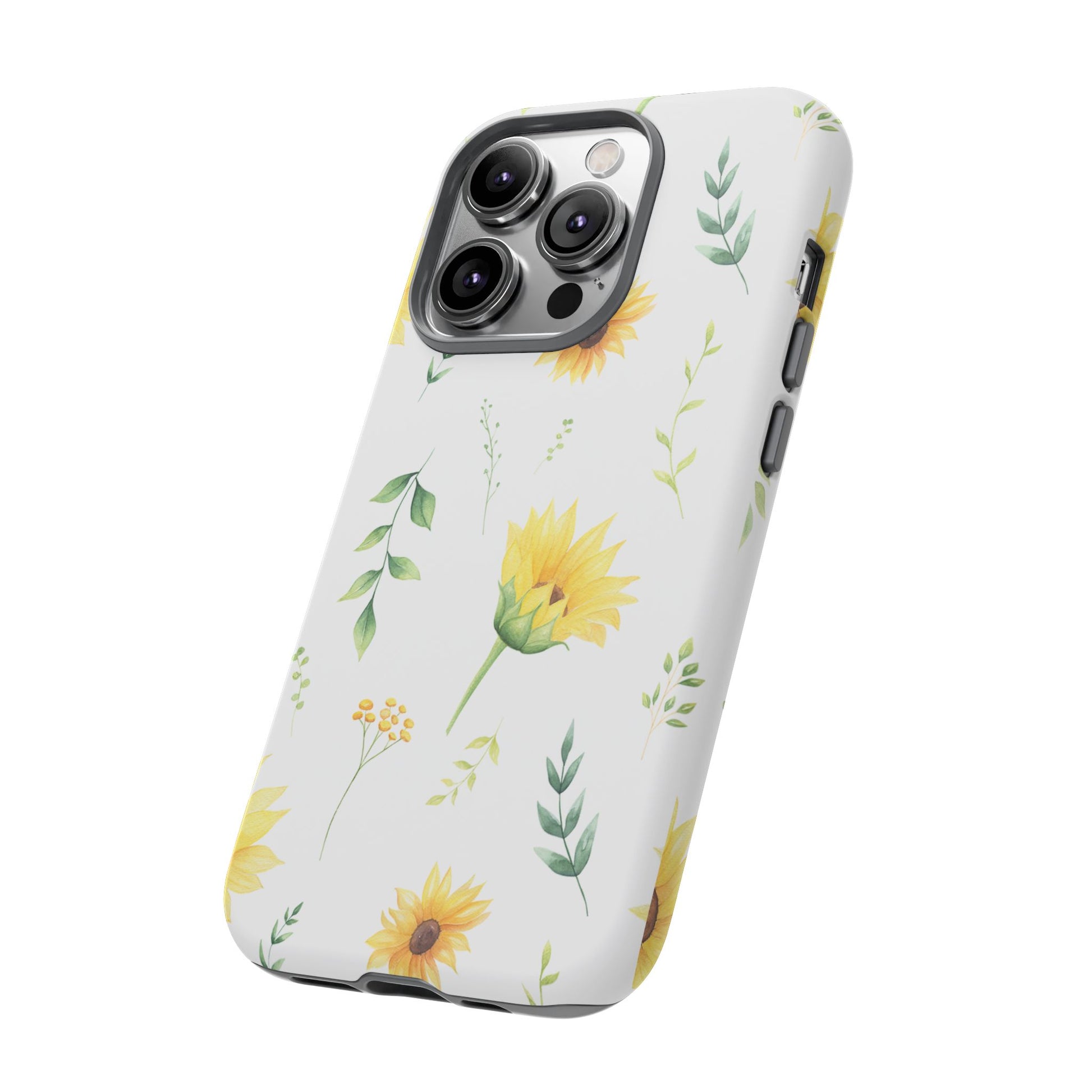 Sunflower Floral Tough Phone Case - Watercolor Botanical Print, Bright Nature Aesthetic, Compatible with iPhone, Galaxy, and Google Phones