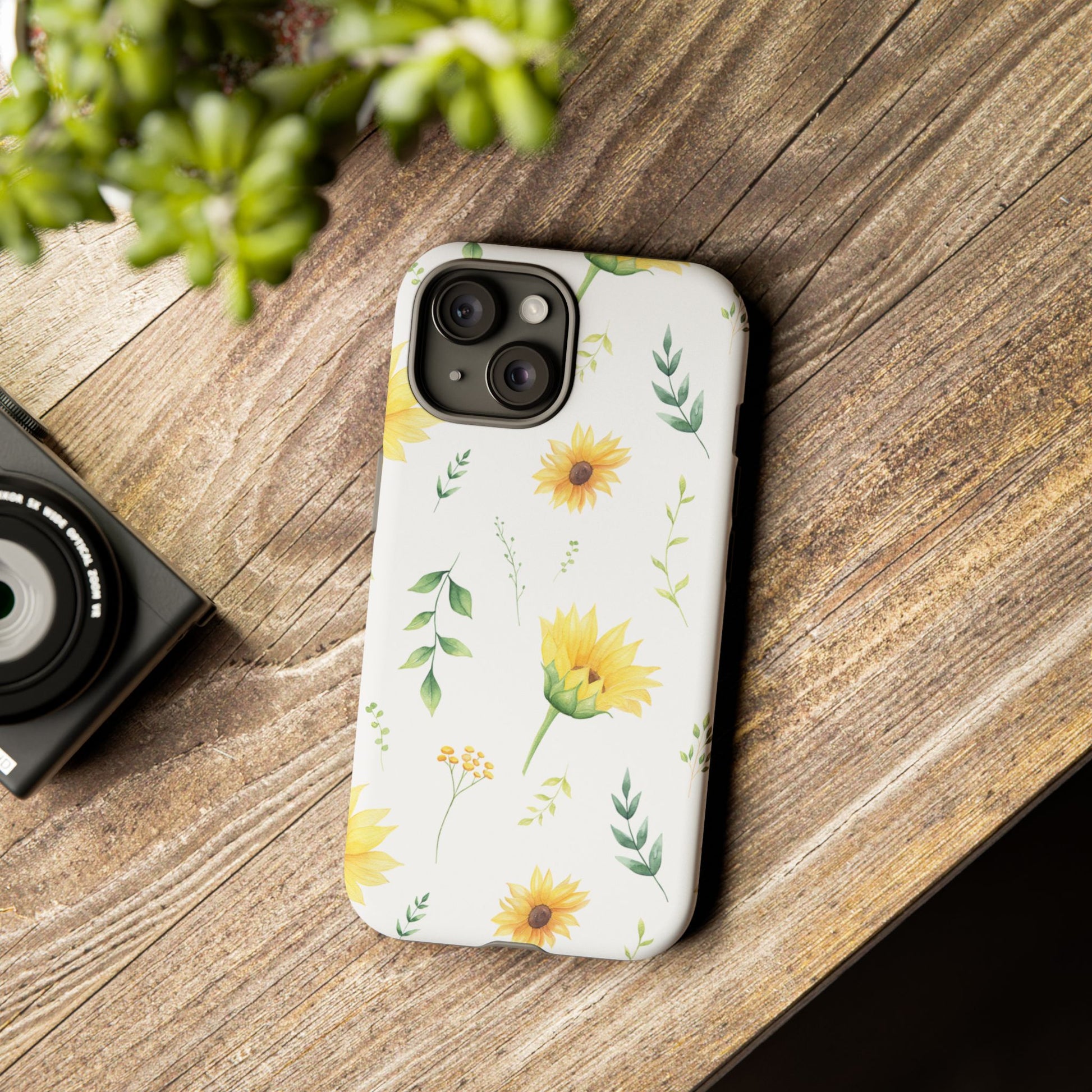 Bright, cheerful, and full of charm — this sunflower phone case brings a burst of sunshine to your tech. Featuring delicate watercolor-style florals and soft botanical accents, it's the perfect blend of pretty and protective for those who love happy, nature-inspired design.