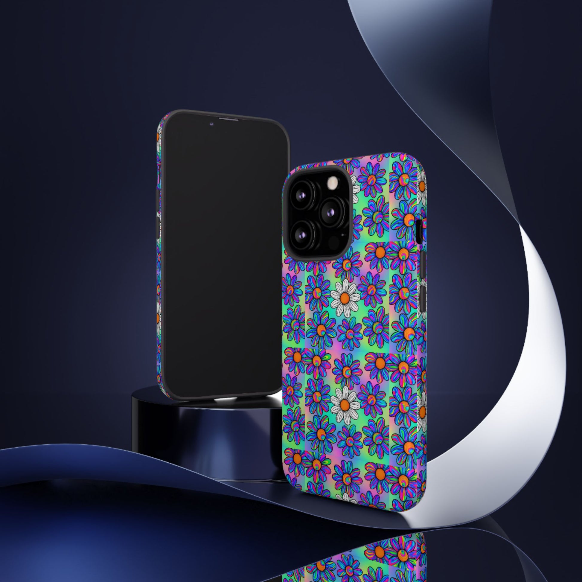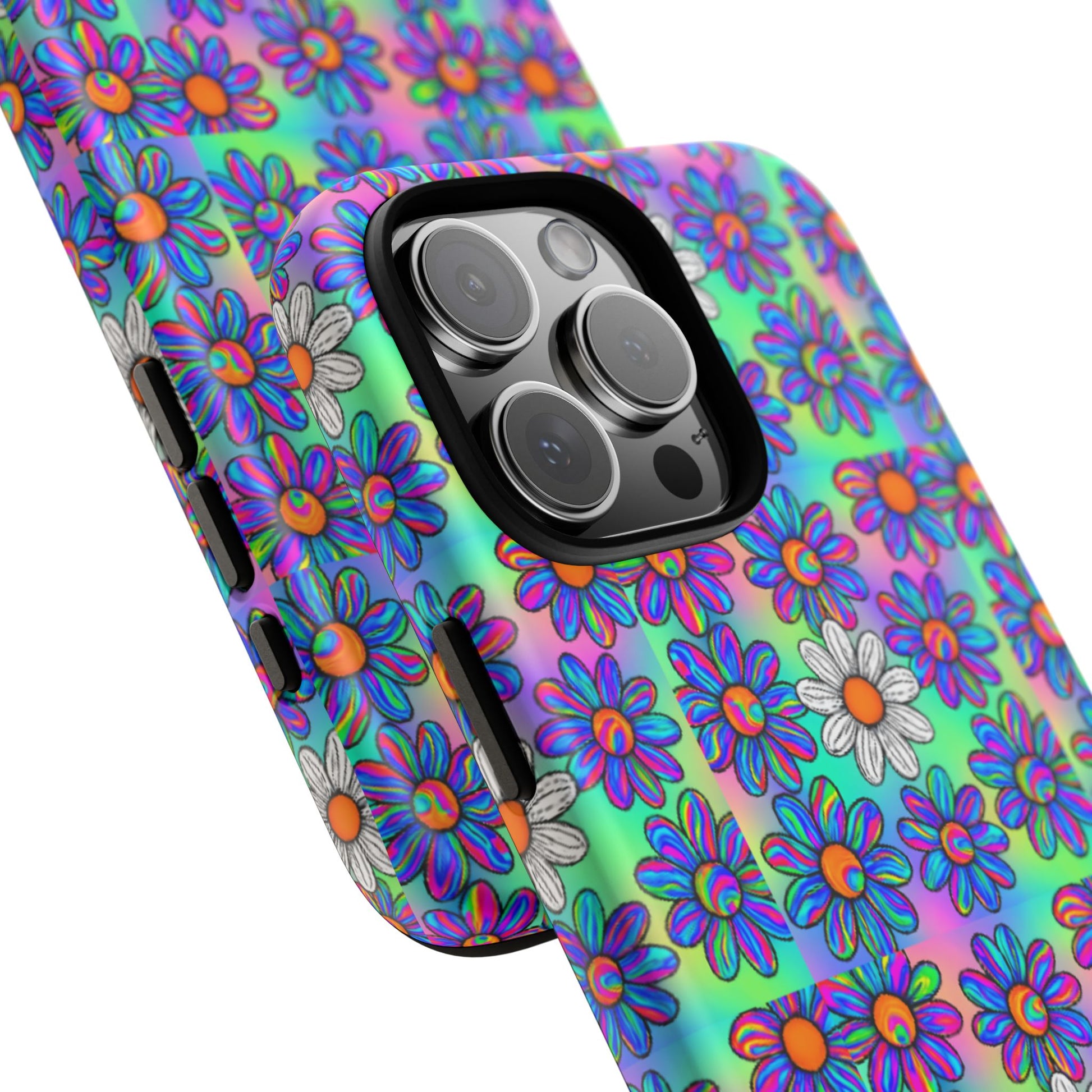 Turn up the vibes with this psychedelic daisy phone case where rainbow petals meet retro flower power. A bold and funky case that's all about standing out, this design is made for free spirits, vintage dreamers, and anyone who sees the world in full color.