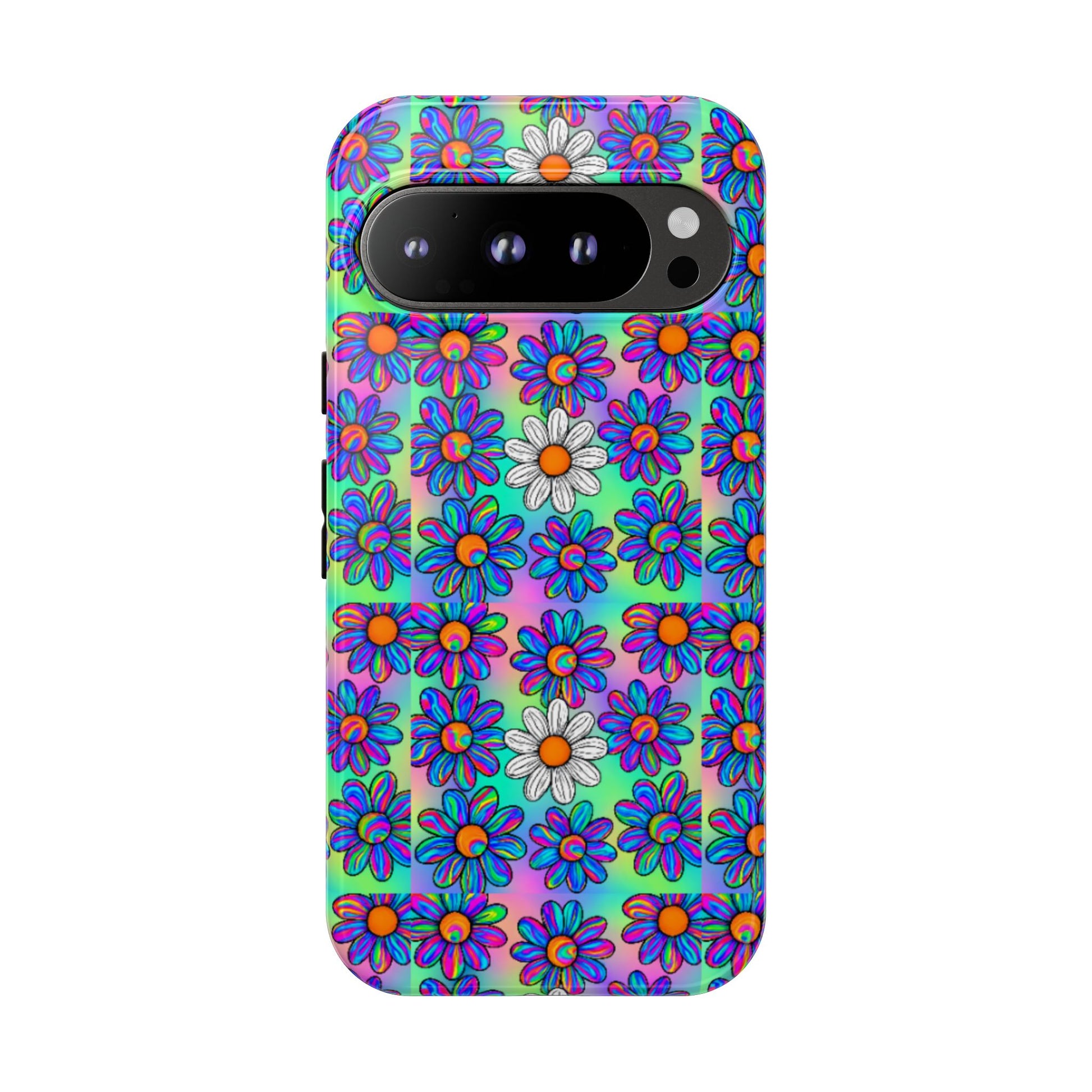 Trippy Daisy Tough Phone Case - Psychedelic Floral Aesthetic, Colorful Groovy Design, Compatible with iPhone, Galaxy, and Google Phones