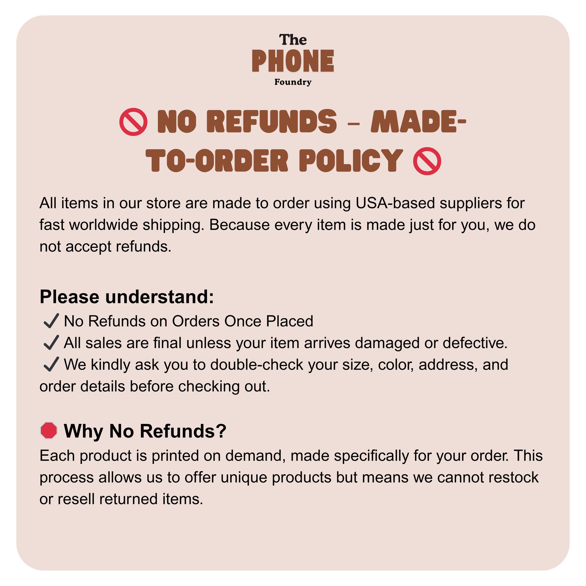 - We only accept cancellations within the first 2 hours of placing your order. Please double-check your address, phone model, and finish before finalizing your purchase.