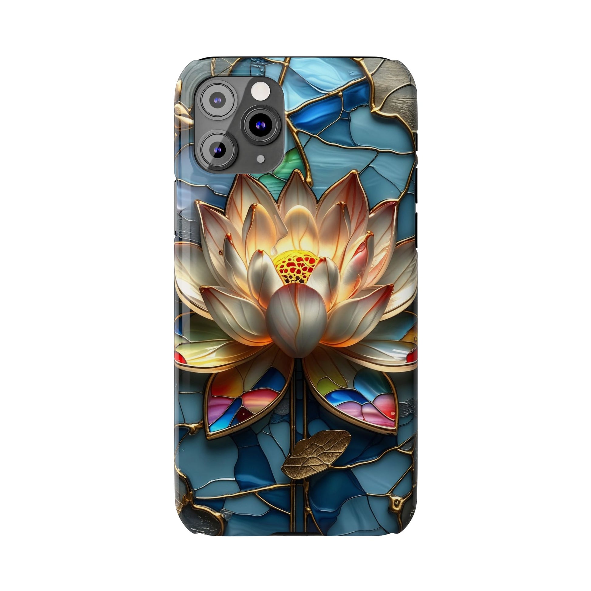 This slim phone case features a mesmerizing blue stained glass mandala design, radiating calm, creativity, and symmetry. With tones of aqua, cobalt, and icy white, it transforms your phone into a piece of functional art—perfect for those who crave beauty in the everyday.