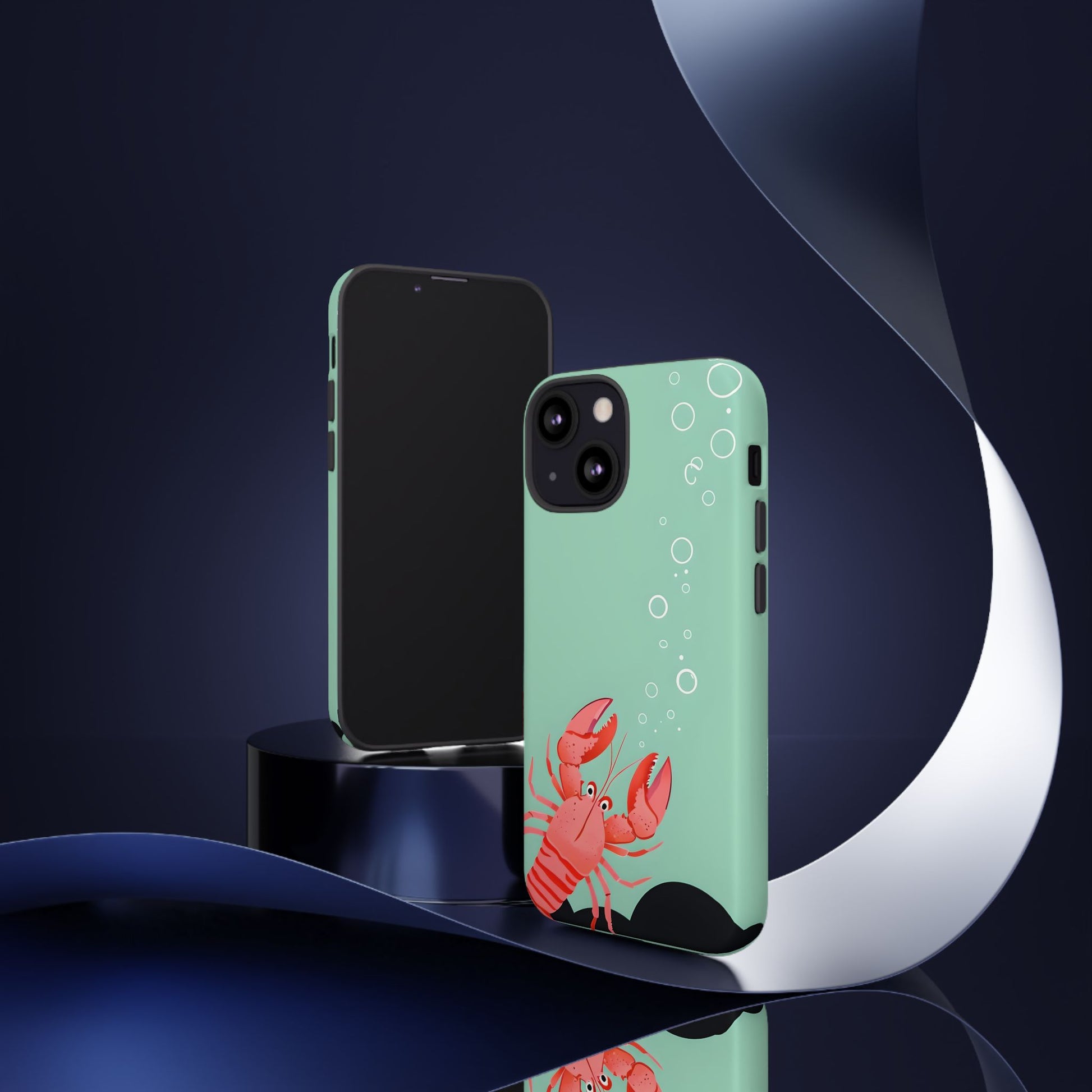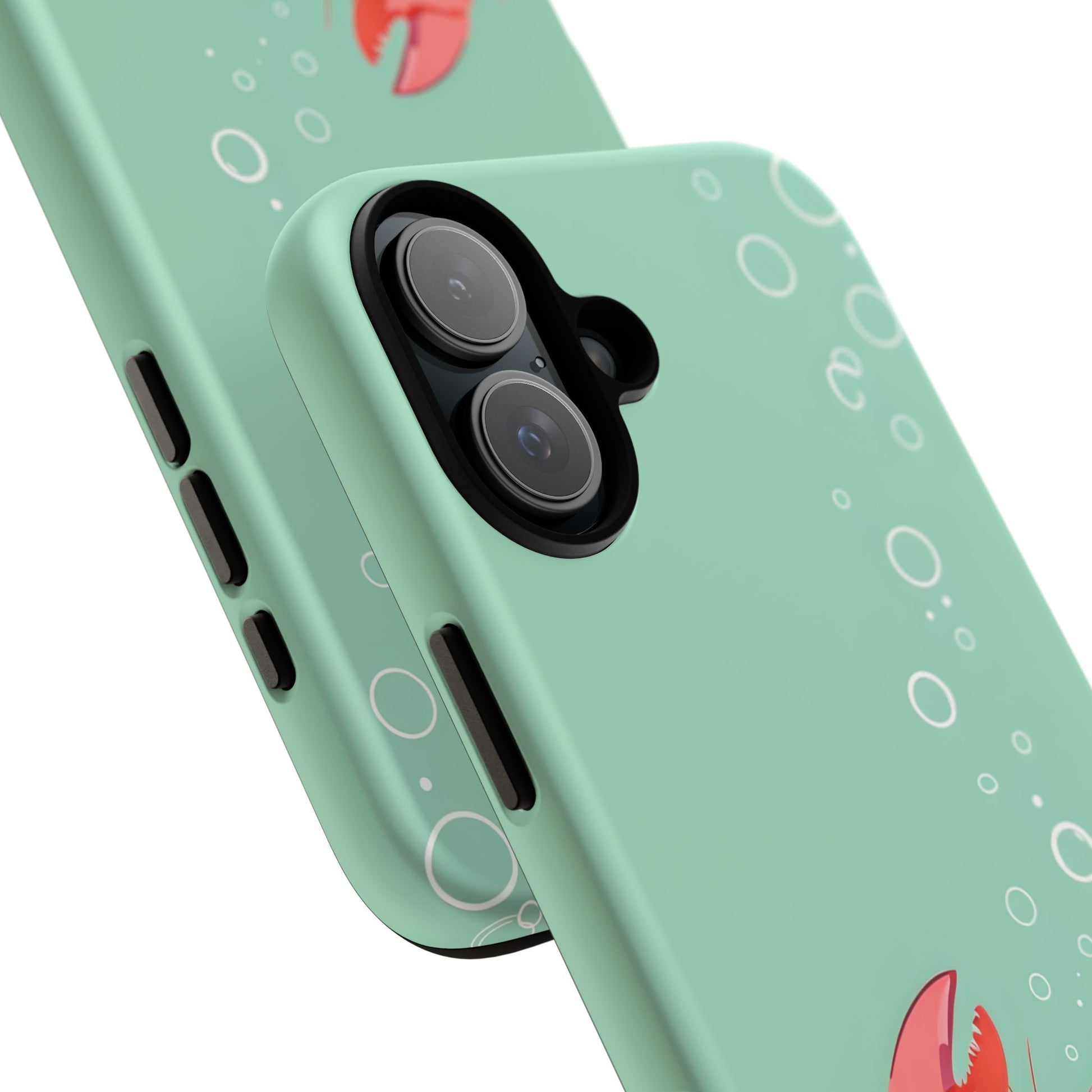 Whimsical Lobster Phone Case - Funny Sea Creature Tough Case Gift - Sea Foam Green Ocean Design - Compatible with iPhone Galaxy Google