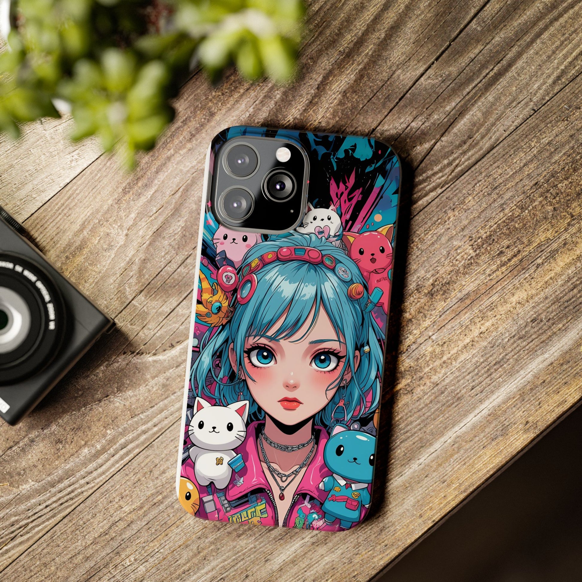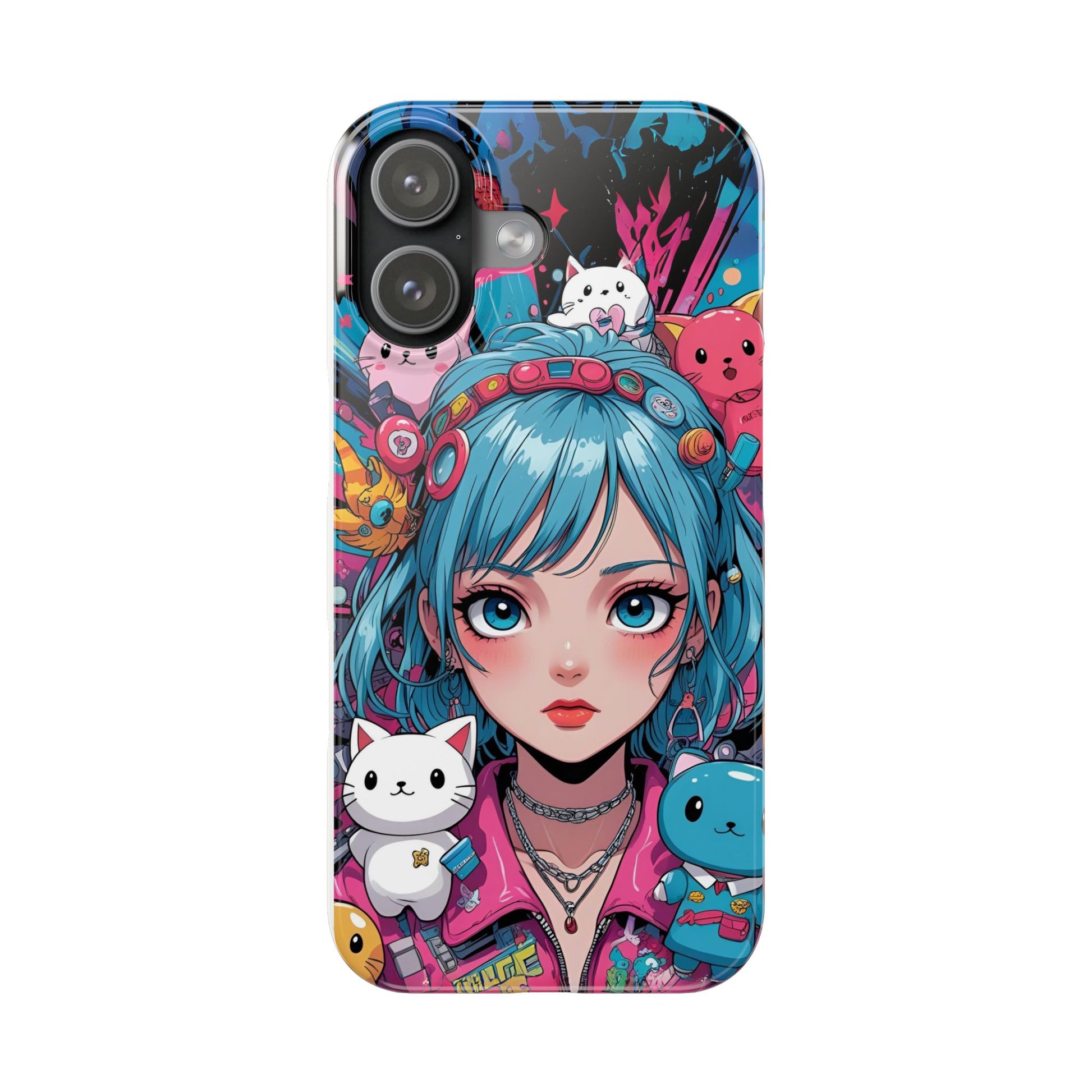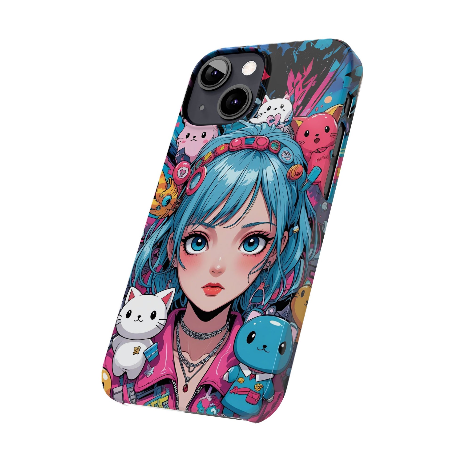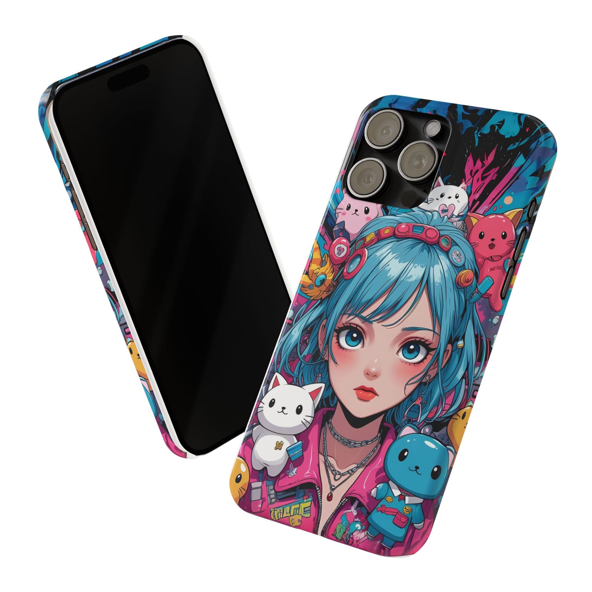 Y2K Anime Girl Slim Phone Case - Cute Maximalist Aesthetic, Kawaii Vaporwave Style, Pop Culture Lovers and Special Occasions