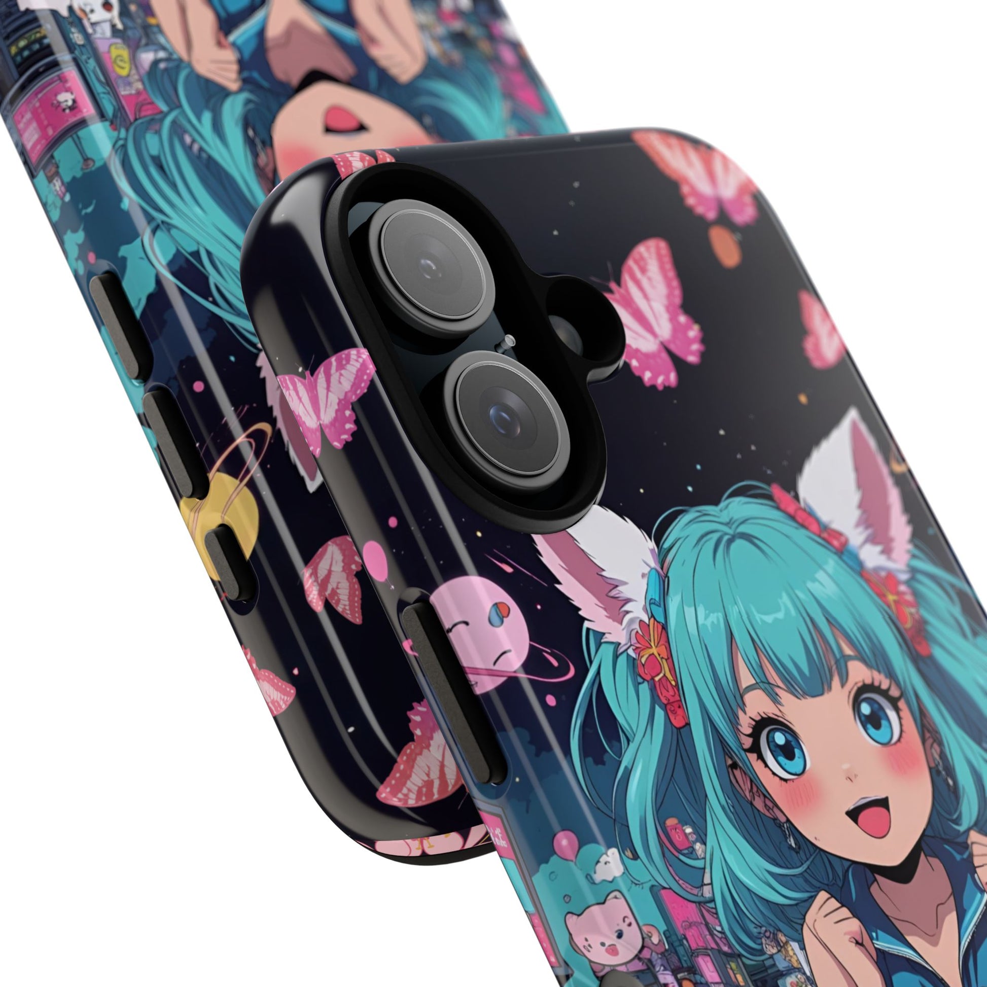 Y2K Anime Girl Tough Phone Case - Kawaii Vaporwave Style, Cute Maximalist Aesthetic, Compatible with iPhone, Galaxy, and Google Phones
