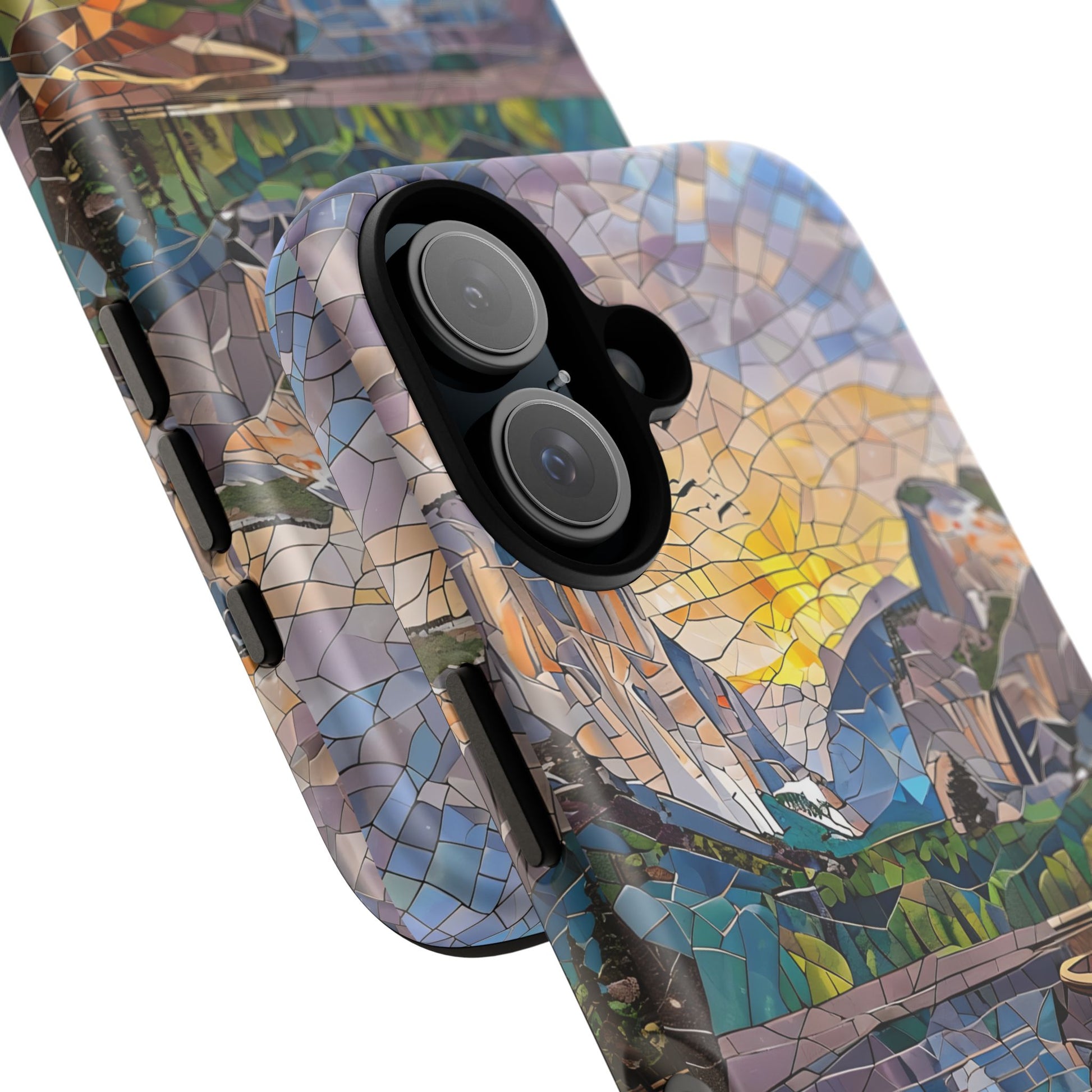 Bring the breathtaking beauty of Yosemite National Park in Northern California to your everyday carry. This custom phone case features a vivid mosaic-style landscape of red rock mountains and canyon scape, all inspired by the iconic scenery of one of California's national treasures. Collect all our National Park phone cases. The stained-glass mosaic effect gives the design an artistic, handcrafted feel while preserving the spirit of nature.